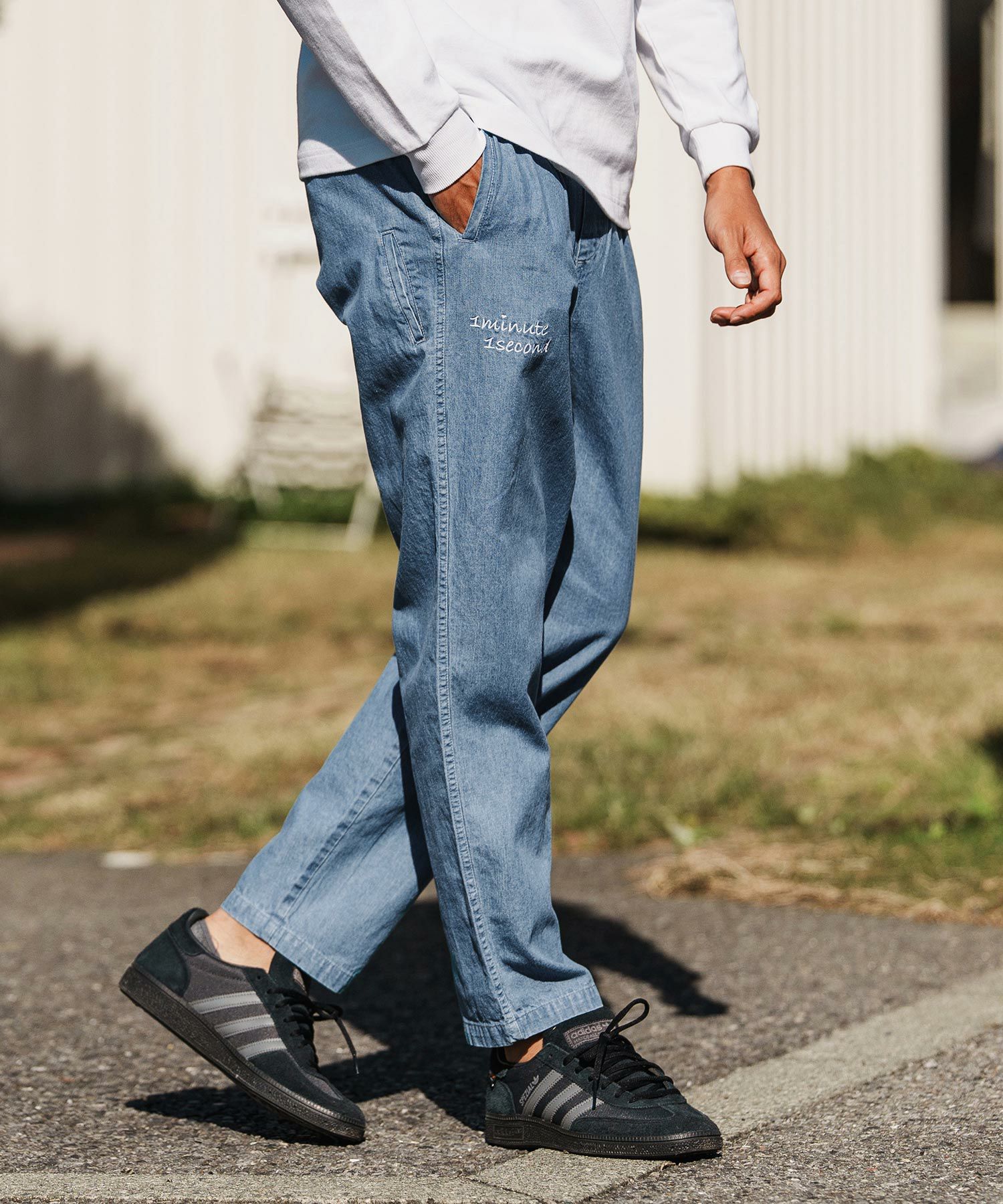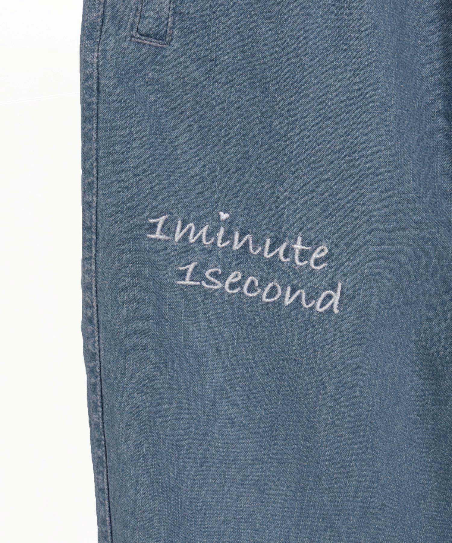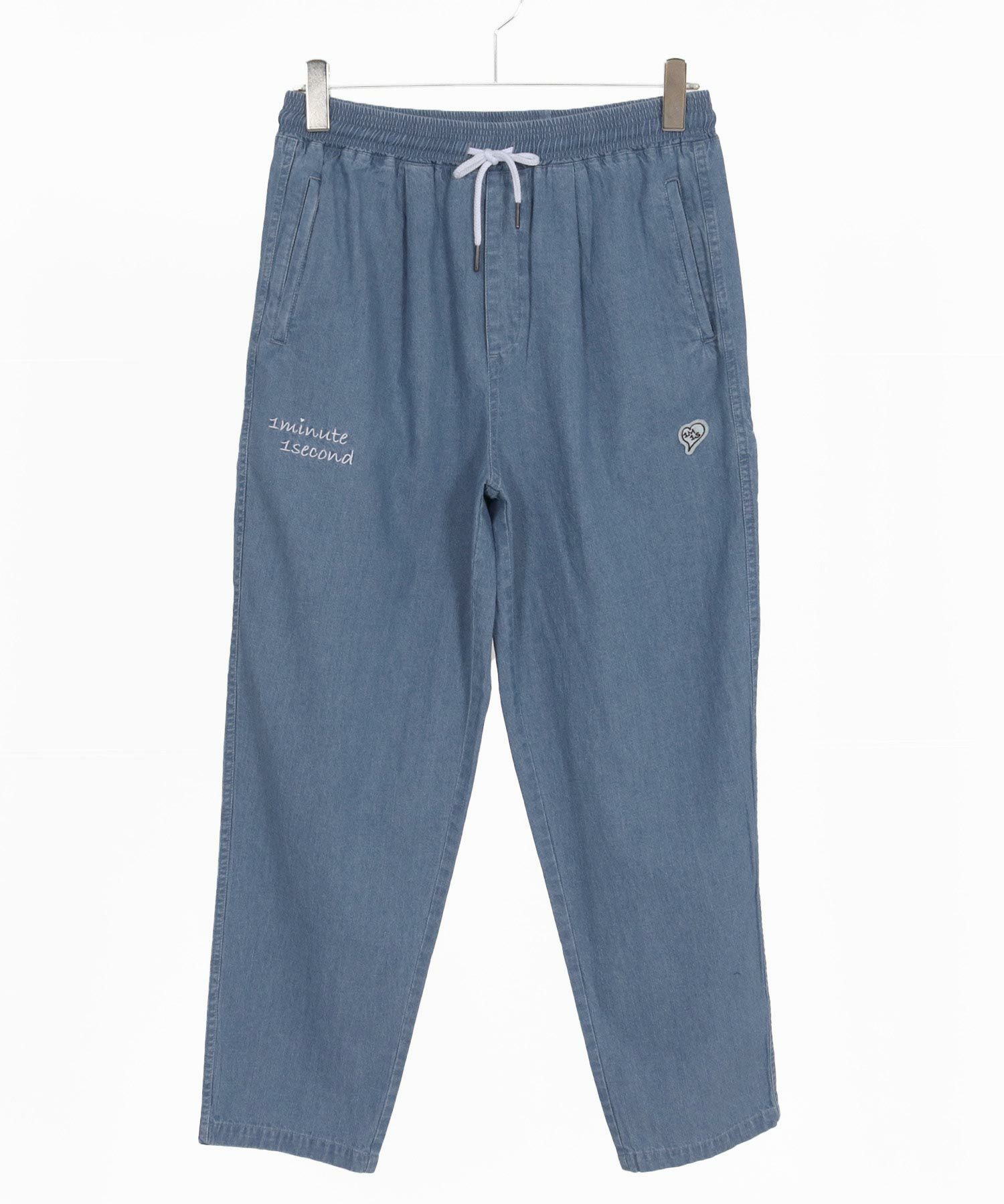 1minute 1second 【1minute 1second(ワンミニットワンセカンド)】cursive embroidery cotton-linen denim pants イージーデニムパンツ(1M26H120)