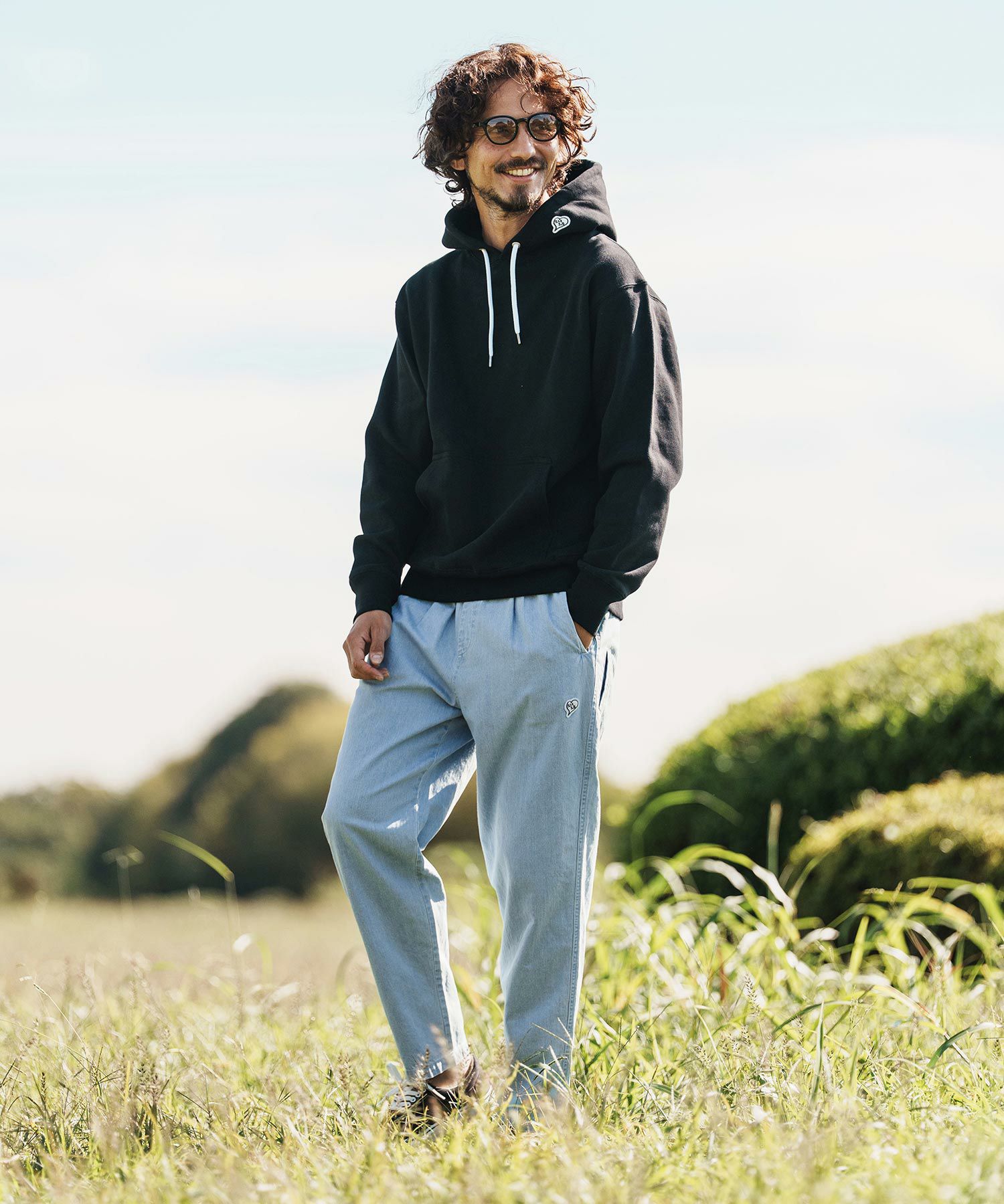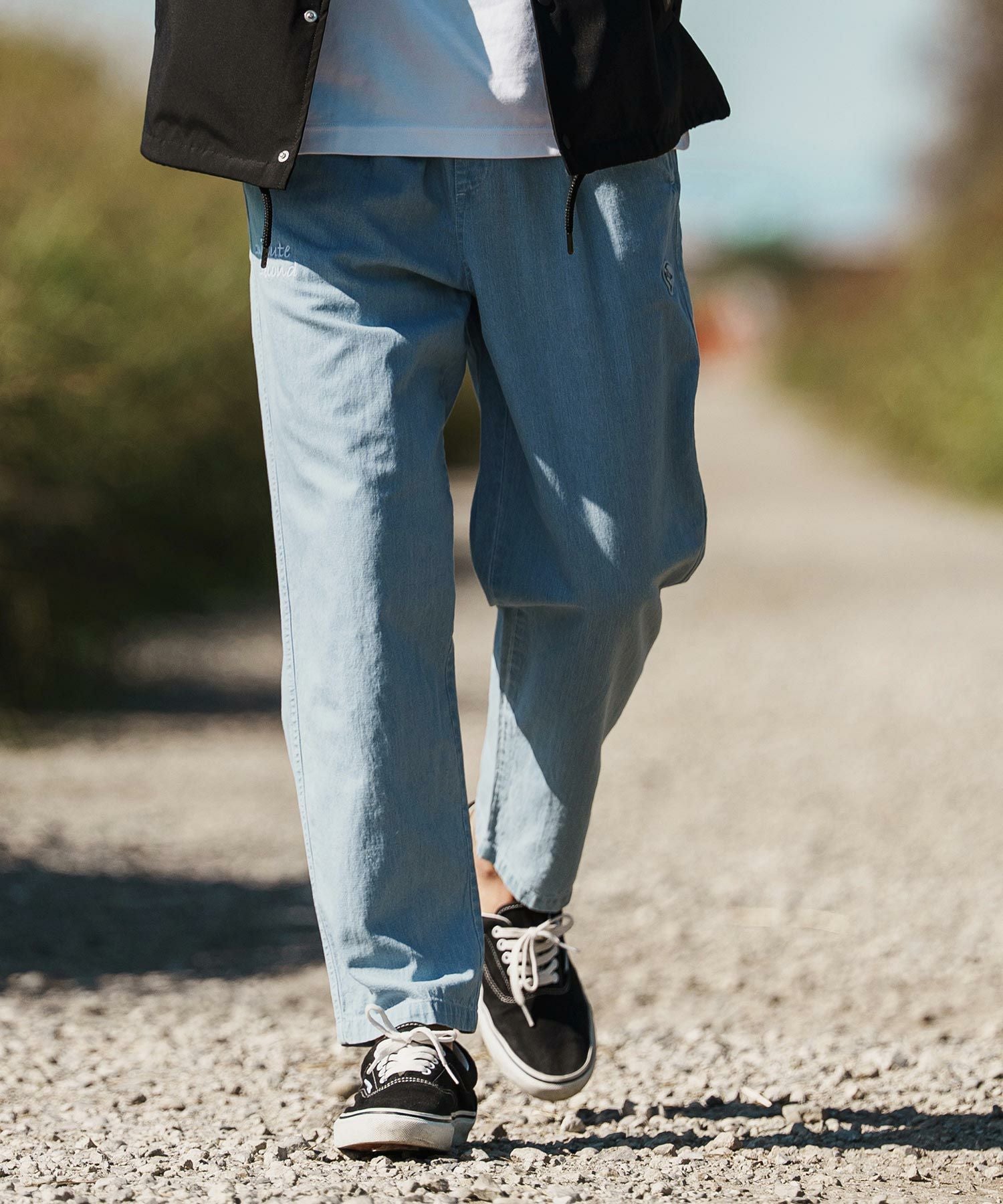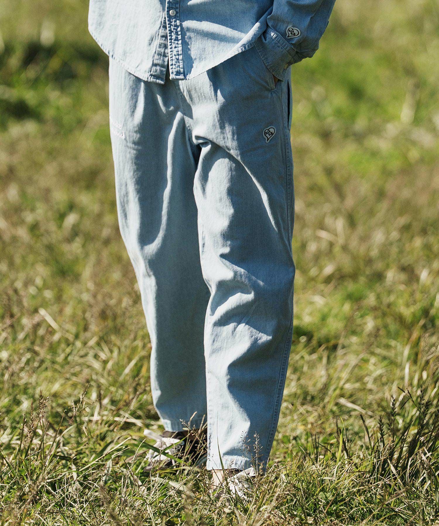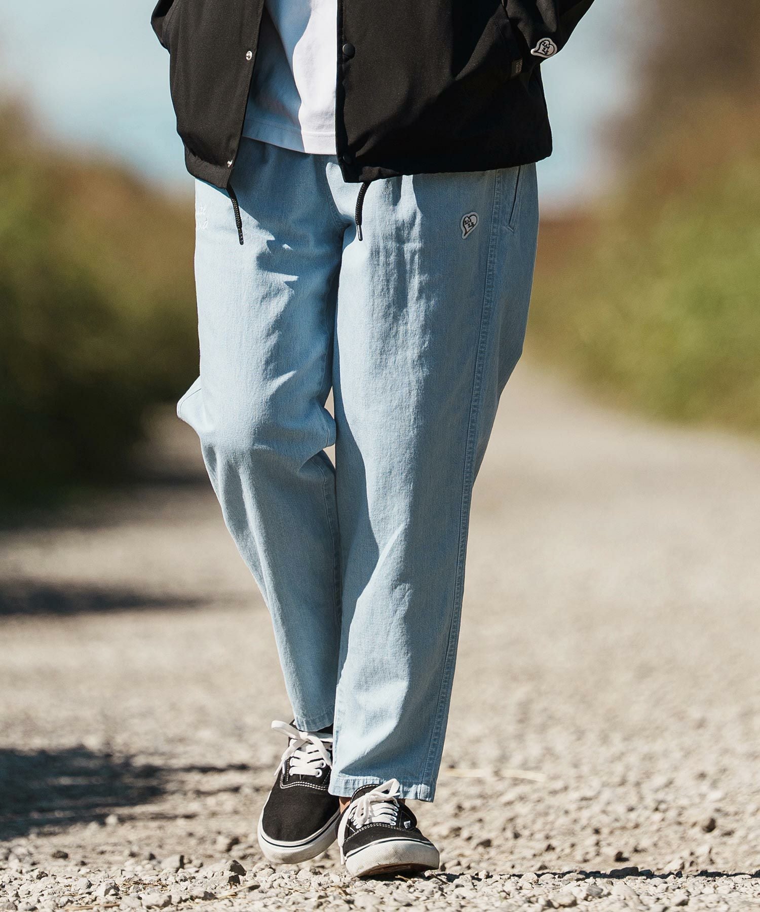 1minute 1second 【1minute 1second(ワンミニットワンセカンド)】cursive embroidery cotton-linen denim pants イージーデニムパンツ(1M26H120)