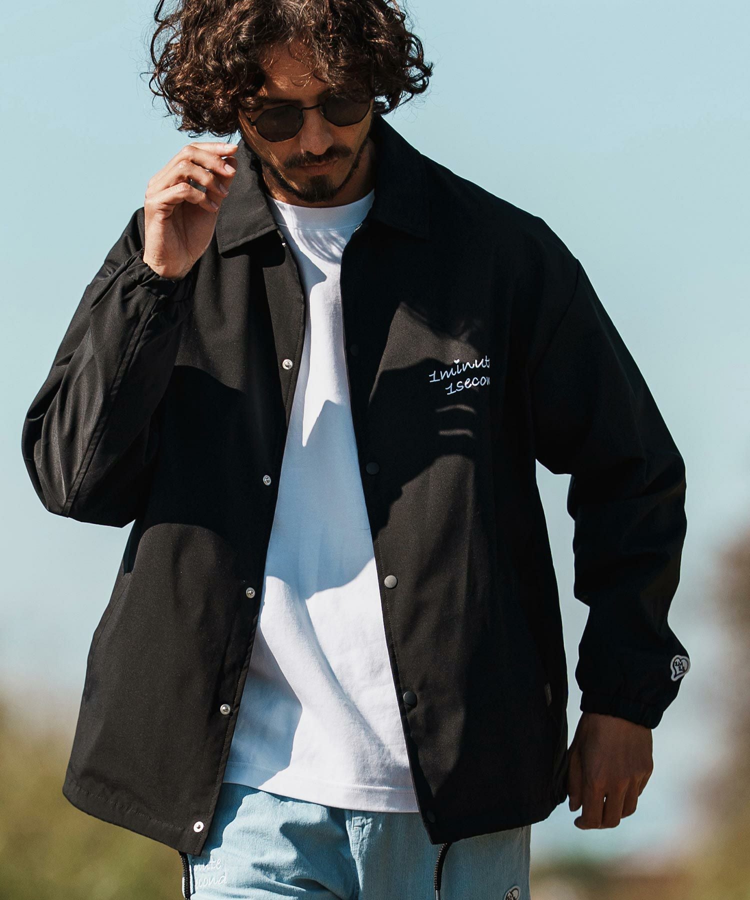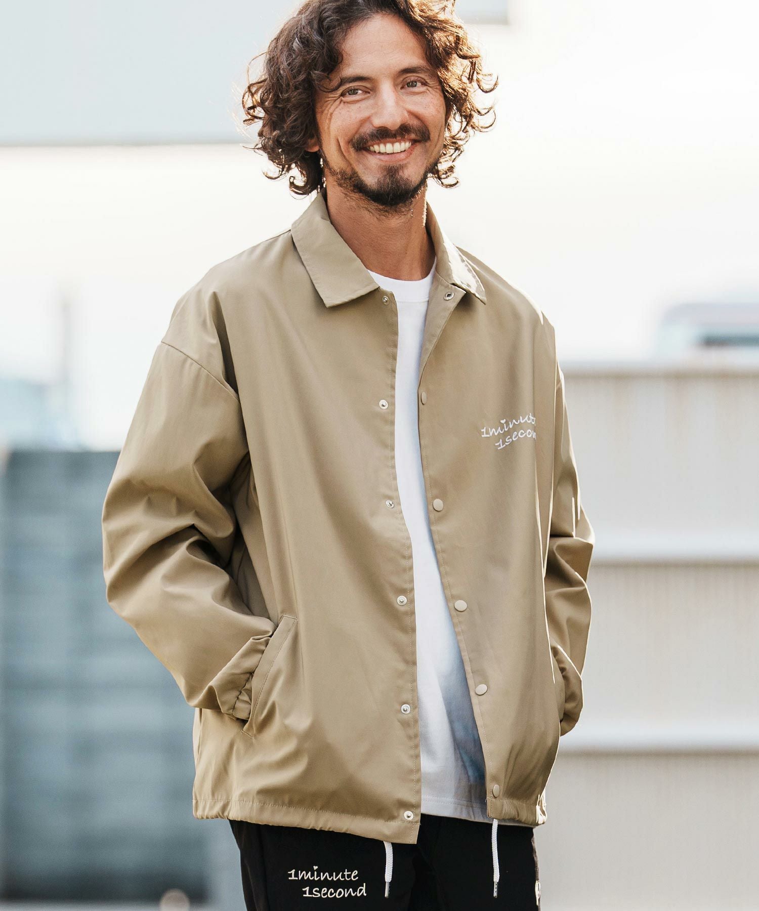 1minute 1second 【1minute 1second(ワンミニットワンセカンド)】coach jacket with 1M1S chenille embroidered patch コーチジャケット (1M26H180)