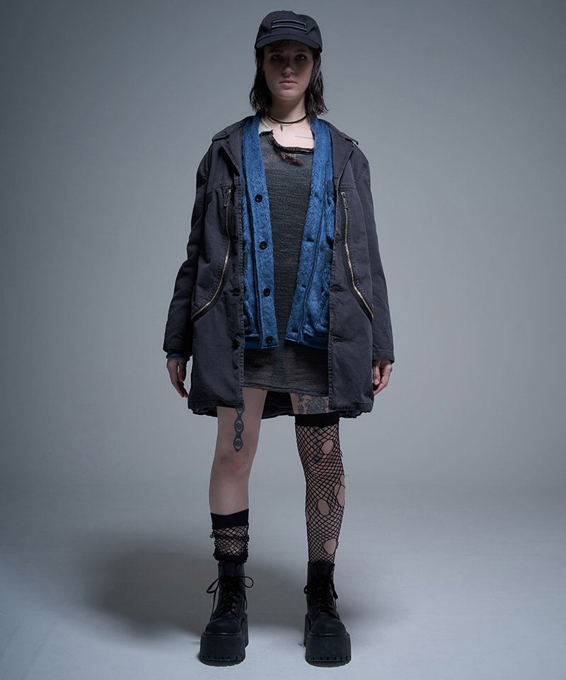 NO ID. 【NO ID.(ノーアイディー)】【予約販売4月上旬~中旬入荷】 ライダースZIPフードコート(458006-455C)