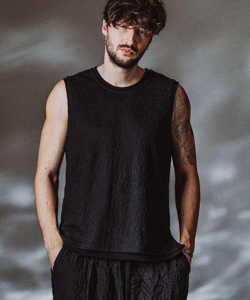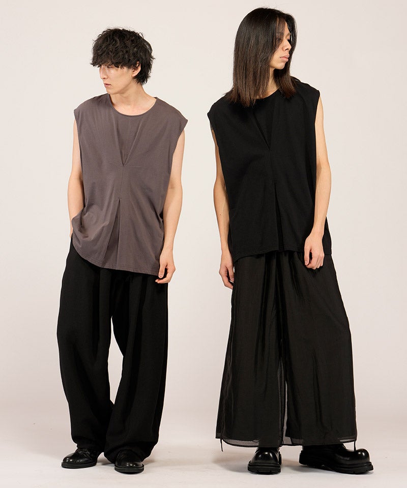NO ID. 【NO ID.(ノーアイディー)】【予約販売4月上旬~中旬入荷】 シアーレイヤードスリーブレスPO Tシャツ(458006-463T)
