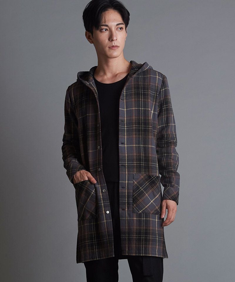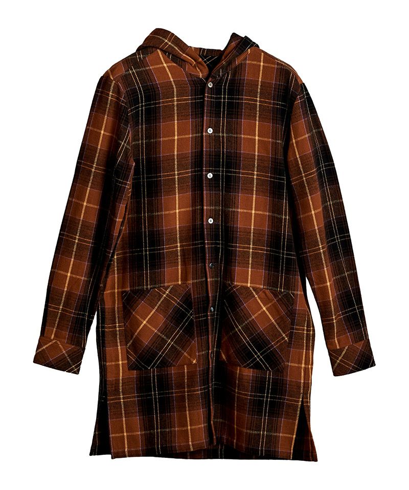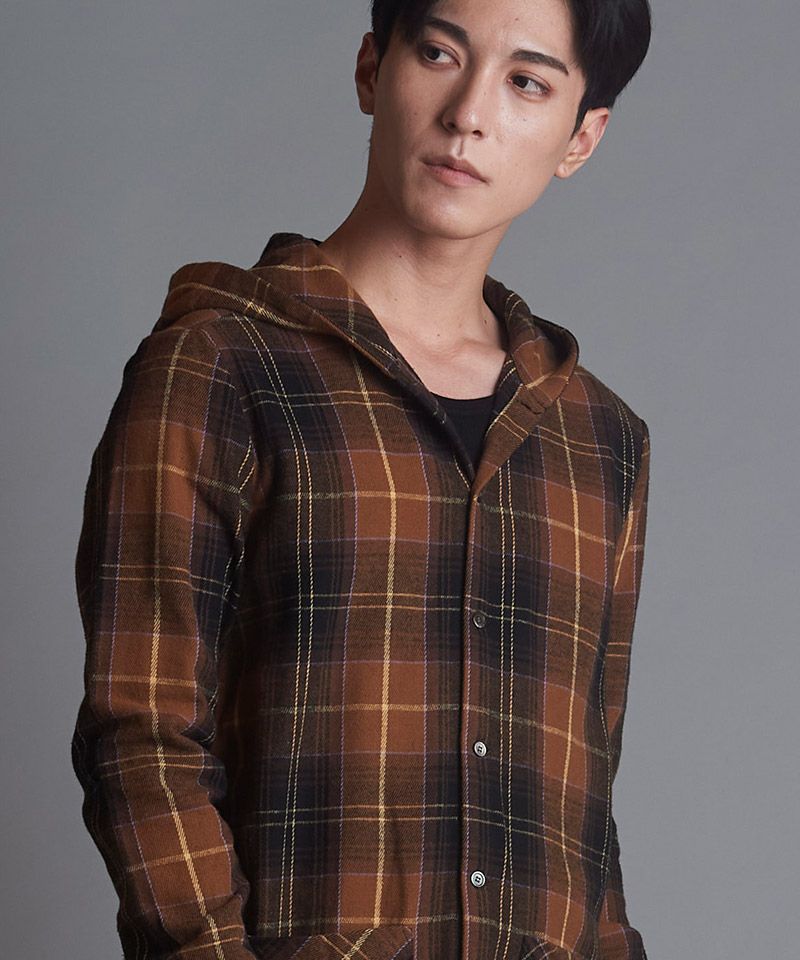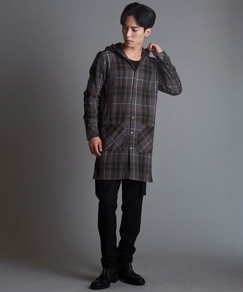NO ID. 70%OFF【NO ID.(ノーアイディー)】チェックフードロングSH シャツ(853006-566S)