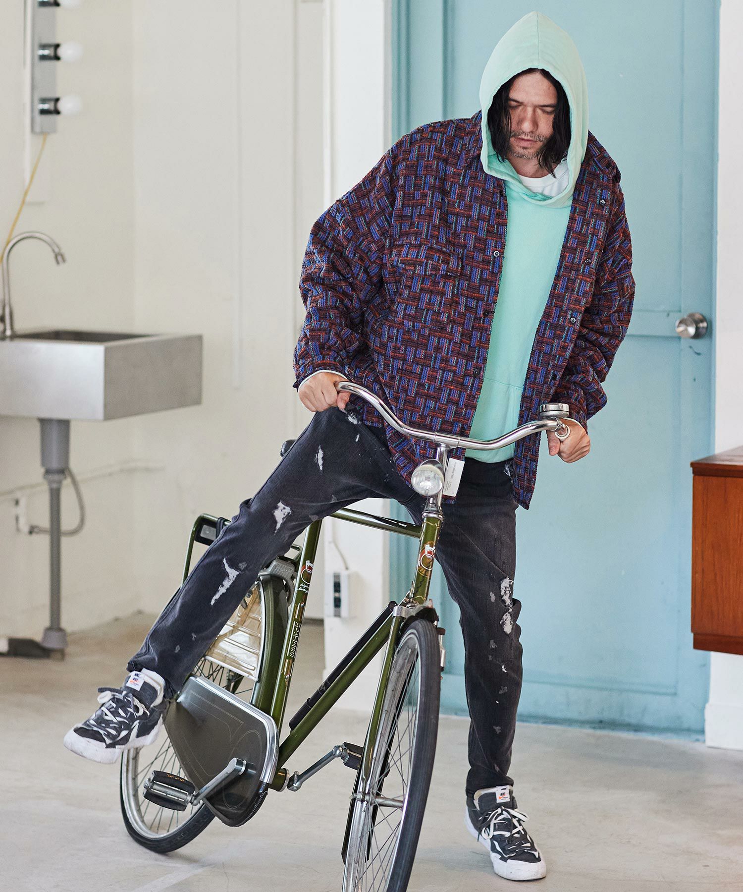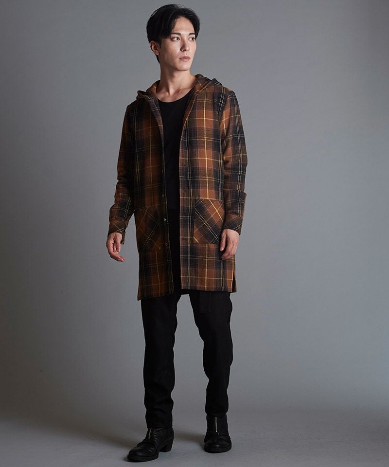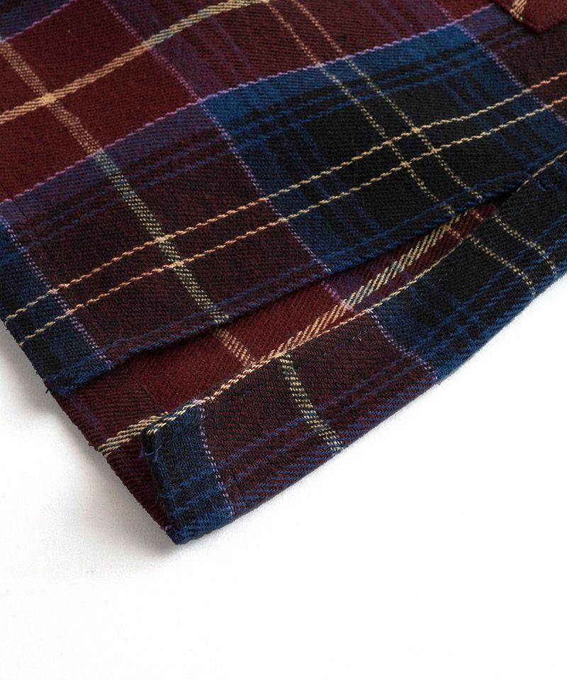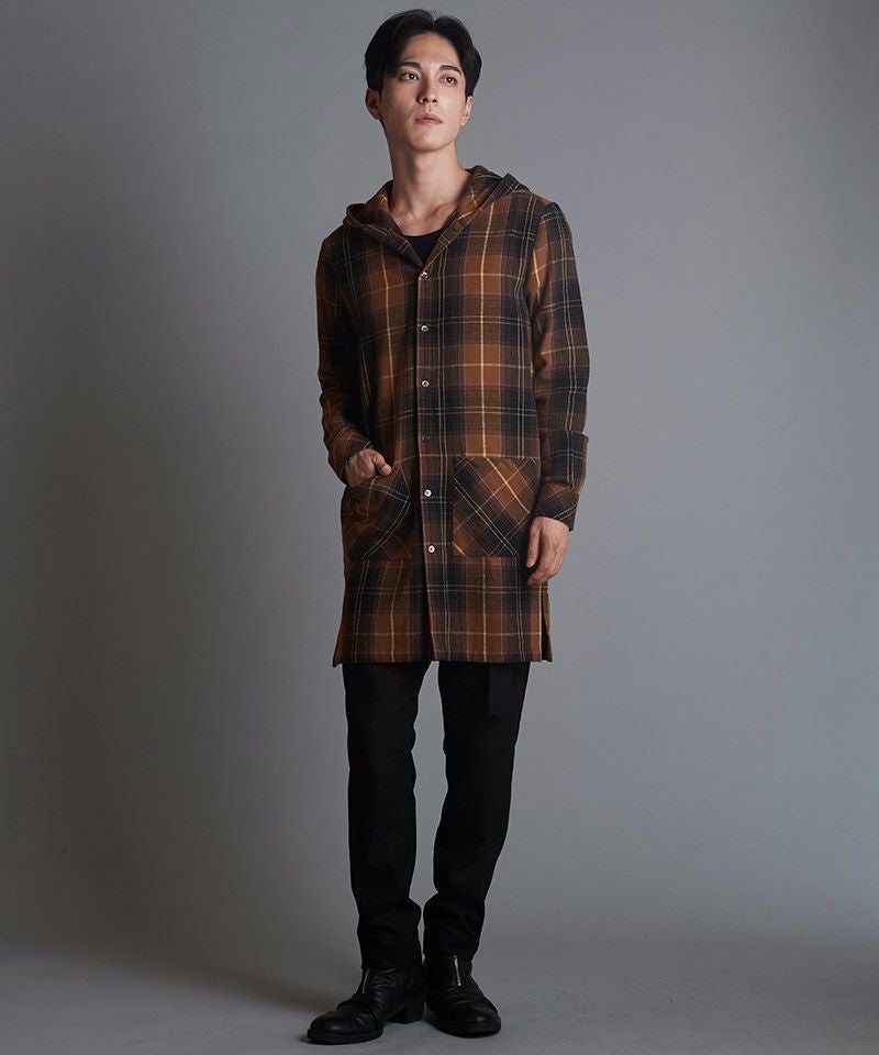 NO ID. 70%OFF【NO ID.(ノーアイディー)】チェックフードロングSH シャツ(853006-566S)
