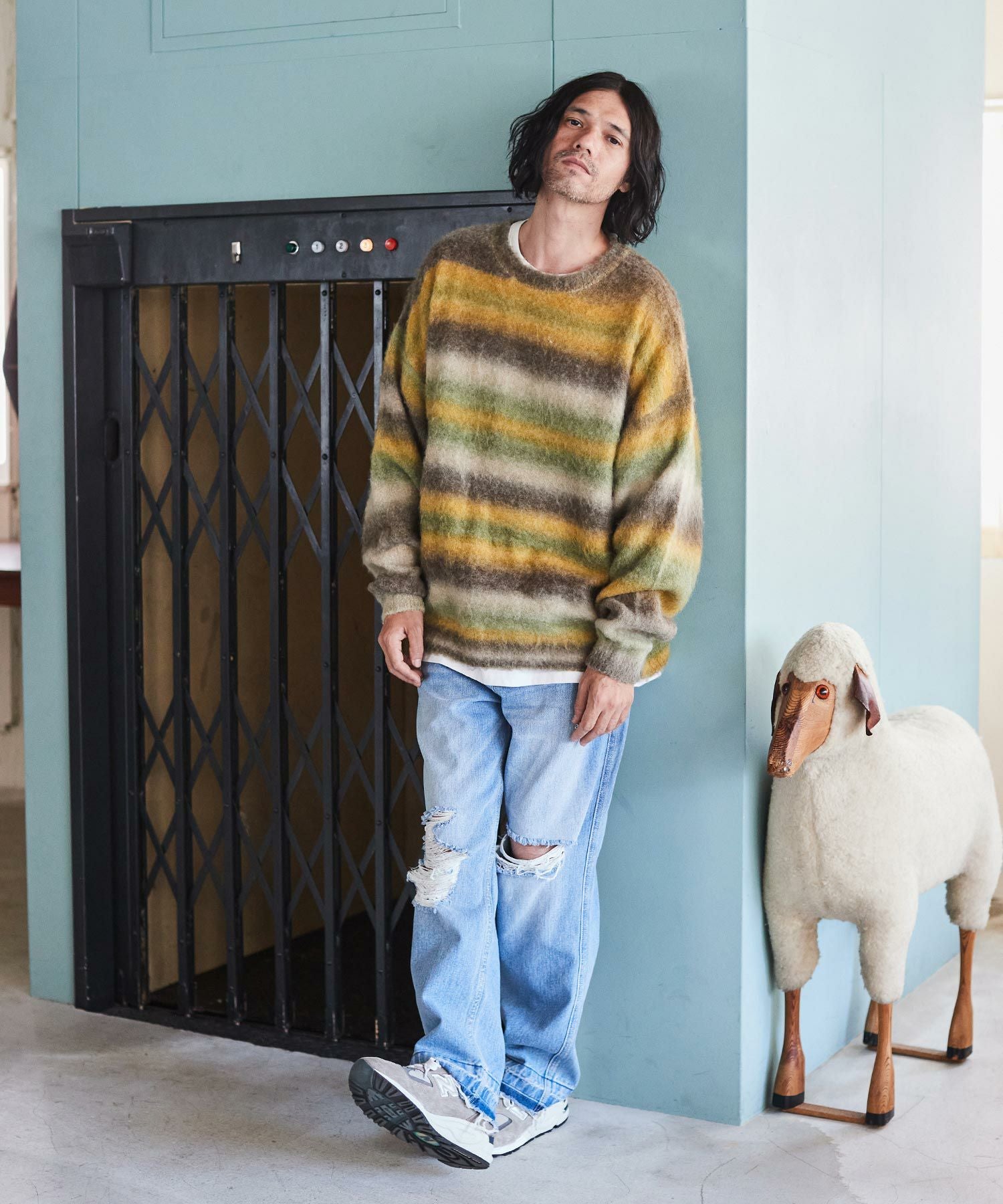 ADAM PATEK 20%OFF【ADAM PATEK(アダムパテック)】space dye brushed gradation boucle crew neck ニット(AP2321016)