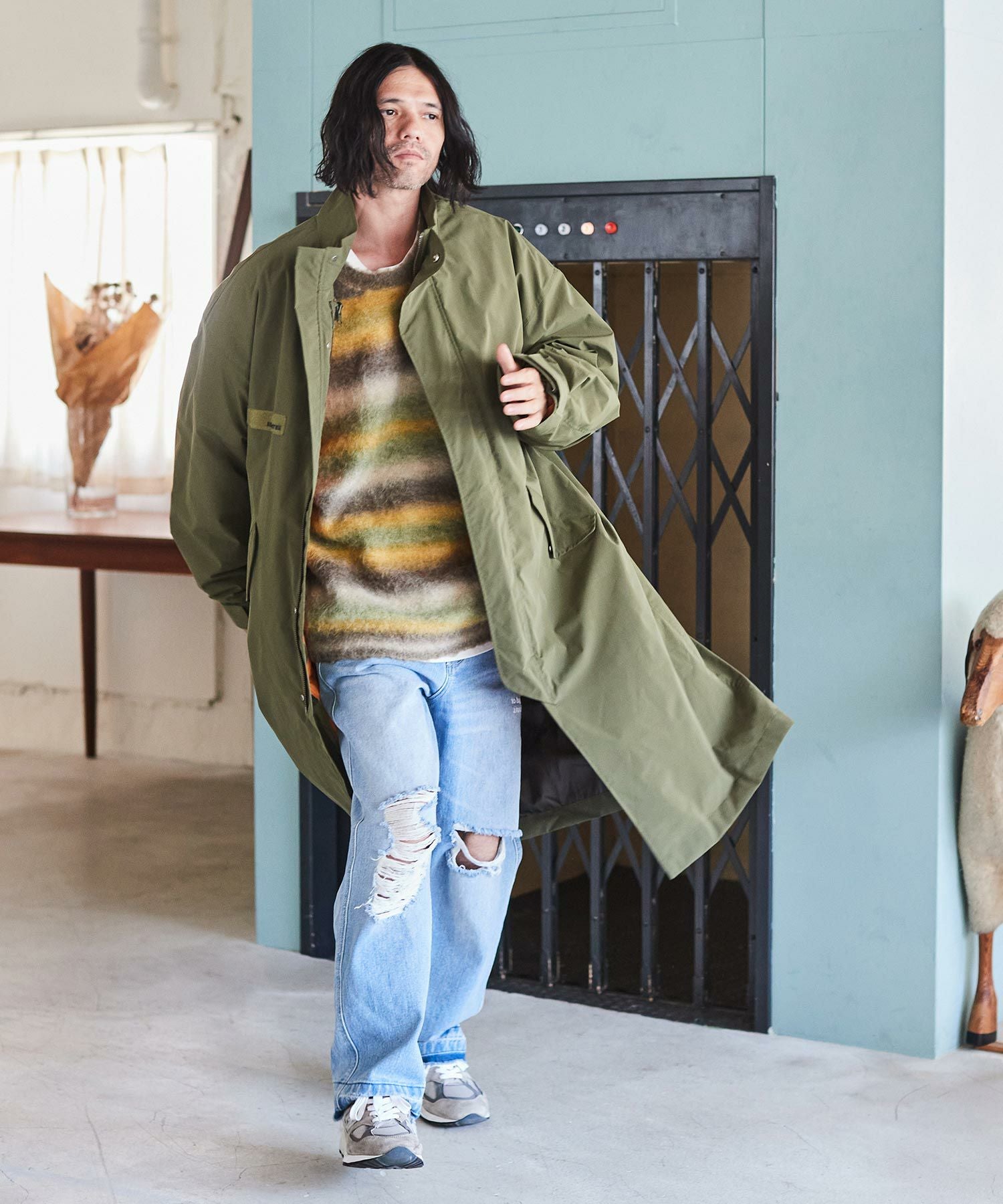 NO ID. 70%OFF【NO ID.(ノーアイディー)】ダブルガンフラップBIGトレンチコート(853006-538C)