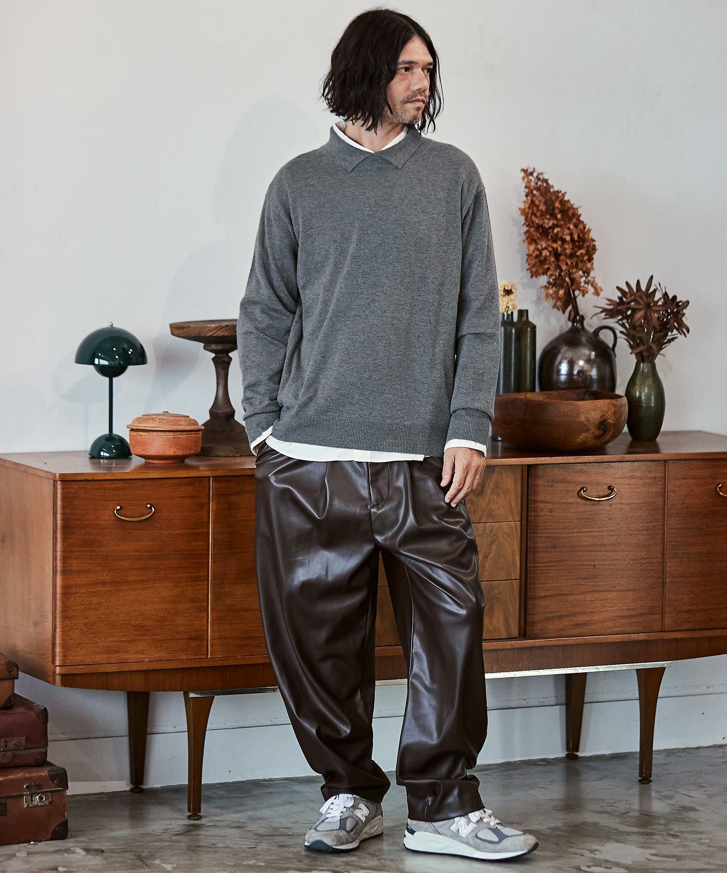 NO ID. 60%OFF【NO ID.(ノーアイディー)】シンセティックレザーワイドレッグPT パンツ(453006-555P)