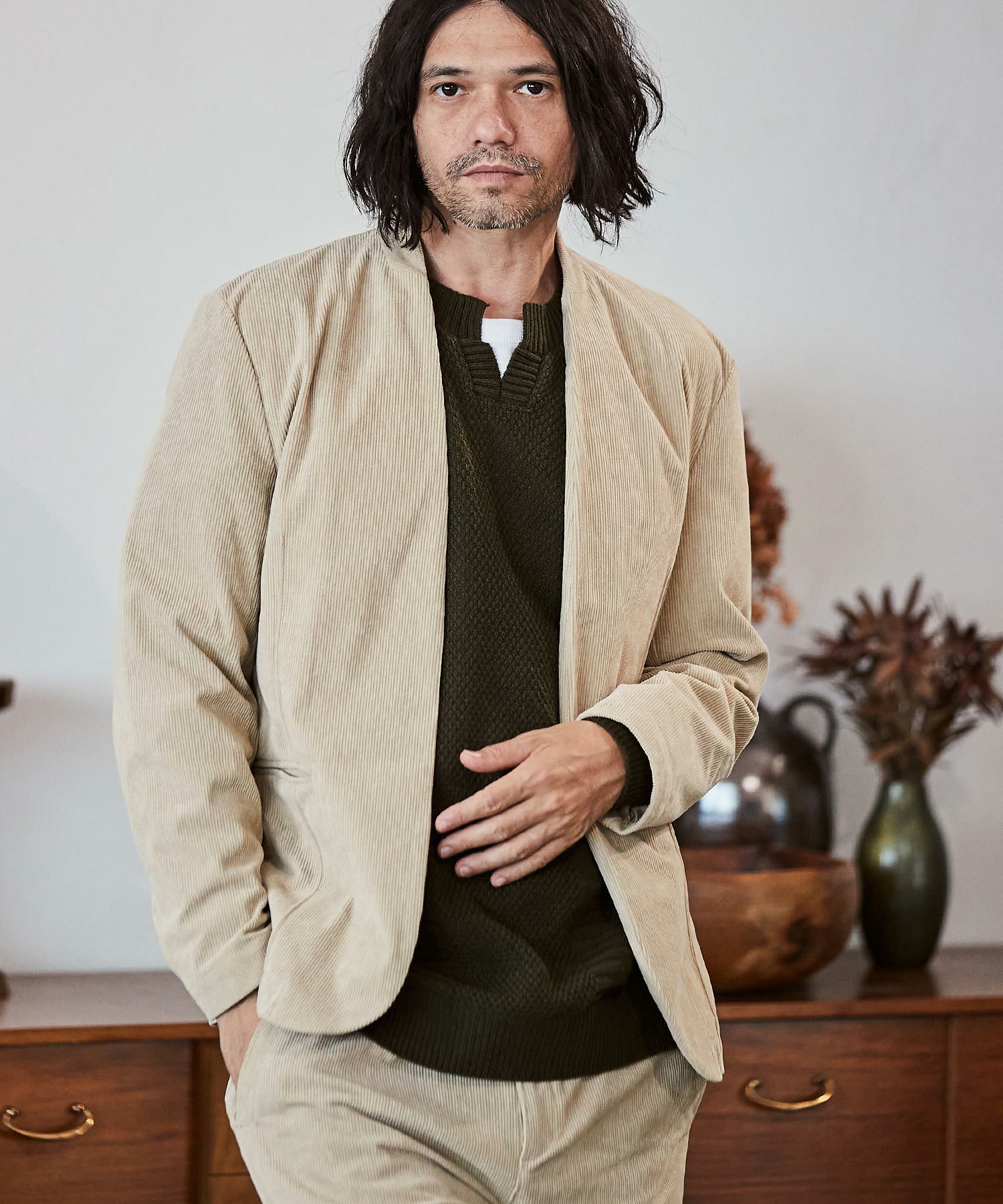 CAMBIO 50%OFF【CAMBIO(カンビオ)】スタンドハーフZIPコーデュロイカットソー