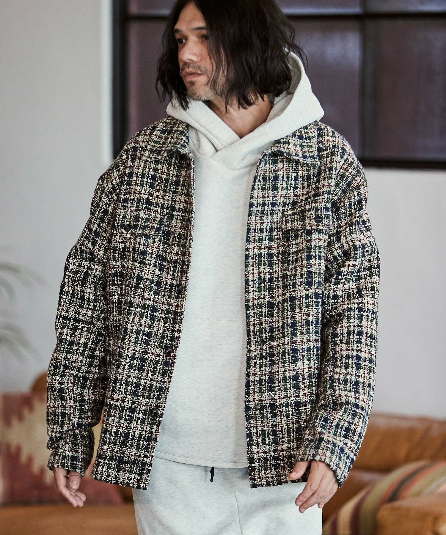 CAMBIO 60%OFF【CAMBIO(カンビオ)】ツイードチェックCPOシャツジャケット(23125CM)