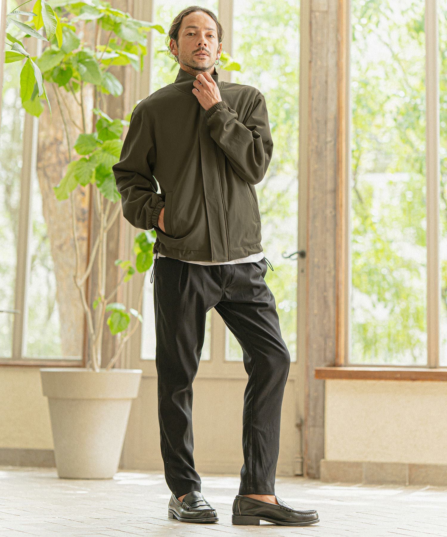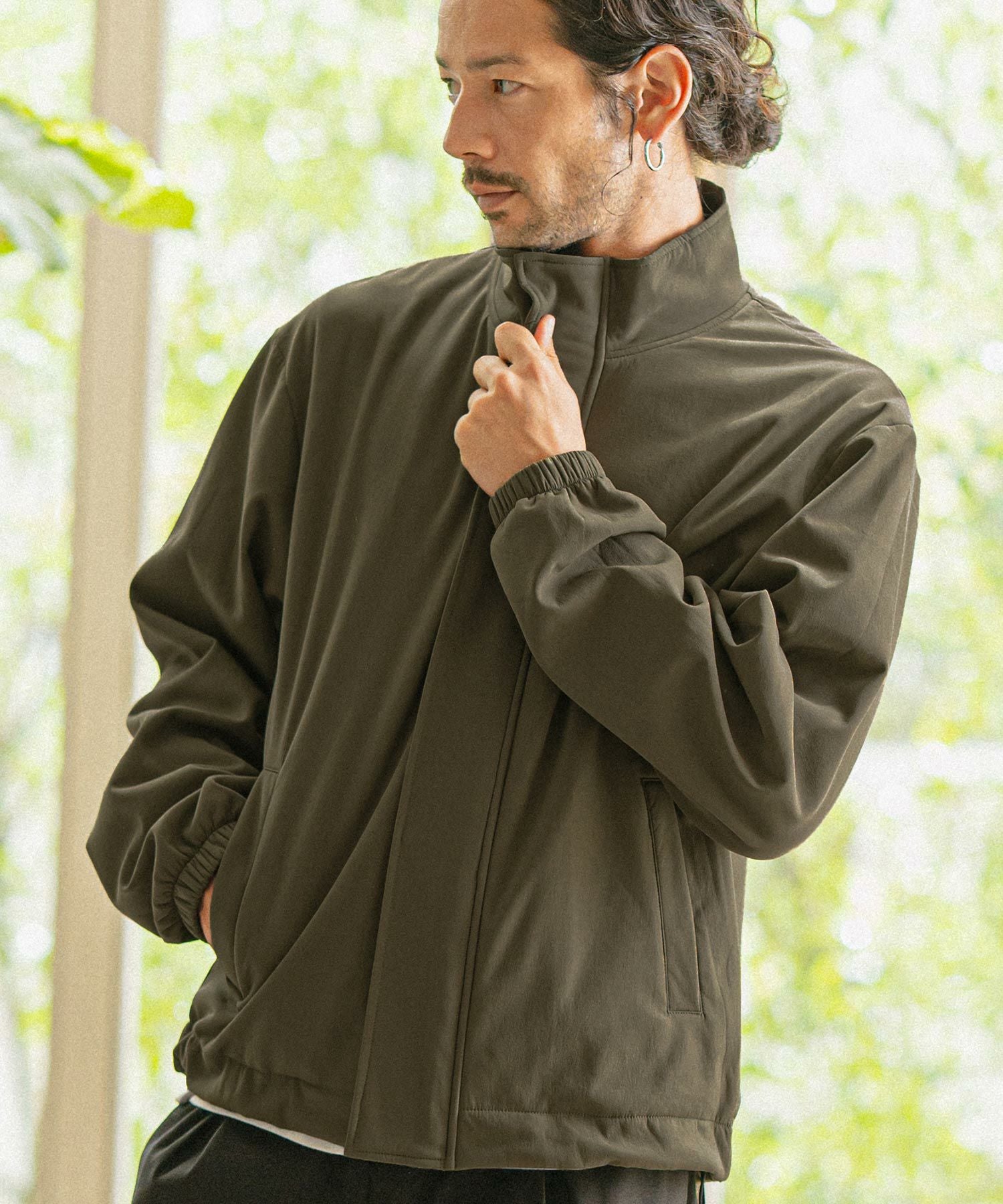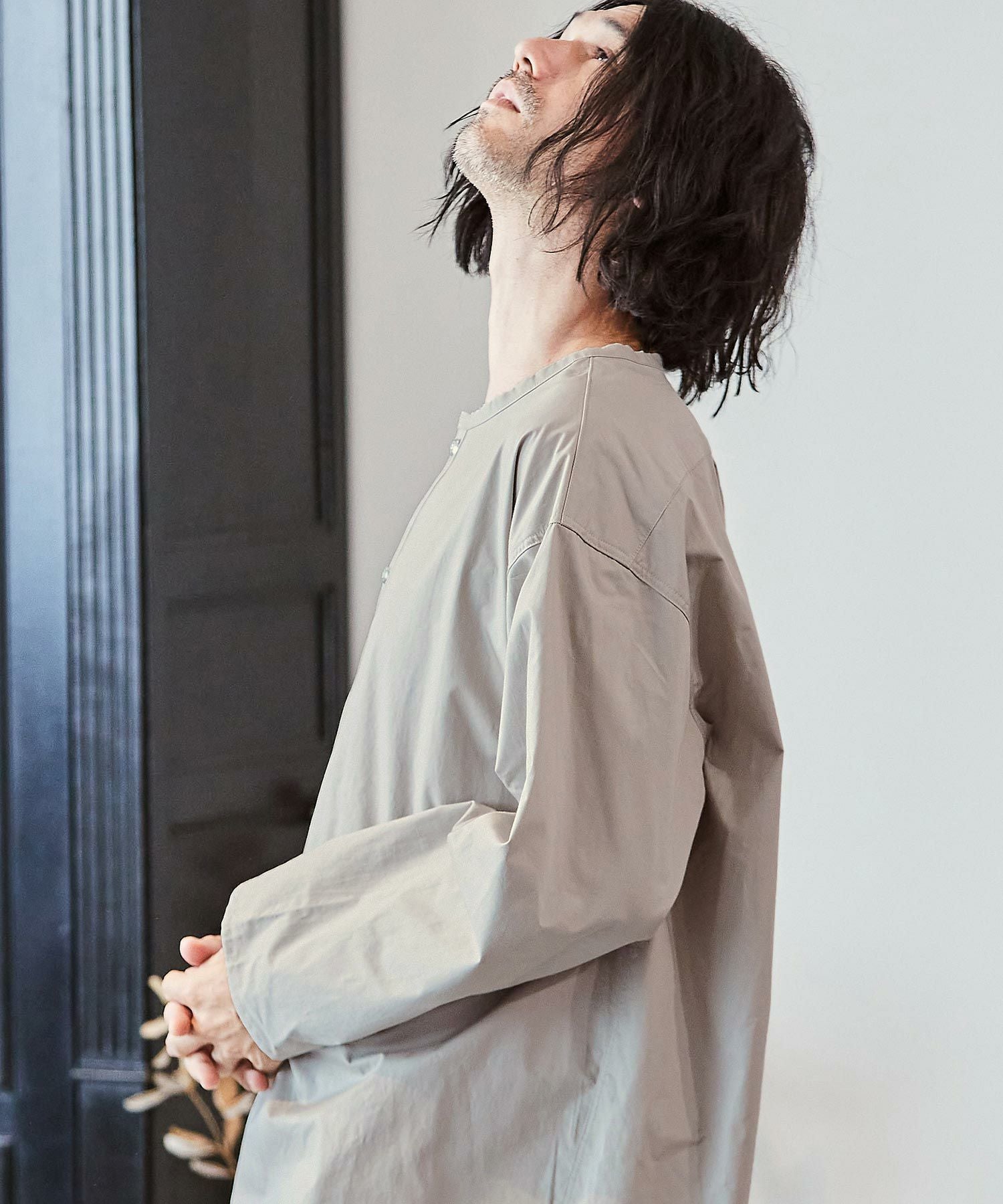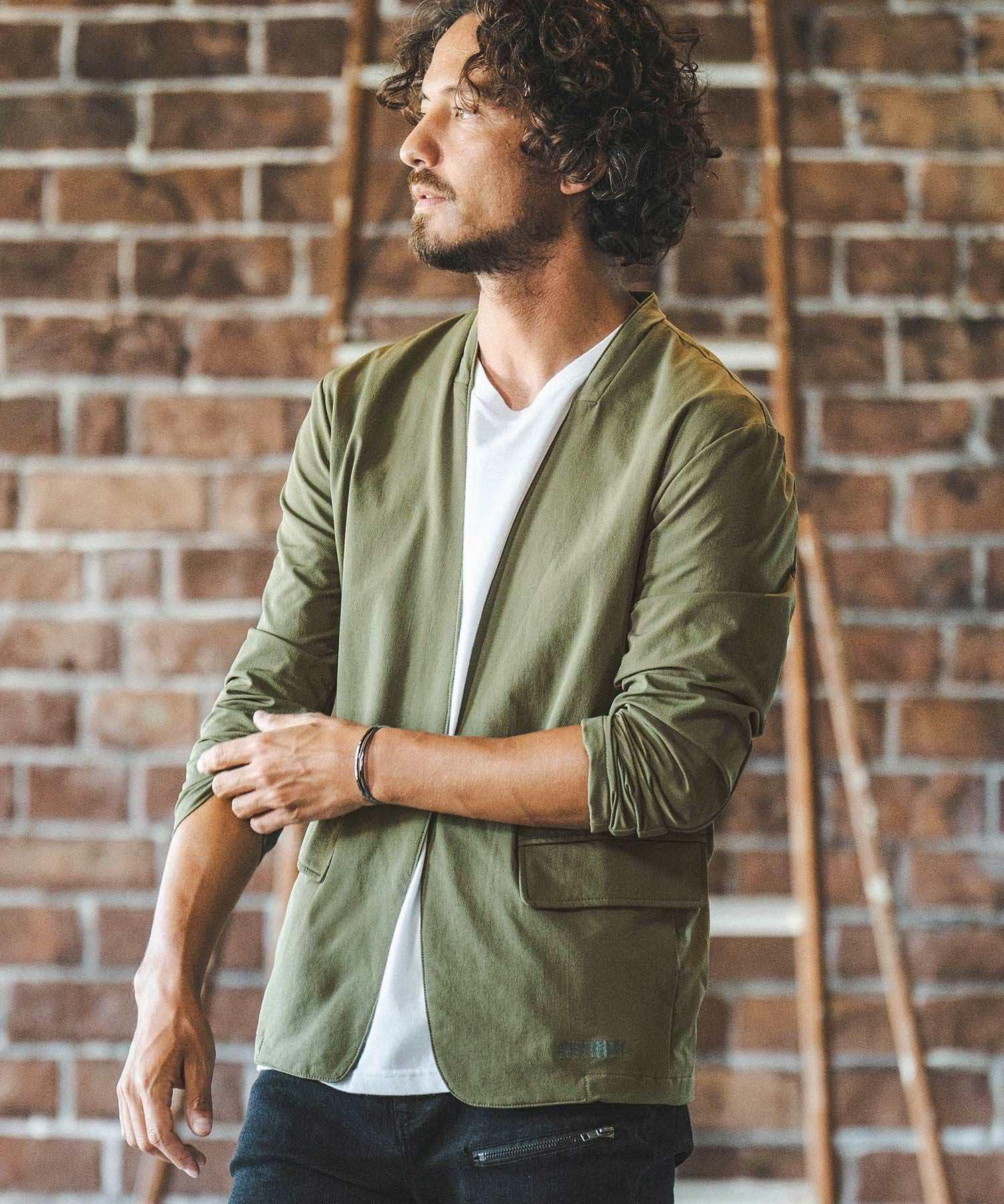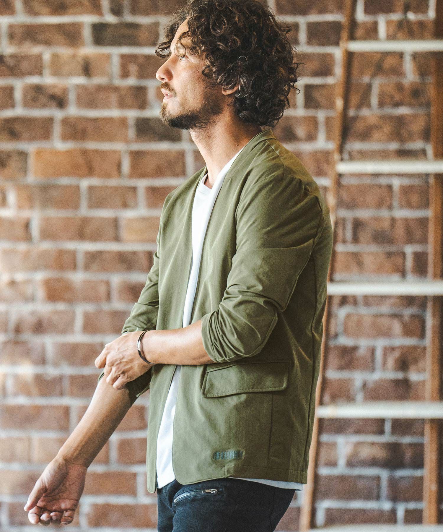 felkod 50%OFF【felkod(フィルコッド)】Shrink Stretch Nylon Collarless Jacket ノーカラージャケット(F23F050)