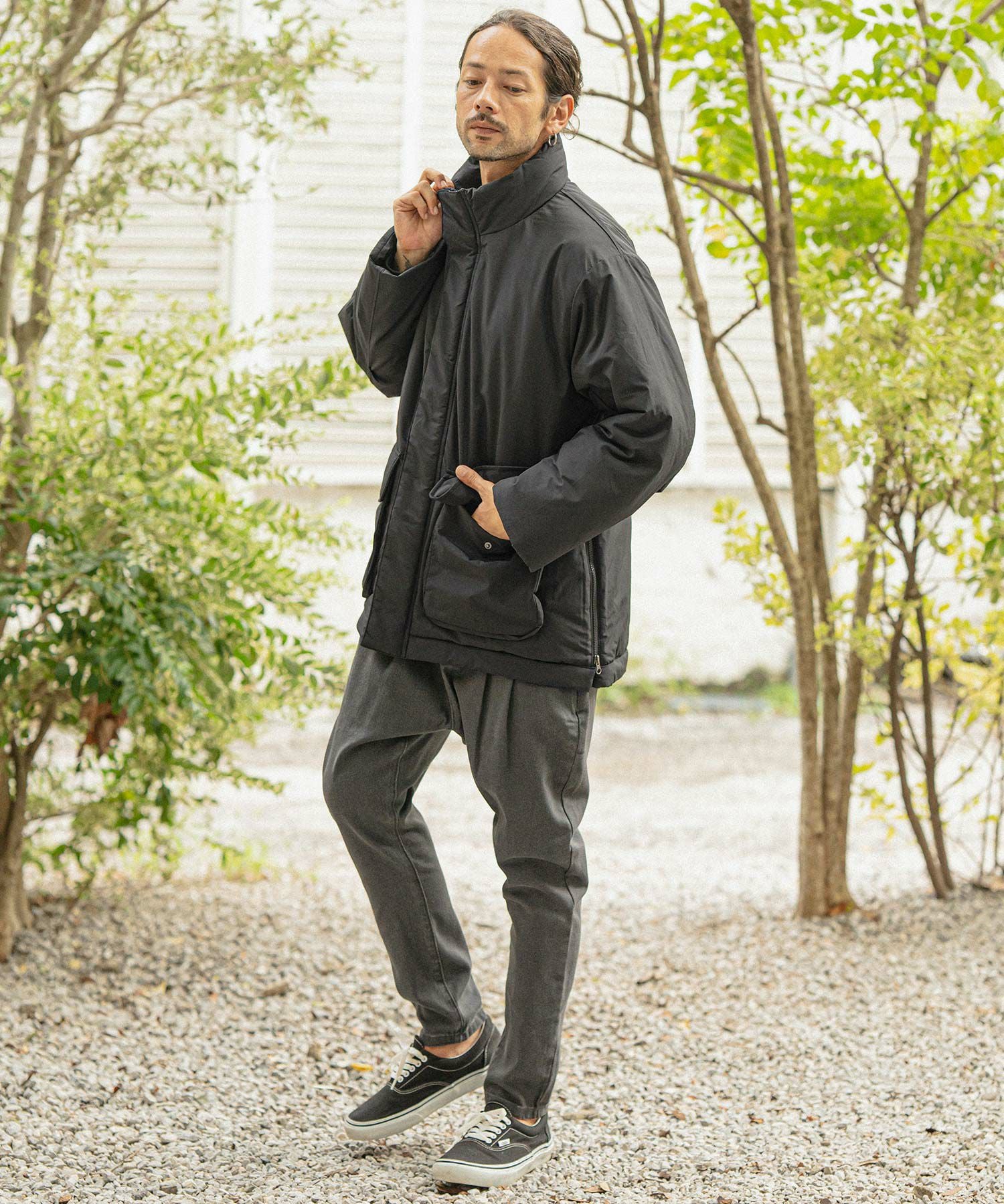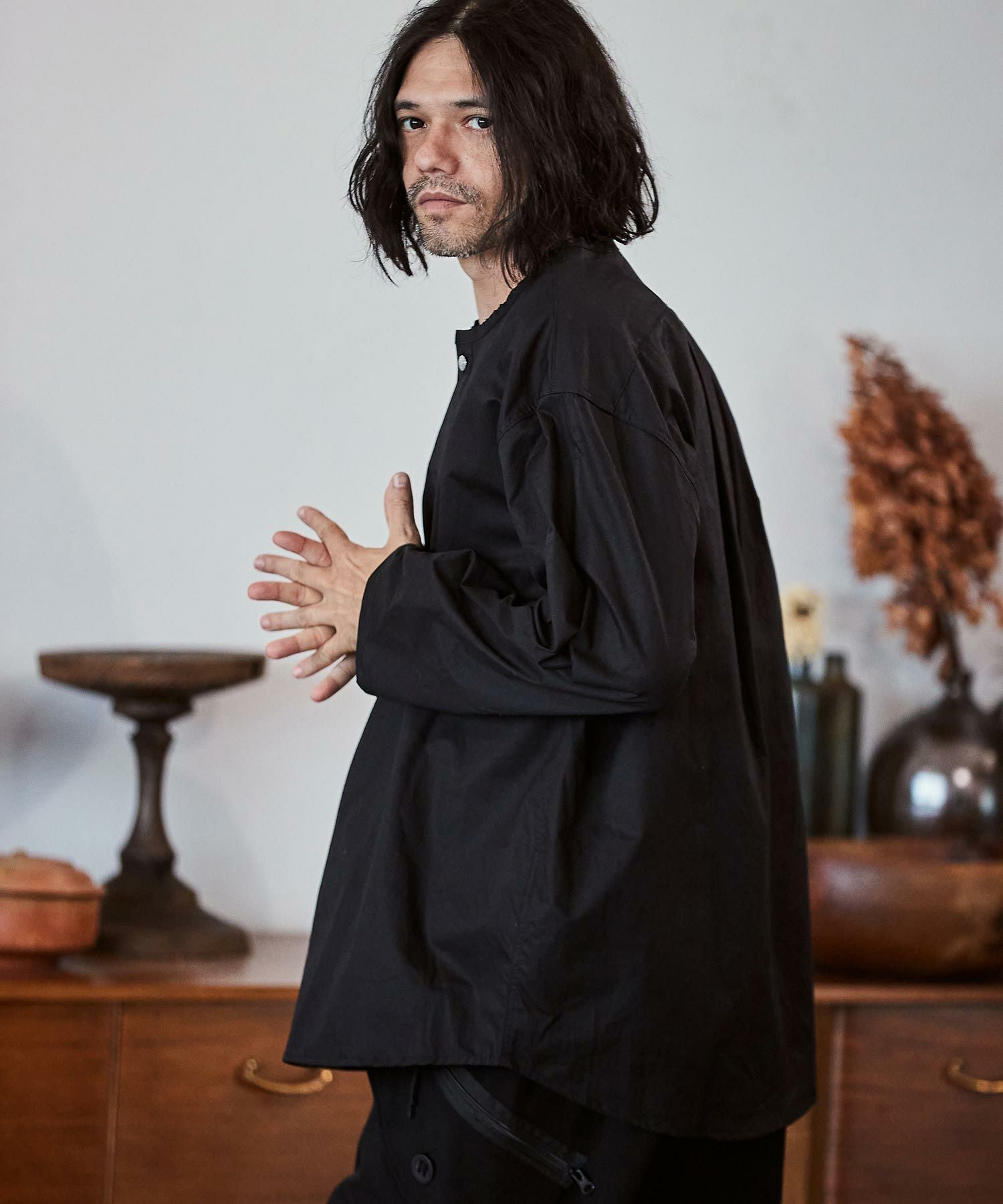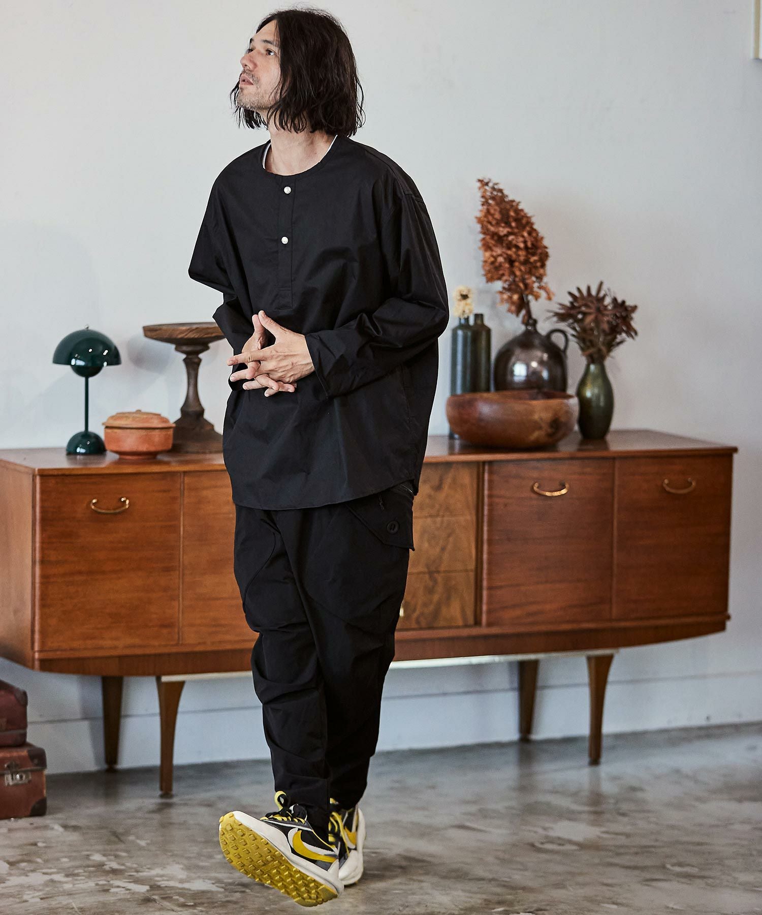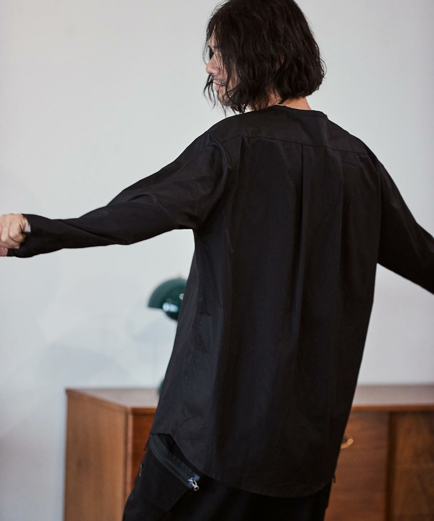felkod 50%OFF【felkod(フィルコッド)】Shrink Stretch Nylon Collarless Jacket ノーカラージャケット(F23F050)