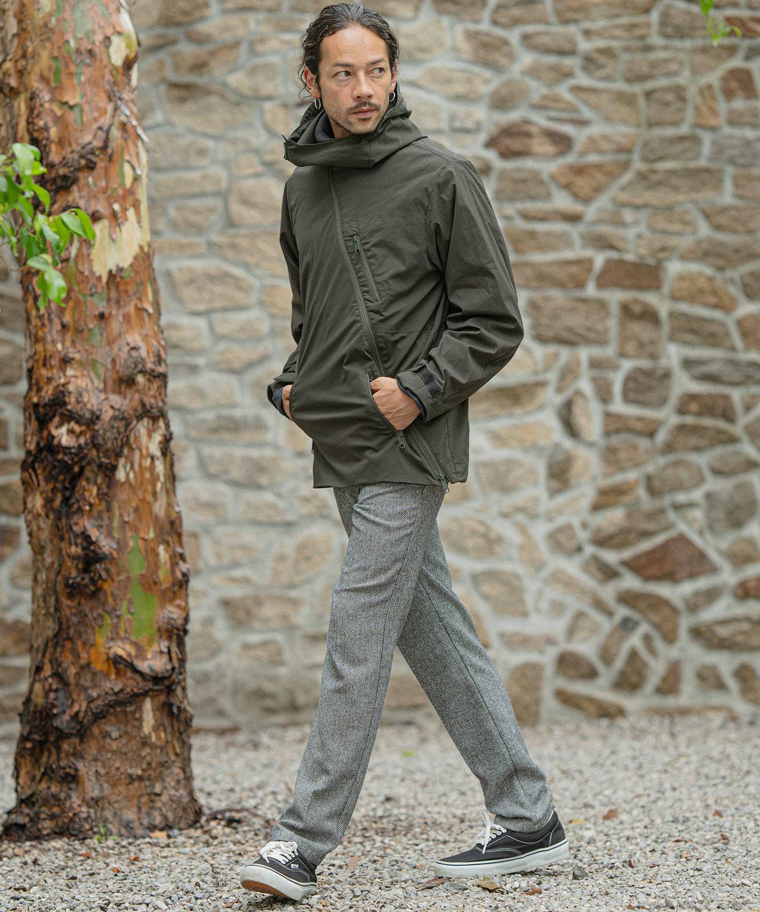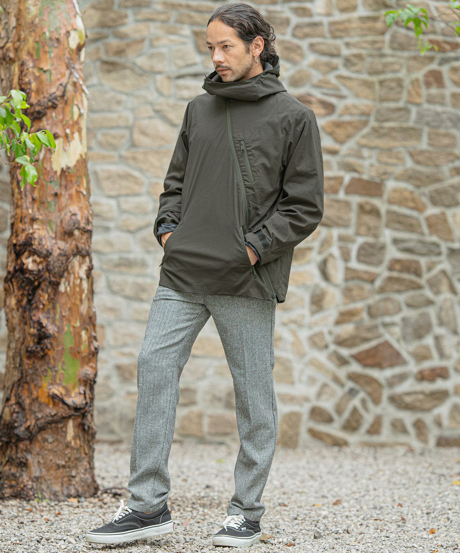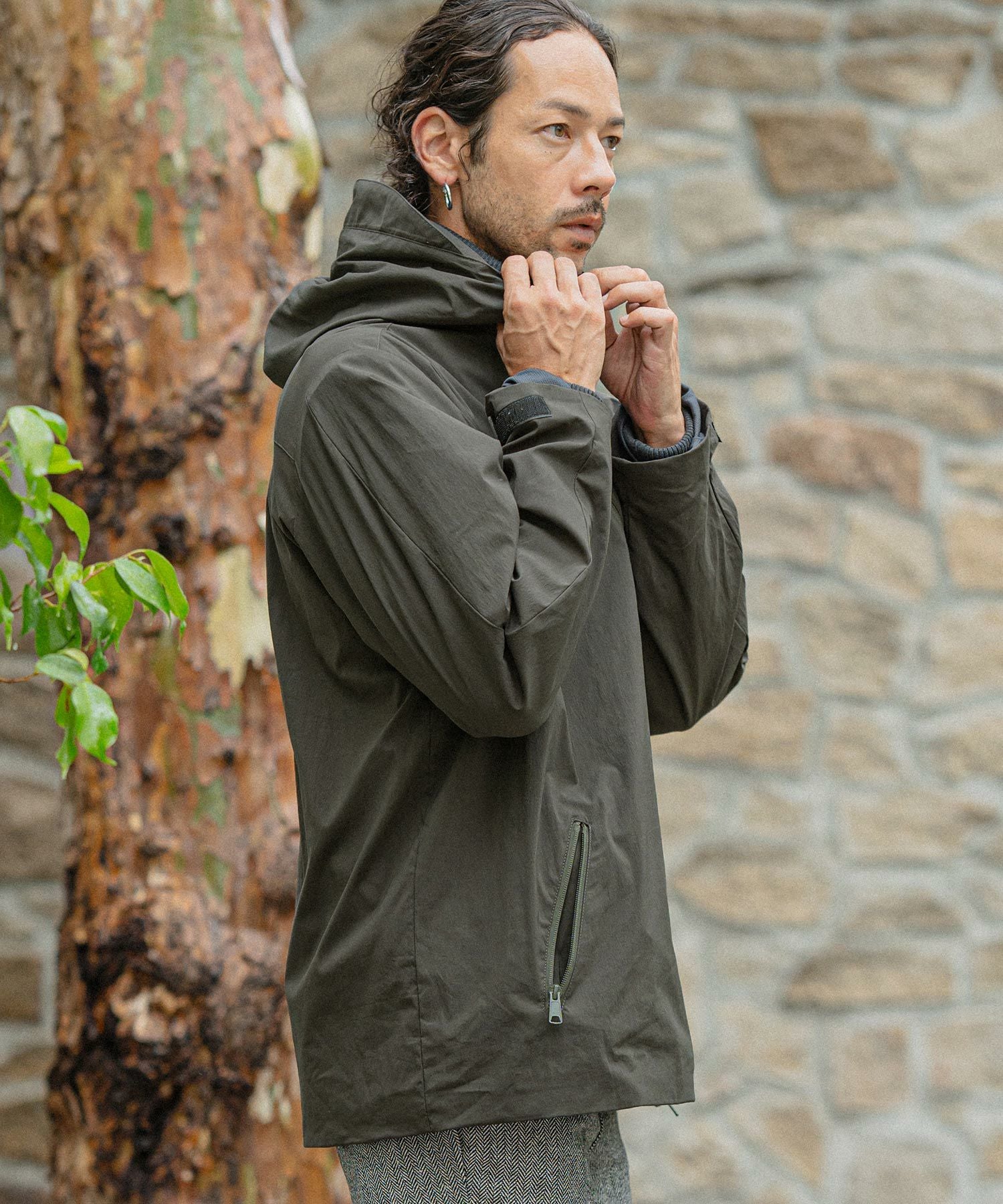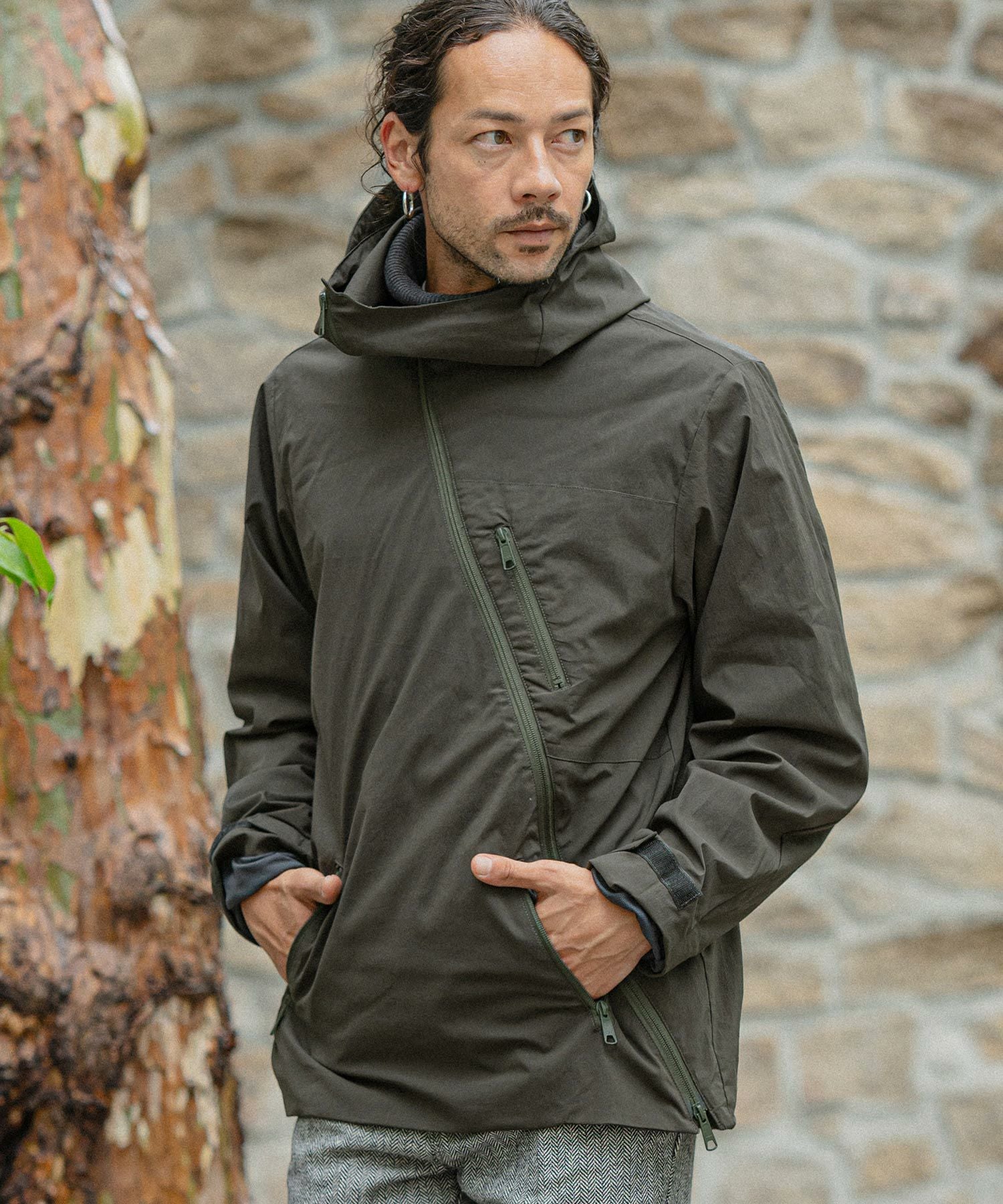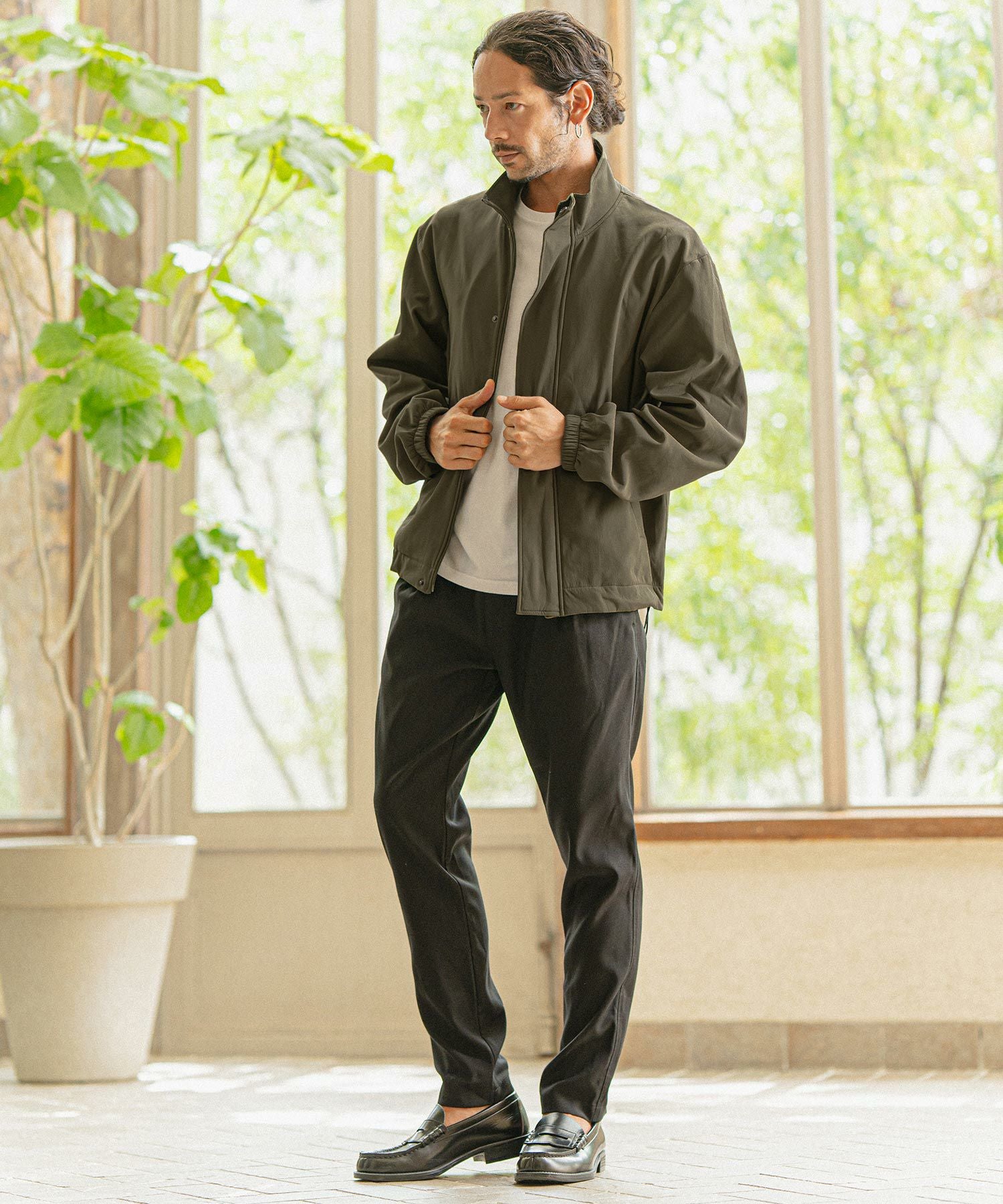 felkod 50%OFF【felkod(フィルコッド)】Shrink Stretch Nylon Collarless Jacket ノーカラージャケット(F23F050)