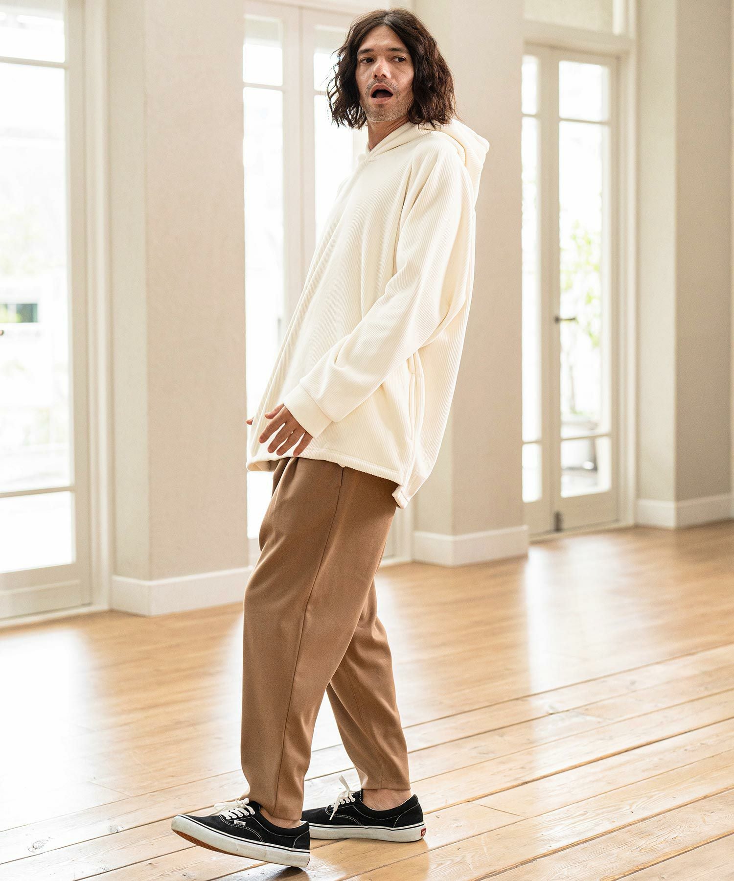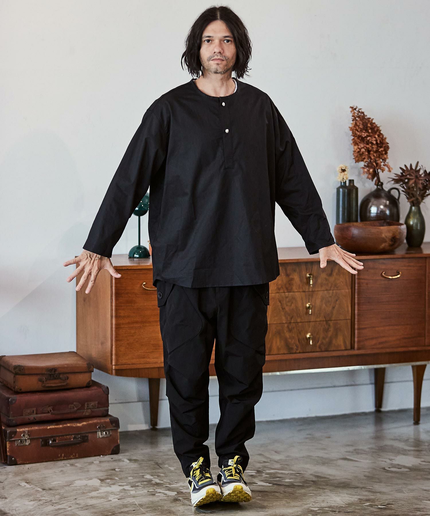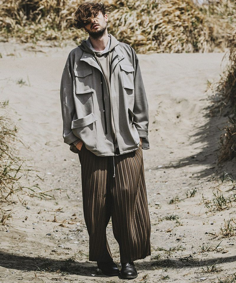 MROLIVE 50%OFF【MROLIVE(ミスターオリーブ)】RETORO POLYESTER TWILL -EASY TWO PLEATS STA-PREST WIDE PANTS ワイドスラックスパンツ(M233110)