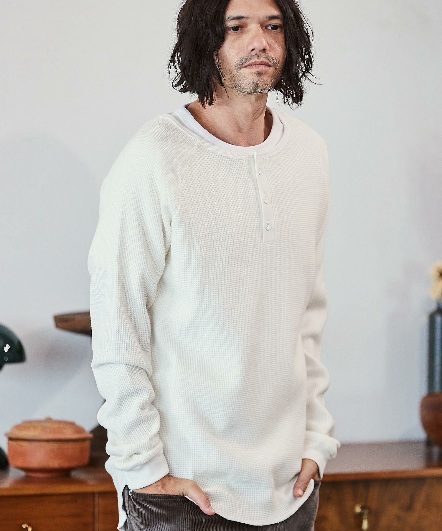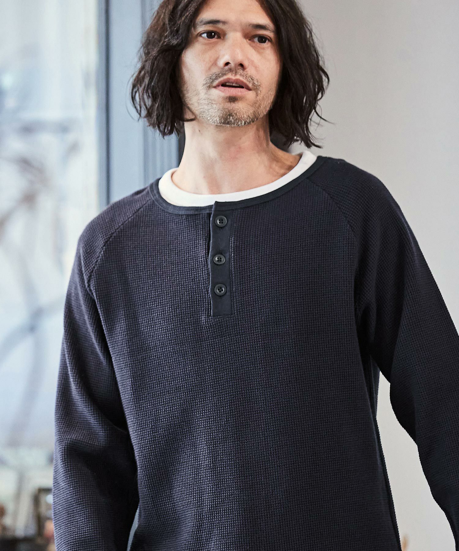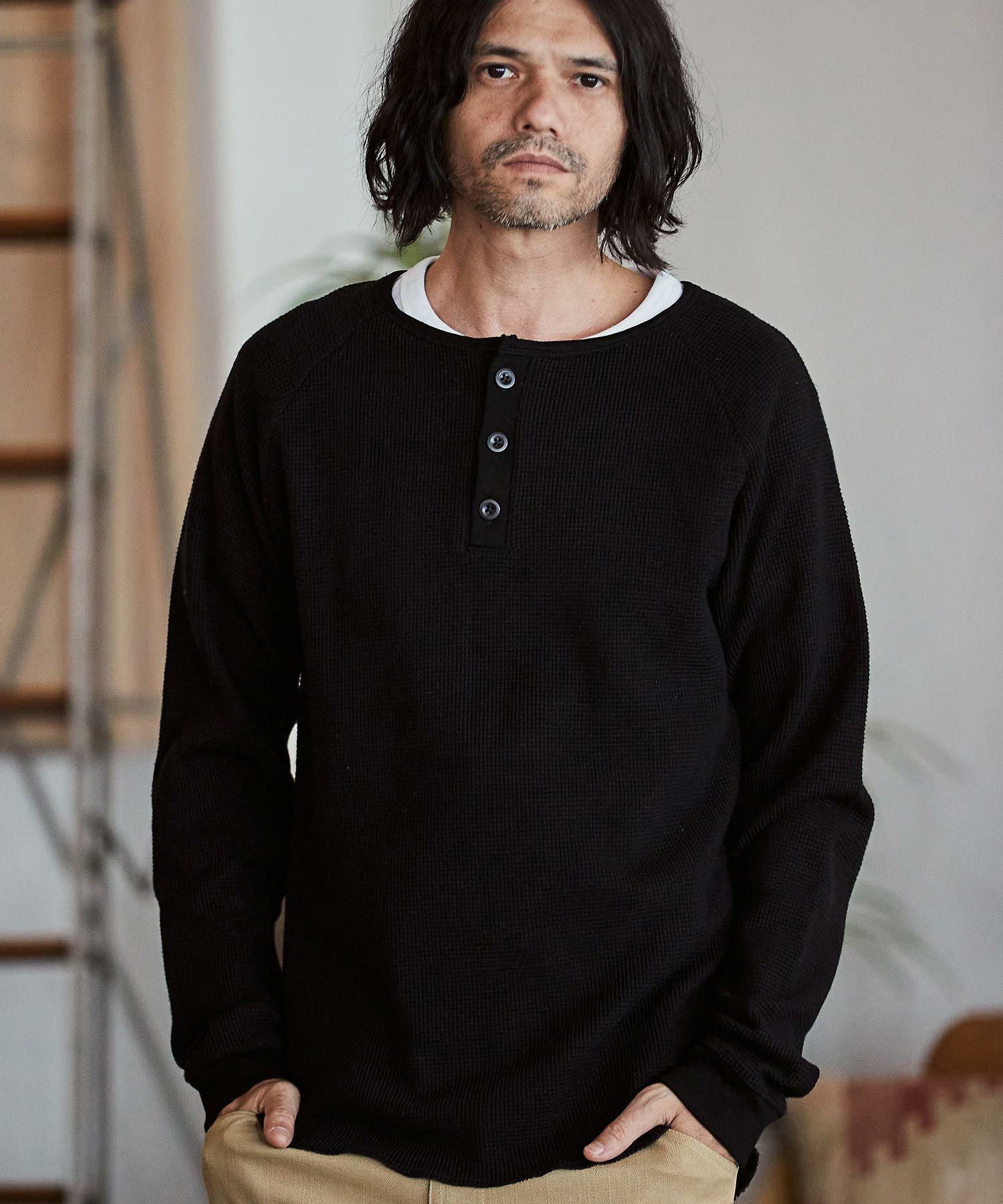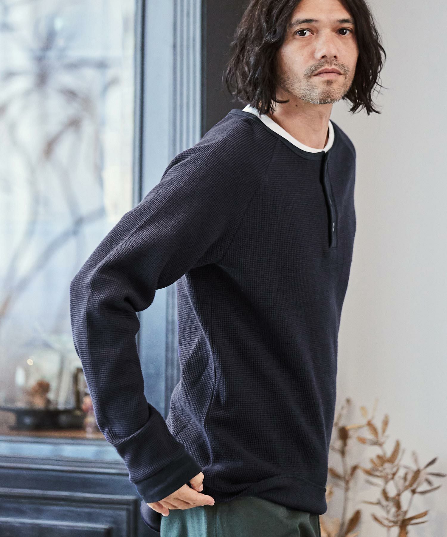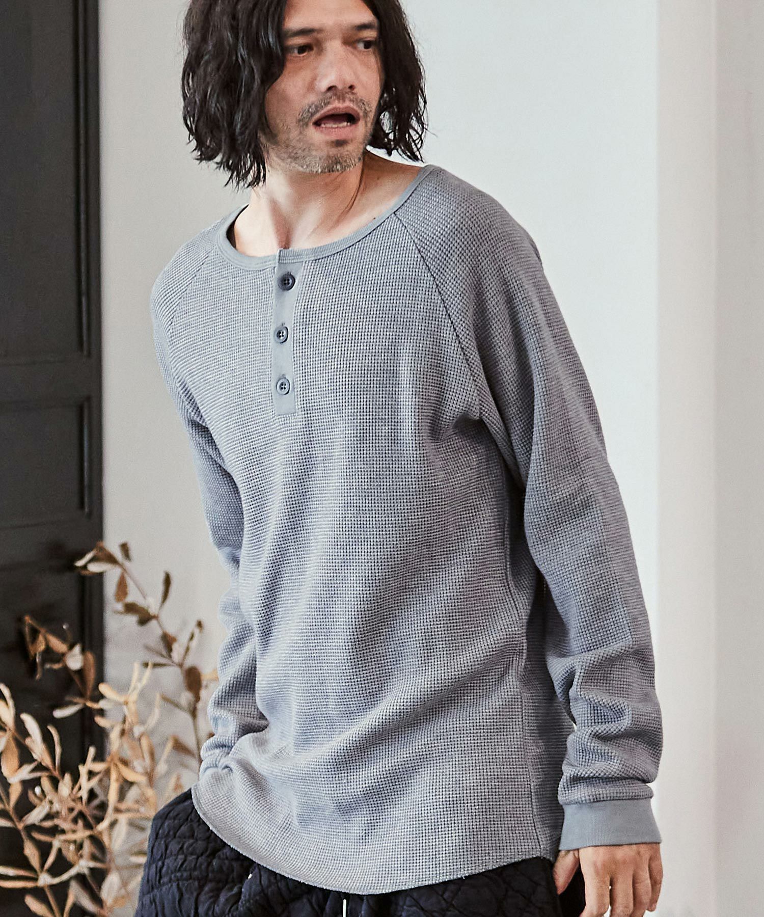 CAMBIO 30%OFF【CAMBIO(カンビオ)】ヘビーワッフルヘンリーネックカットソー(HLCM0127)