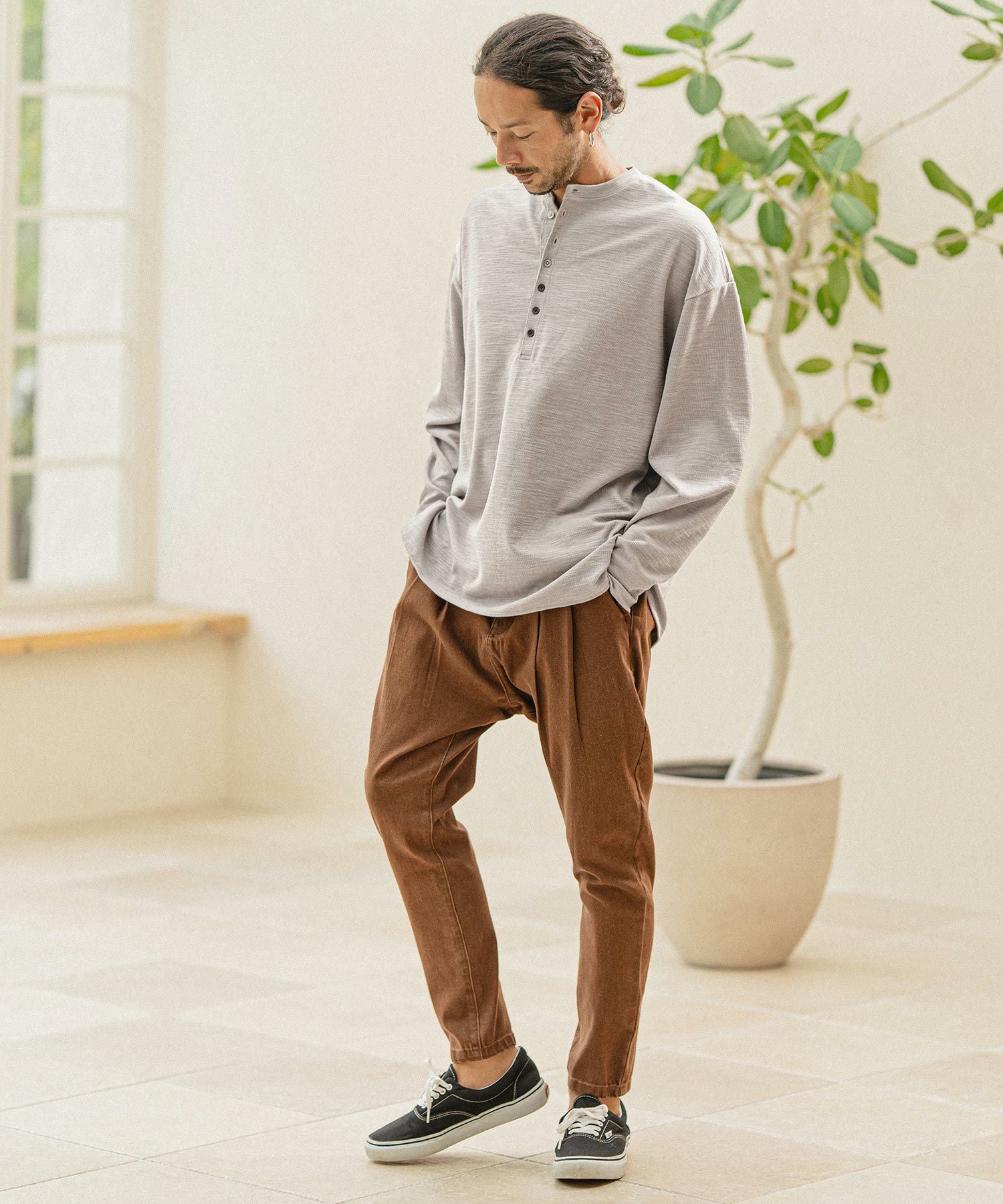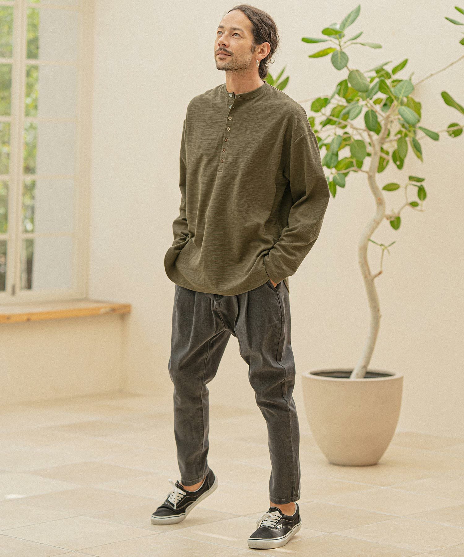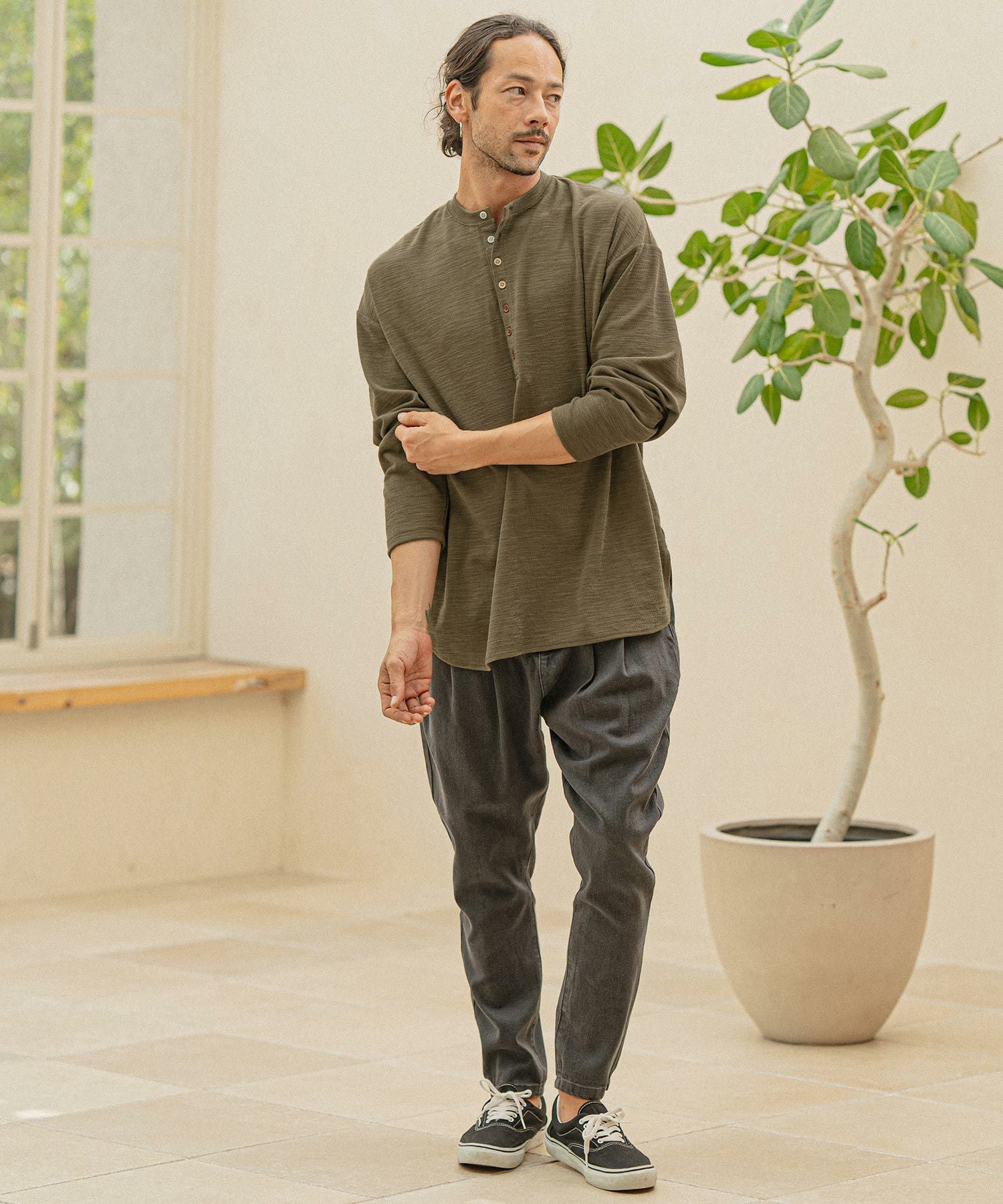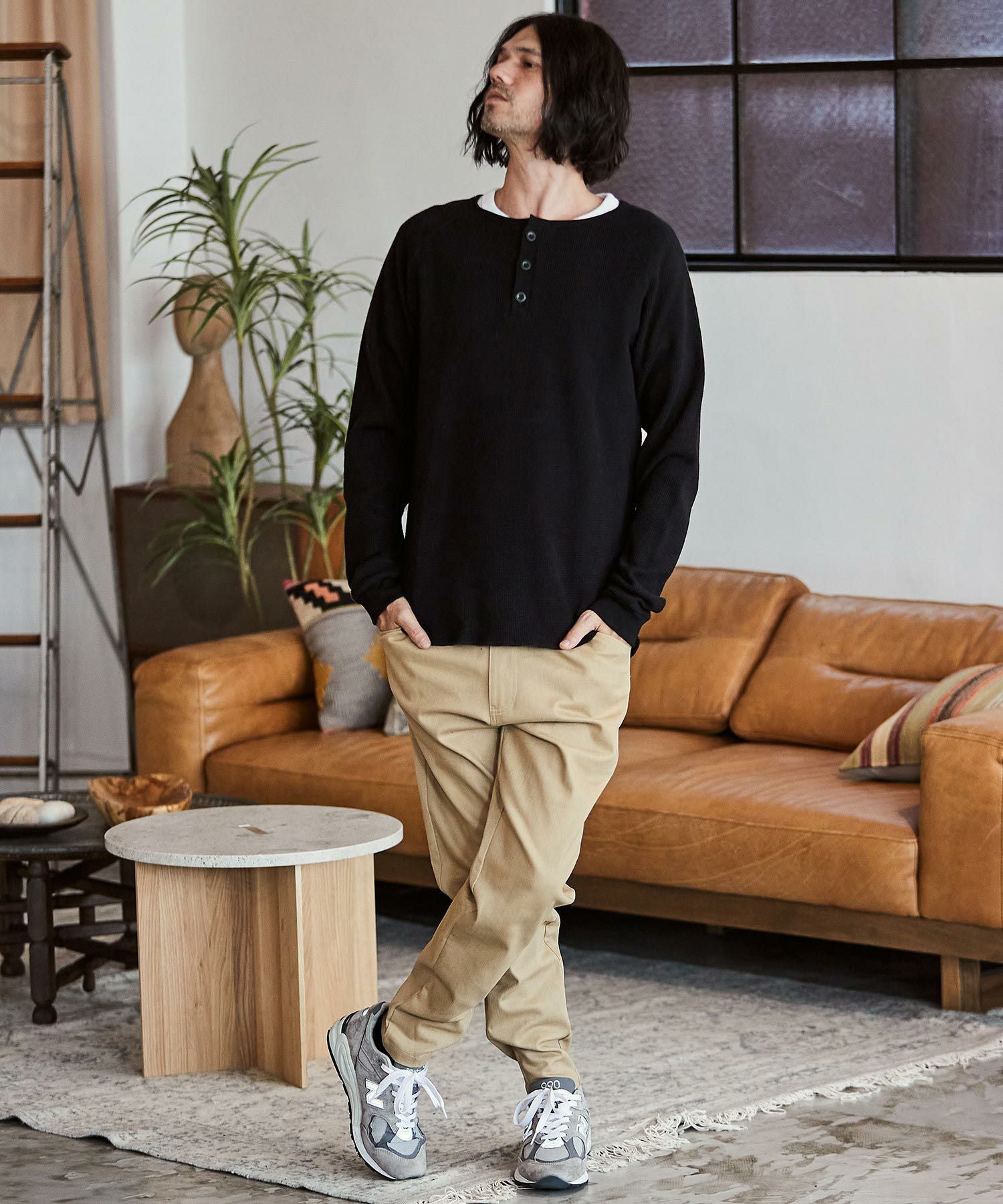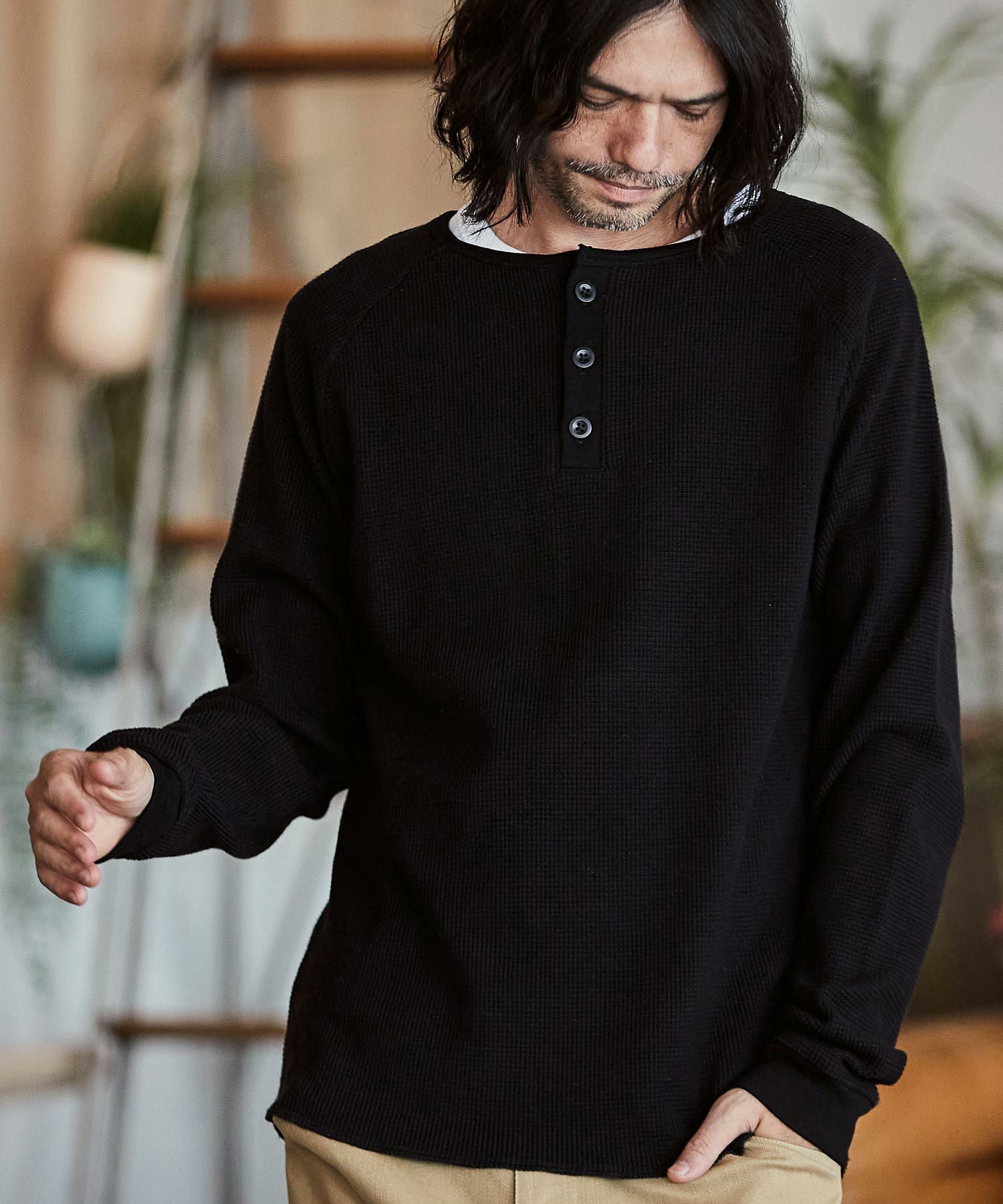 CAMBIO 30%OFF【CAMBIO(カンビオ)】ヘビーワッフルヘンリーネックカットソー(HLCM0127)