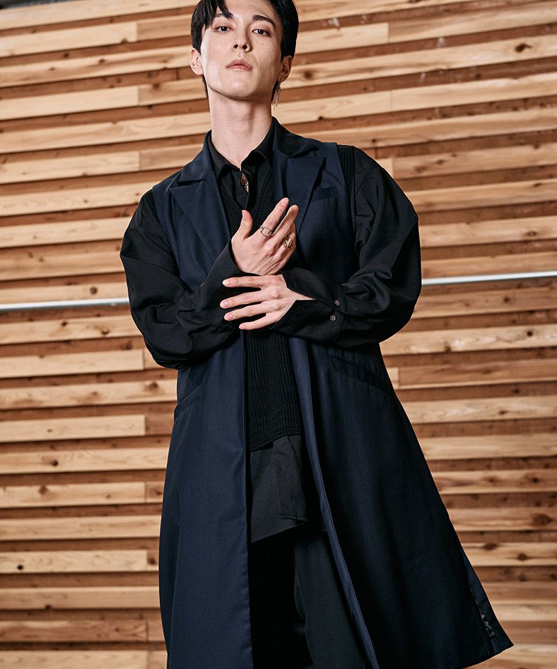 NO ID. 60%OFF【NO ID.(ノーアイディー)】ノースリーブディープロングジャケット(853006-540J)