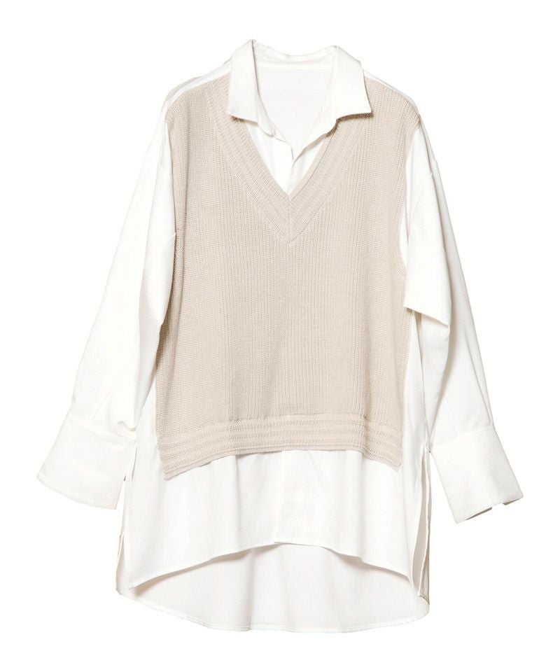 NO ID. 60%OFF【NO ID.(ノーアイディー)】ドッキングニットSH シャツ(453010-552S)