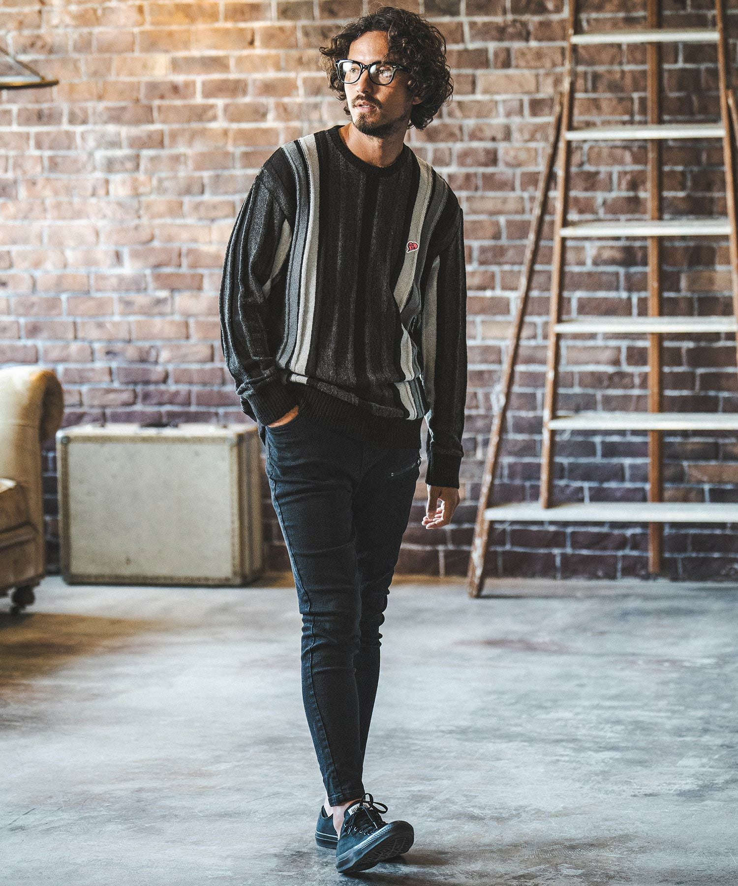 ADAM PATEK 【ADAM PATEK(アダムパテック)】diagonal fringe pattern looose shirt シャツ(AP2325012)