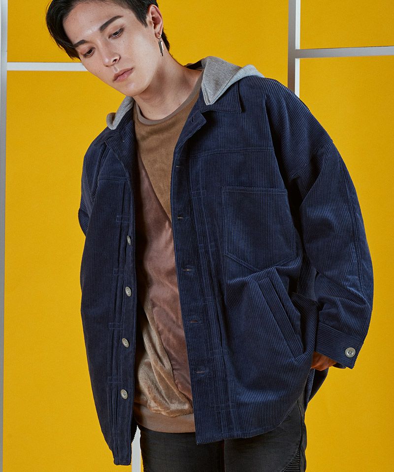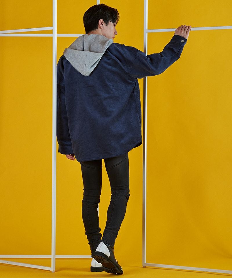NO ID. 60%OFF【NO ID.(ノーアイディー)】 コーデュロイフードBIG-SH シャツ(853006-584S)
