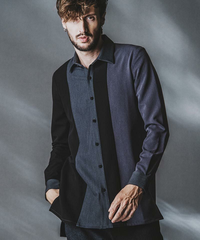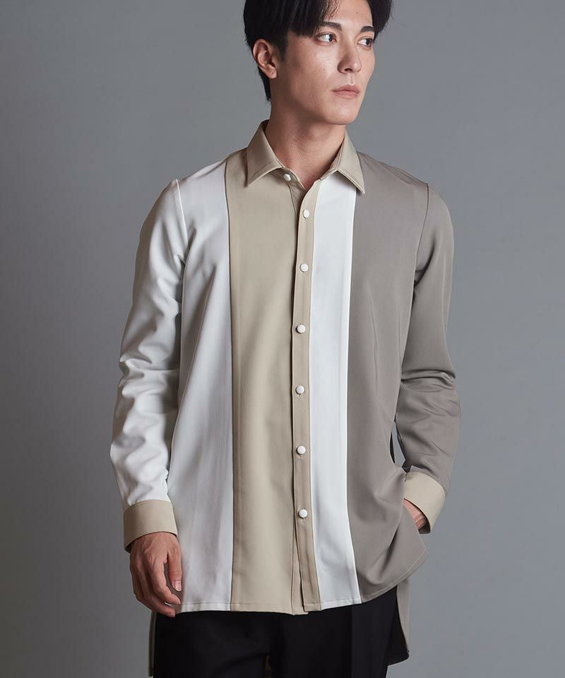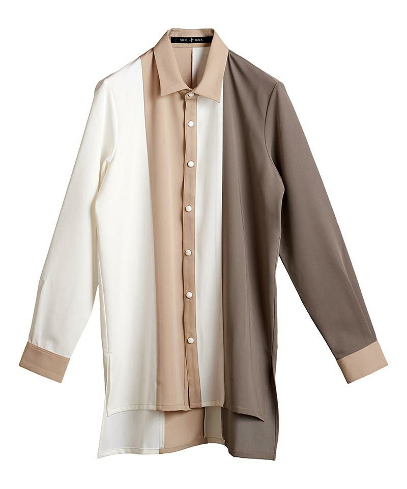 NO ID. 70%OFF【NO ID.(ノーアイディー)】カラーブロッキングロングSH シャツ(453006-610S)