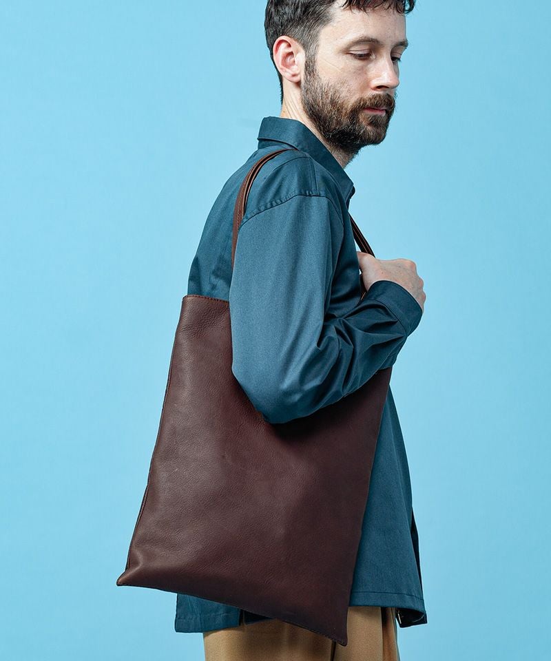 MROLIVE 【MR.OLIVE E.O.I】WATER PROOF WASHABLE LEATHER -FLAT TOTE BAG (LARGE) トートバッグ(ME637)