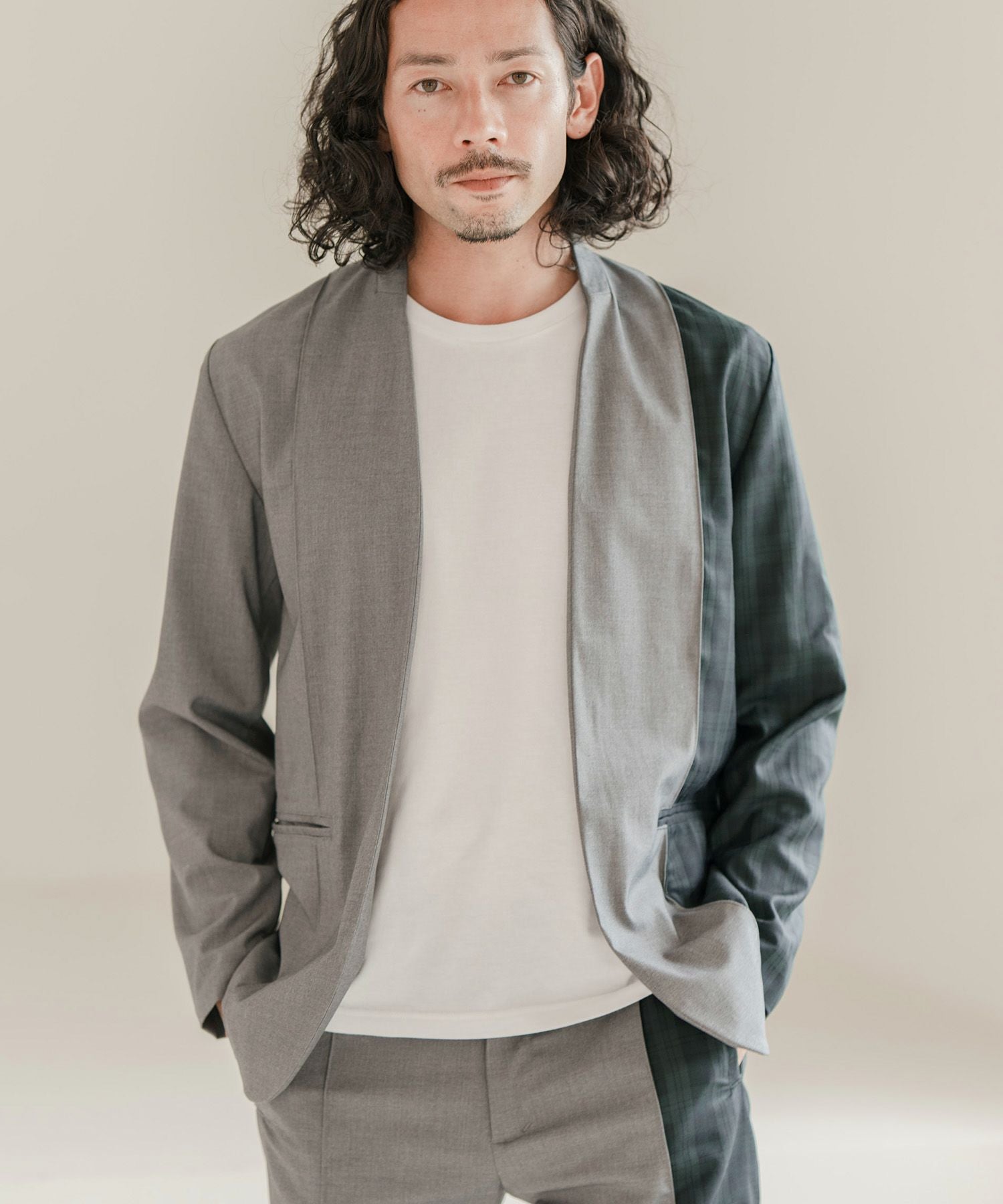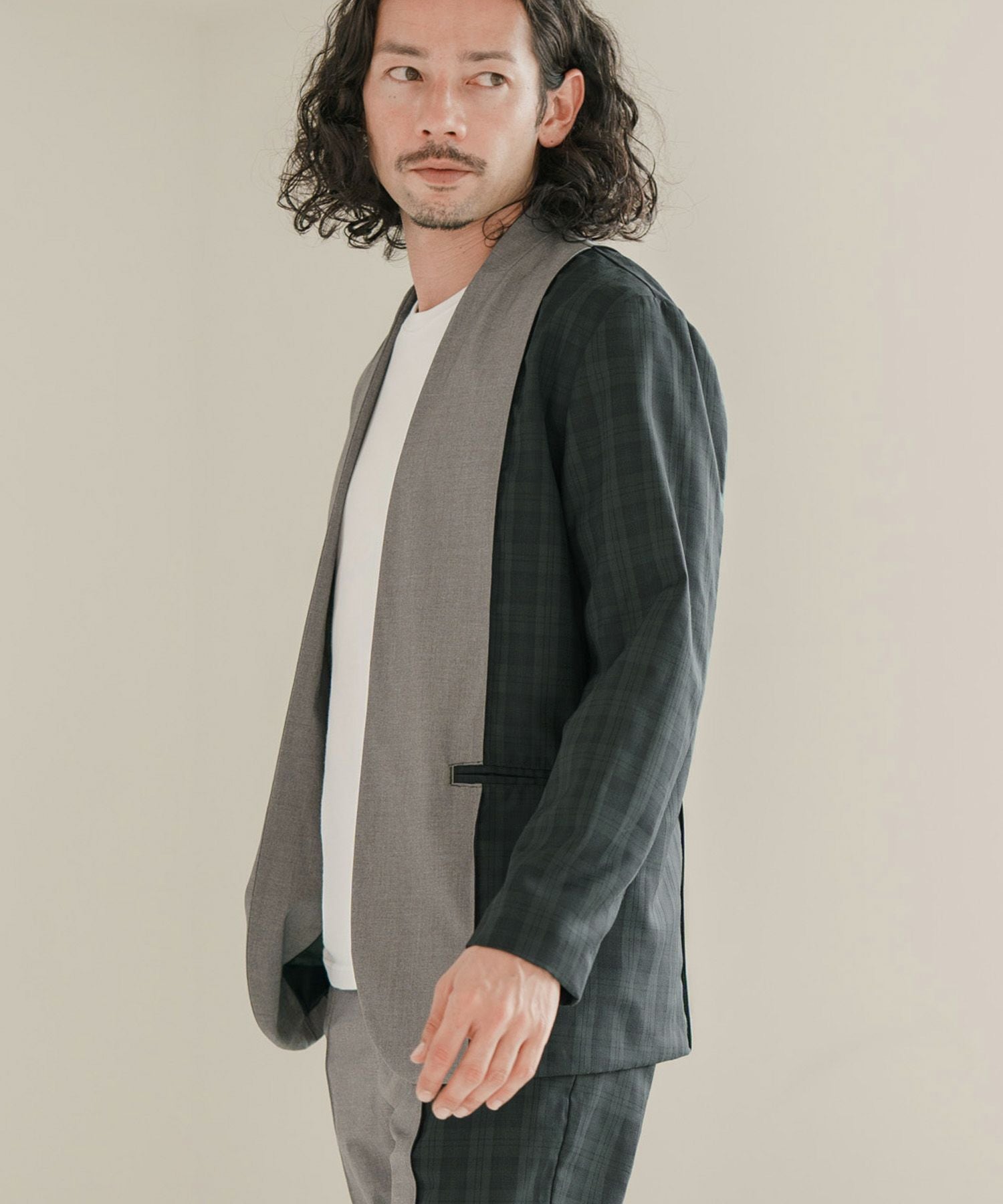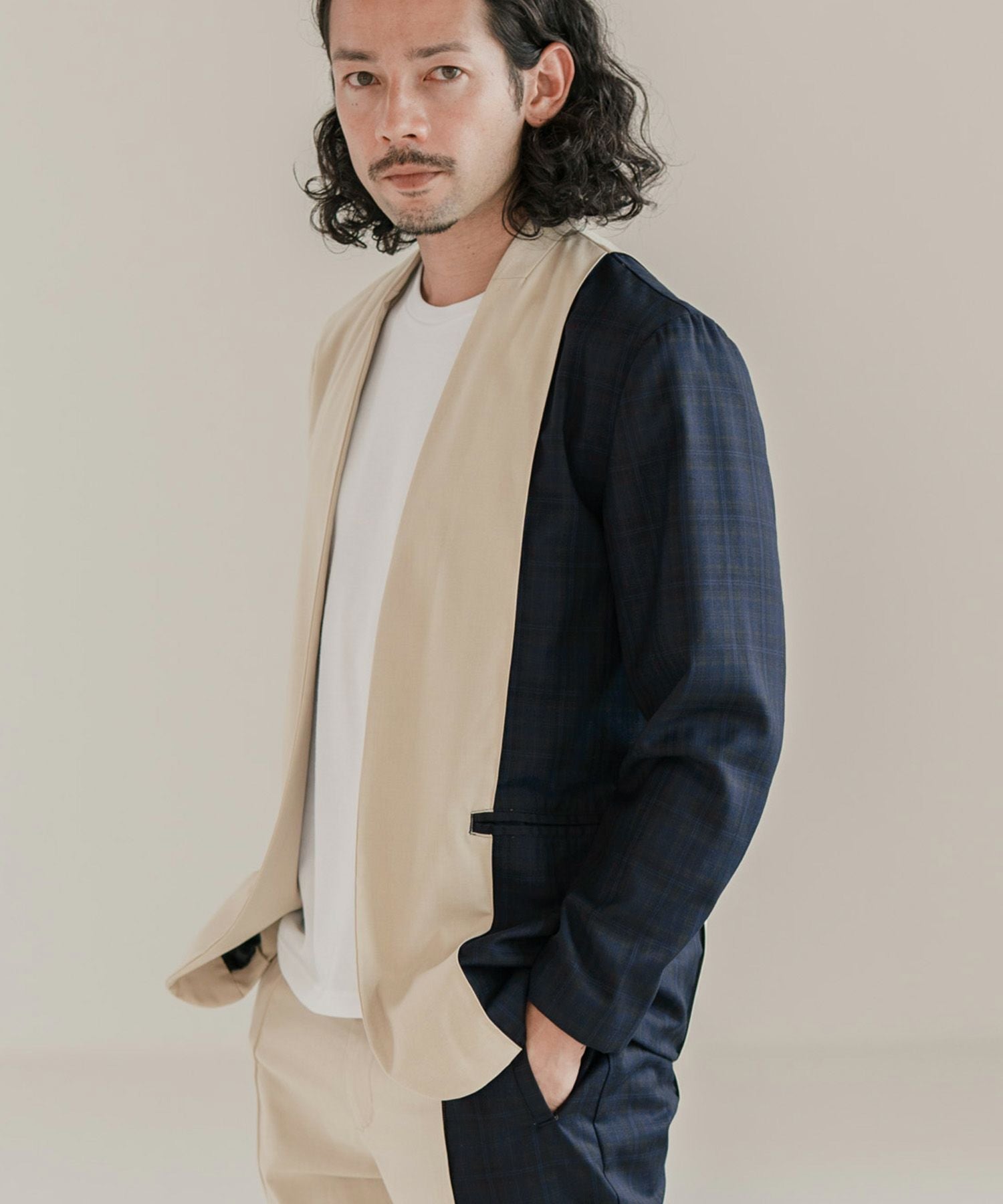 CAMBIO 60%OFF【CAMBIO(カンビオ)】チェック切替テーラードジャケット
