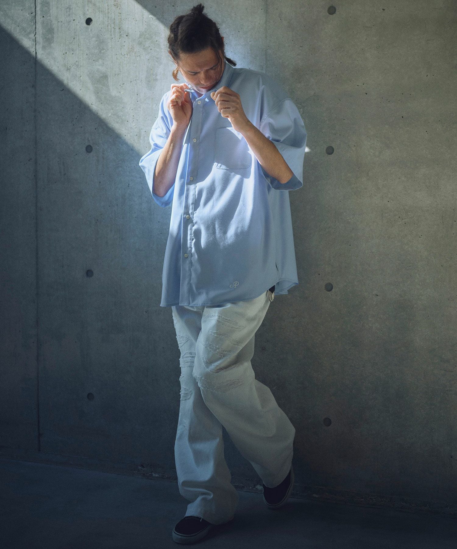 FDMTL 【FDMTL(ファンダメンタル)】PATCH DENIM SHIRT 5YR WASH デニムシャツ(FA25SH33U)