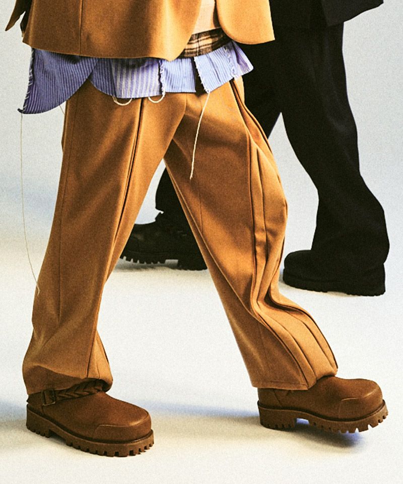 ATTACHMENT 【ATTACHMENT(アタッチメント)】PE STRETCH DOUBLE CLOTH BELTED WIDE TAPERD TROUSERS ワイドテーパードパンツ(AP52-080)