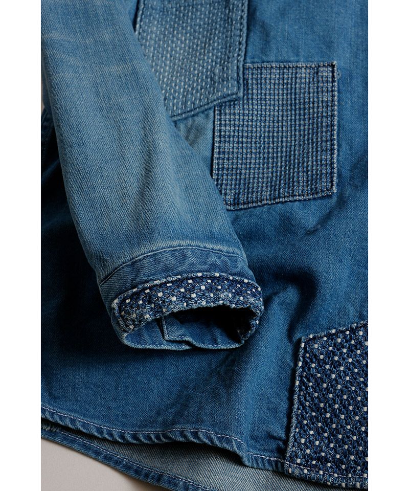 FDMTL 【FDMTL(ファンダメンタル)】BORO JAQUARD HAORI SHIRT RINSE 羽織シャツ(FA25SH47R)