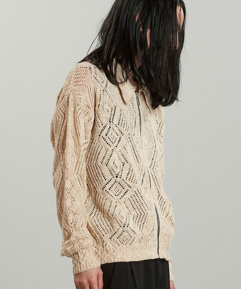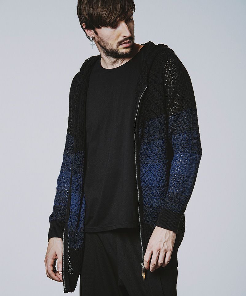 NO ID. 50%OFF【NO ID.(ノーアイディー)】チェンジングシアーニットZIPパーカ(456010-218K)