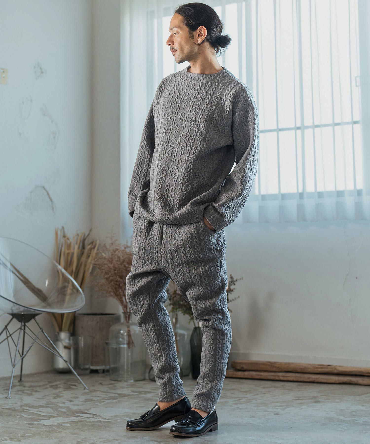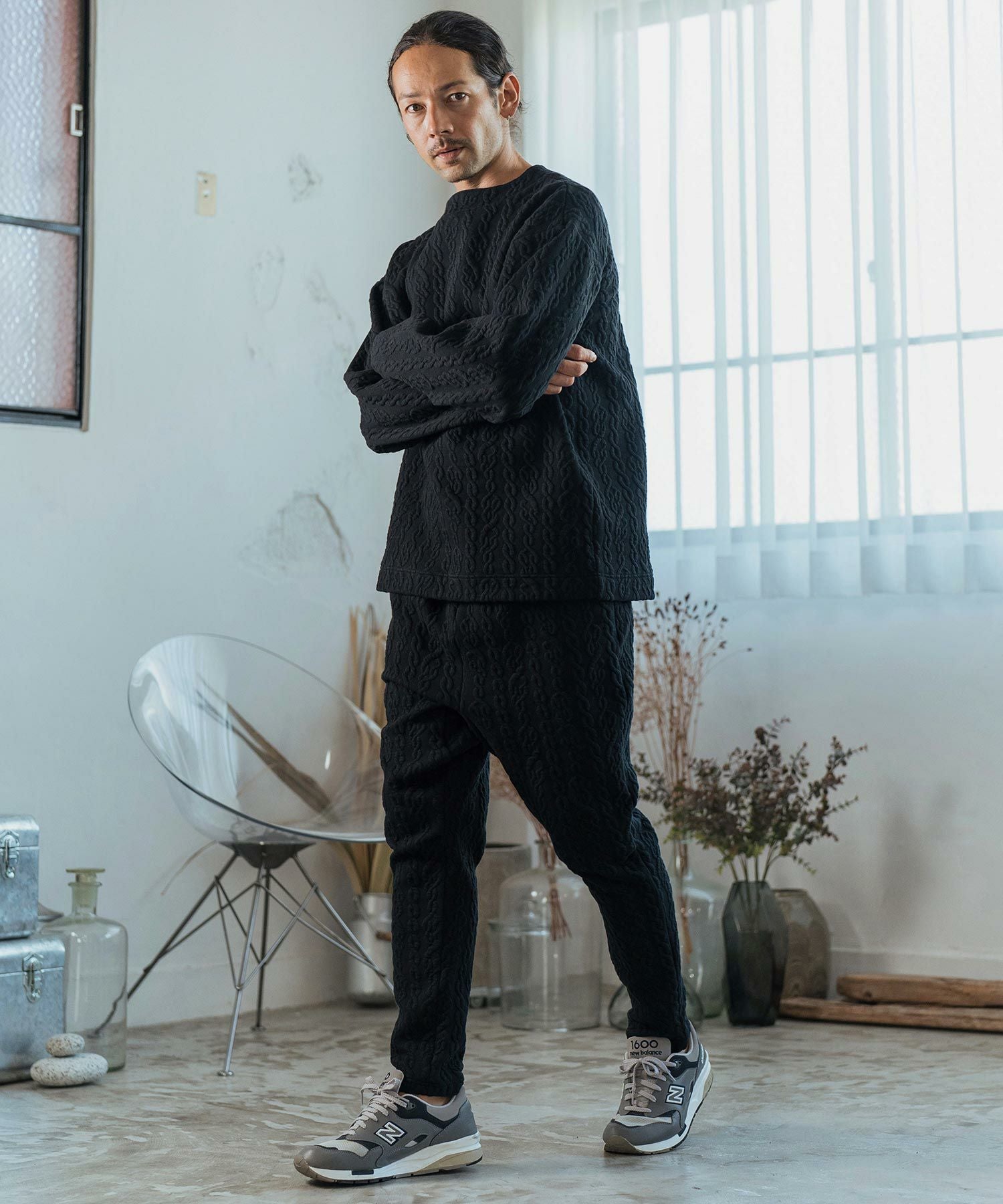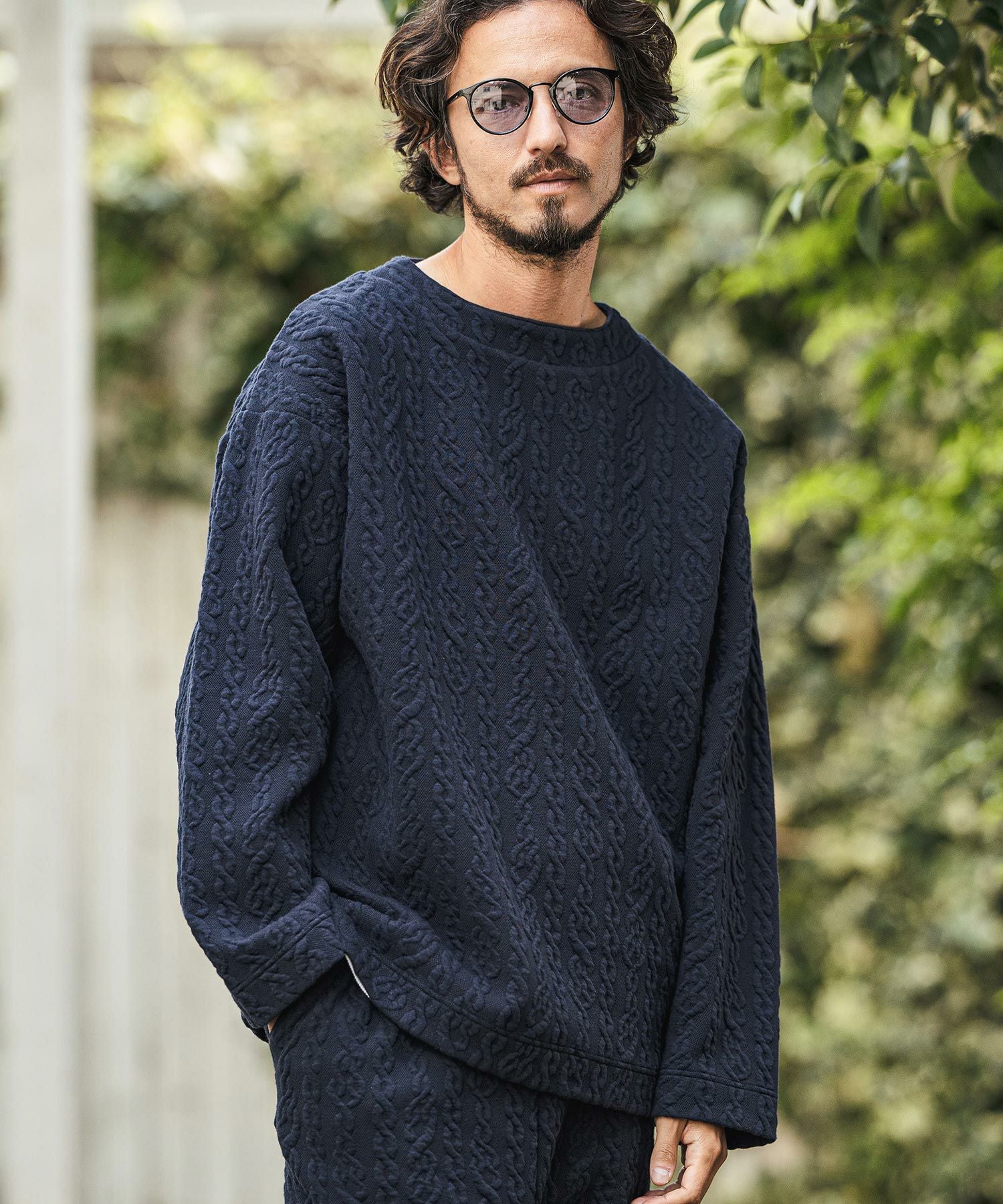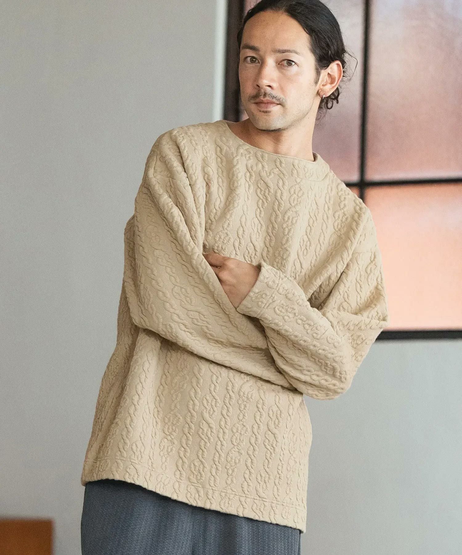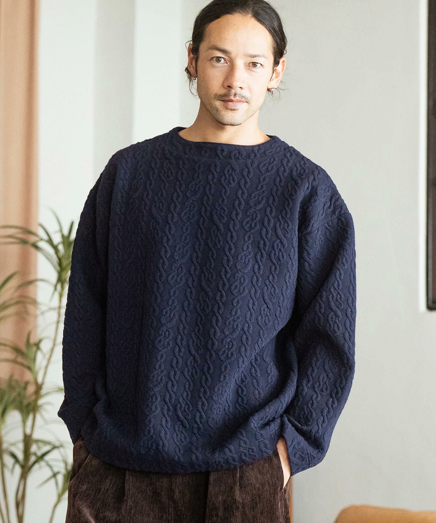 CAMBIO 30%OFF【CAMBIO(カンビオ)】Japanese Fabricケーブルキルティングボトルネック ニット スウェット(CAM-6548)