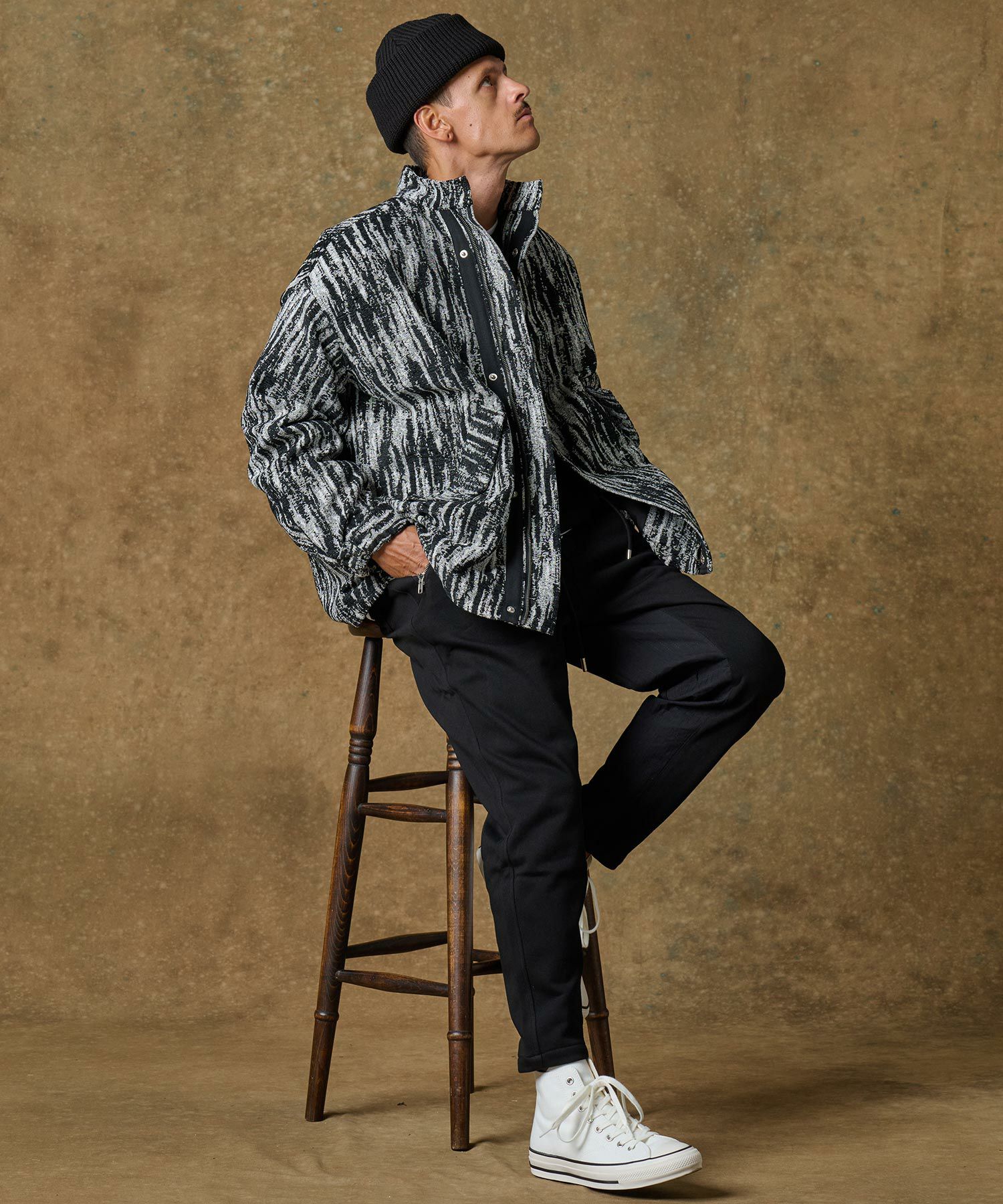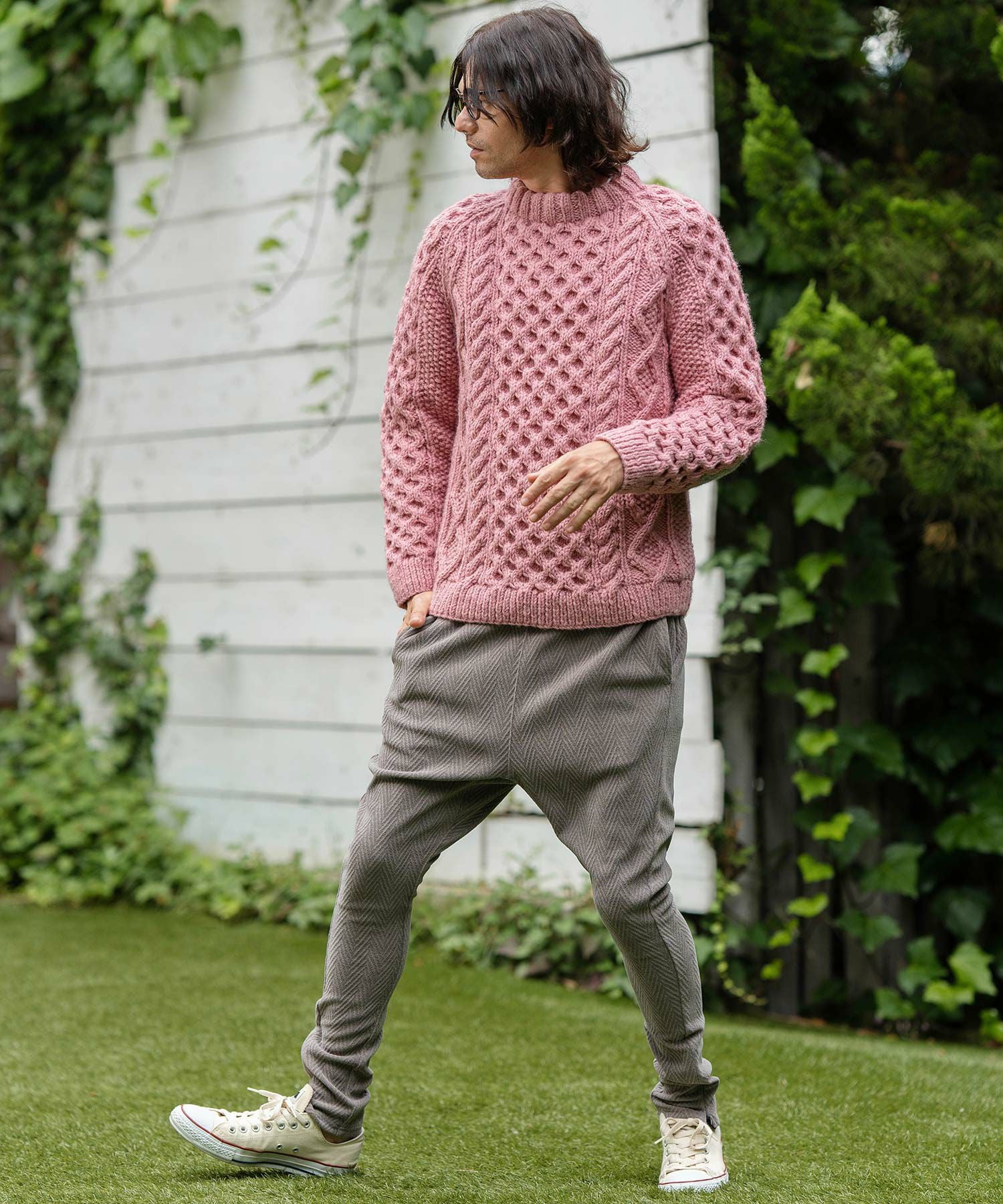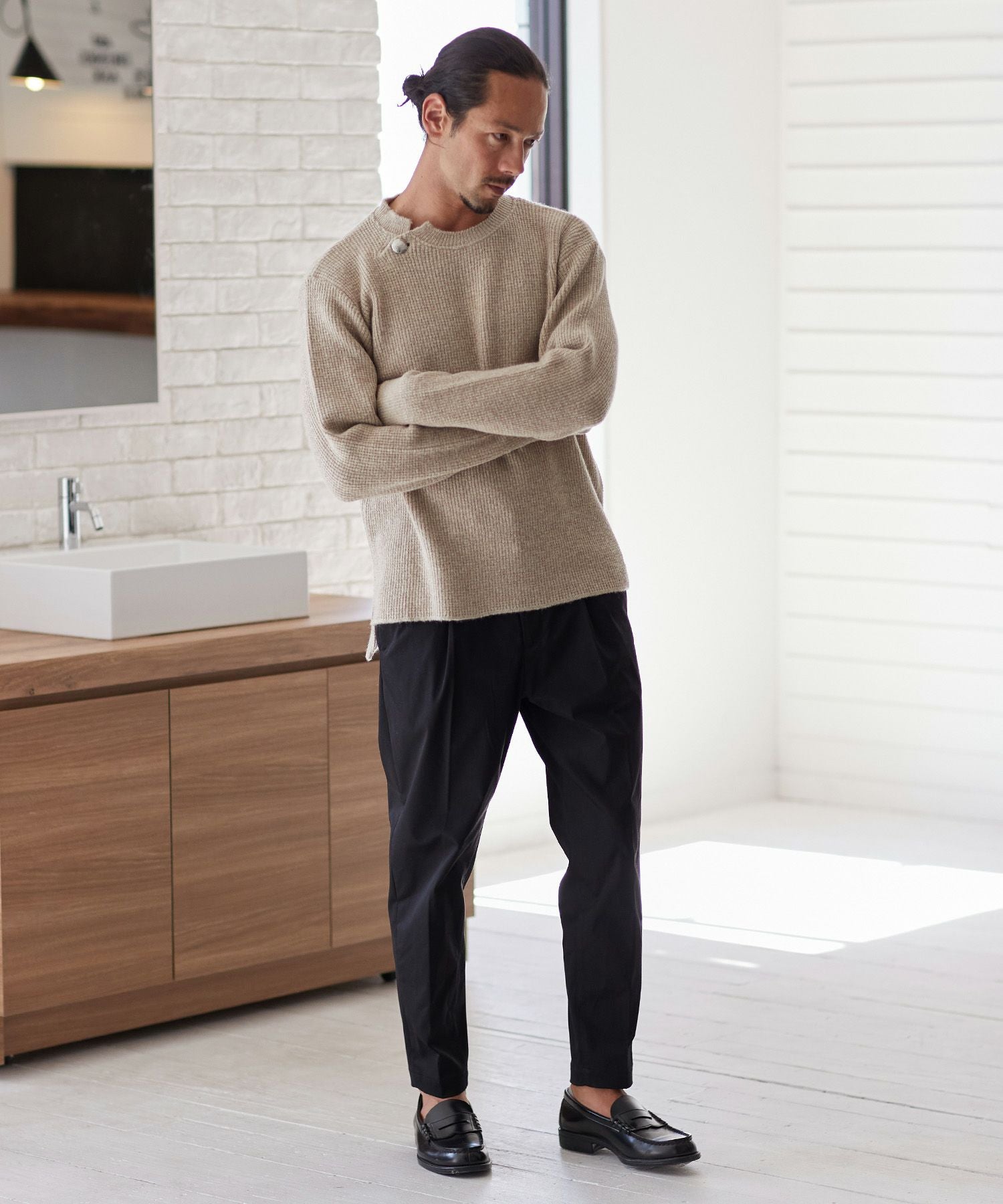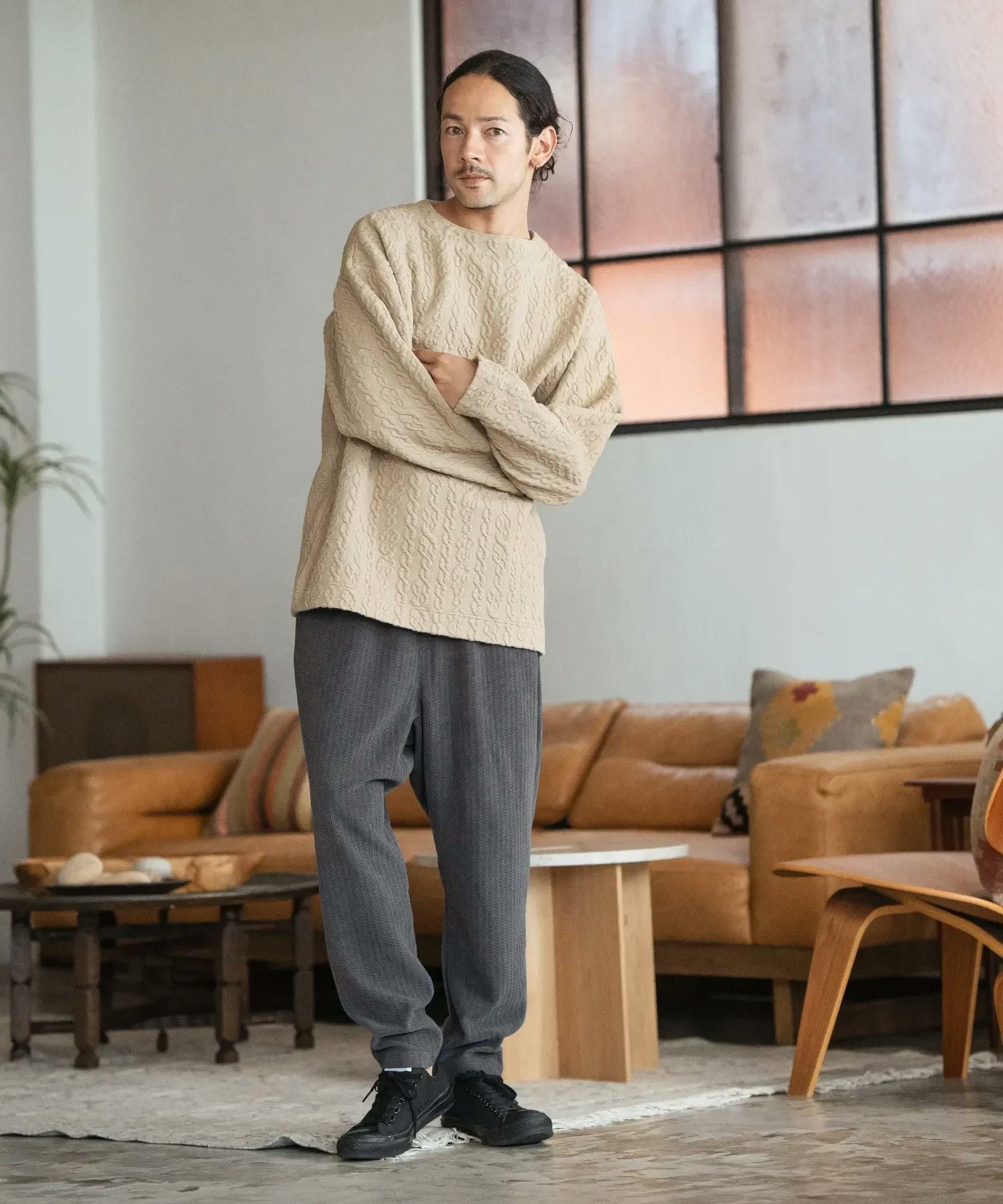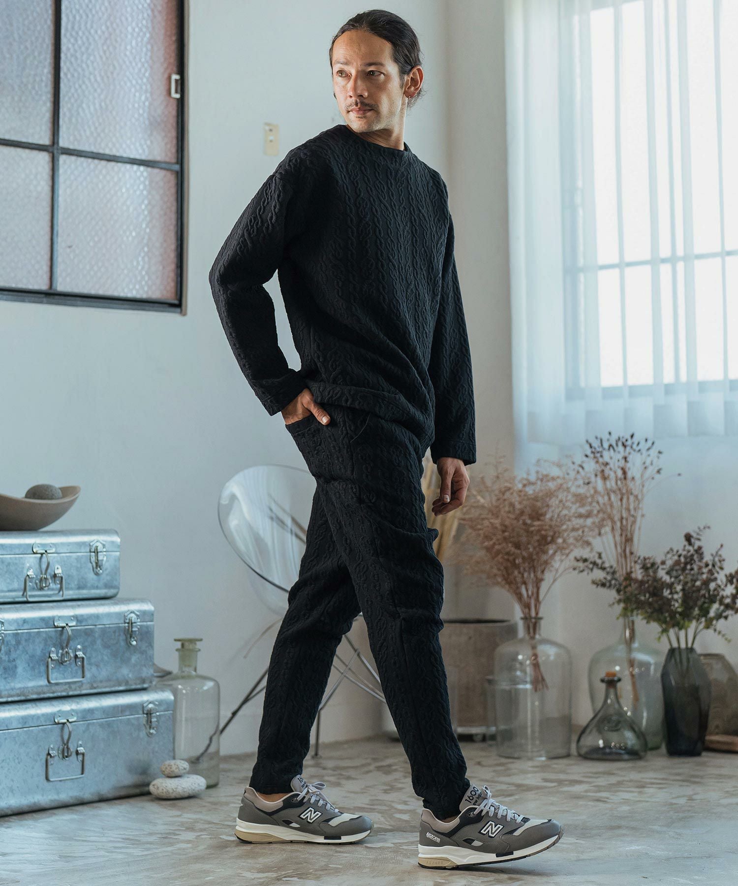 CAMBIO 30%OFF【CAMBIO(カンビオ)】Japanese Fabricケーブルキルティングボトルネック ニット スウェット(CAM-6548)