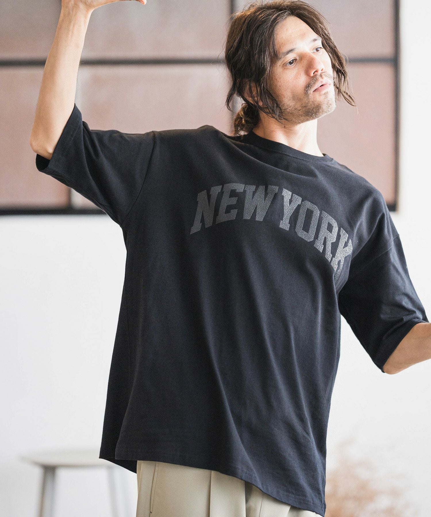 CAMBIO 【CAMBIO(カンビオ)】ビッグシルエットプリントT(カレッジレザー_newyork)(2201003MCB)