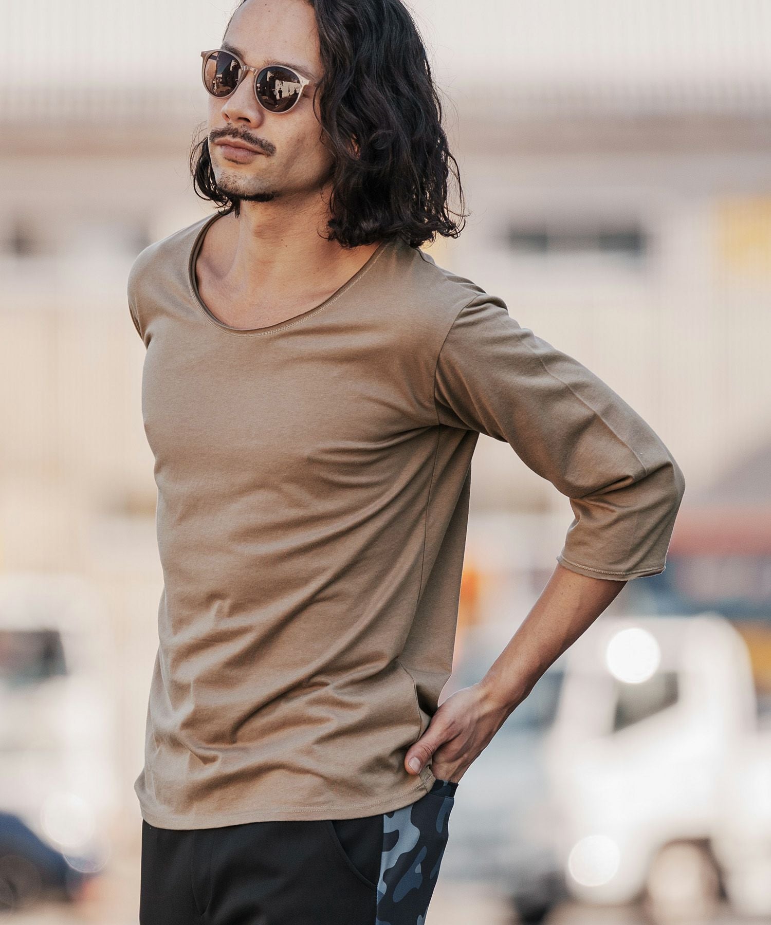 CAMBIO 【CAMBIO(カンビオ)】カットオフUネック7分袖カットソー(CAM-H722407)