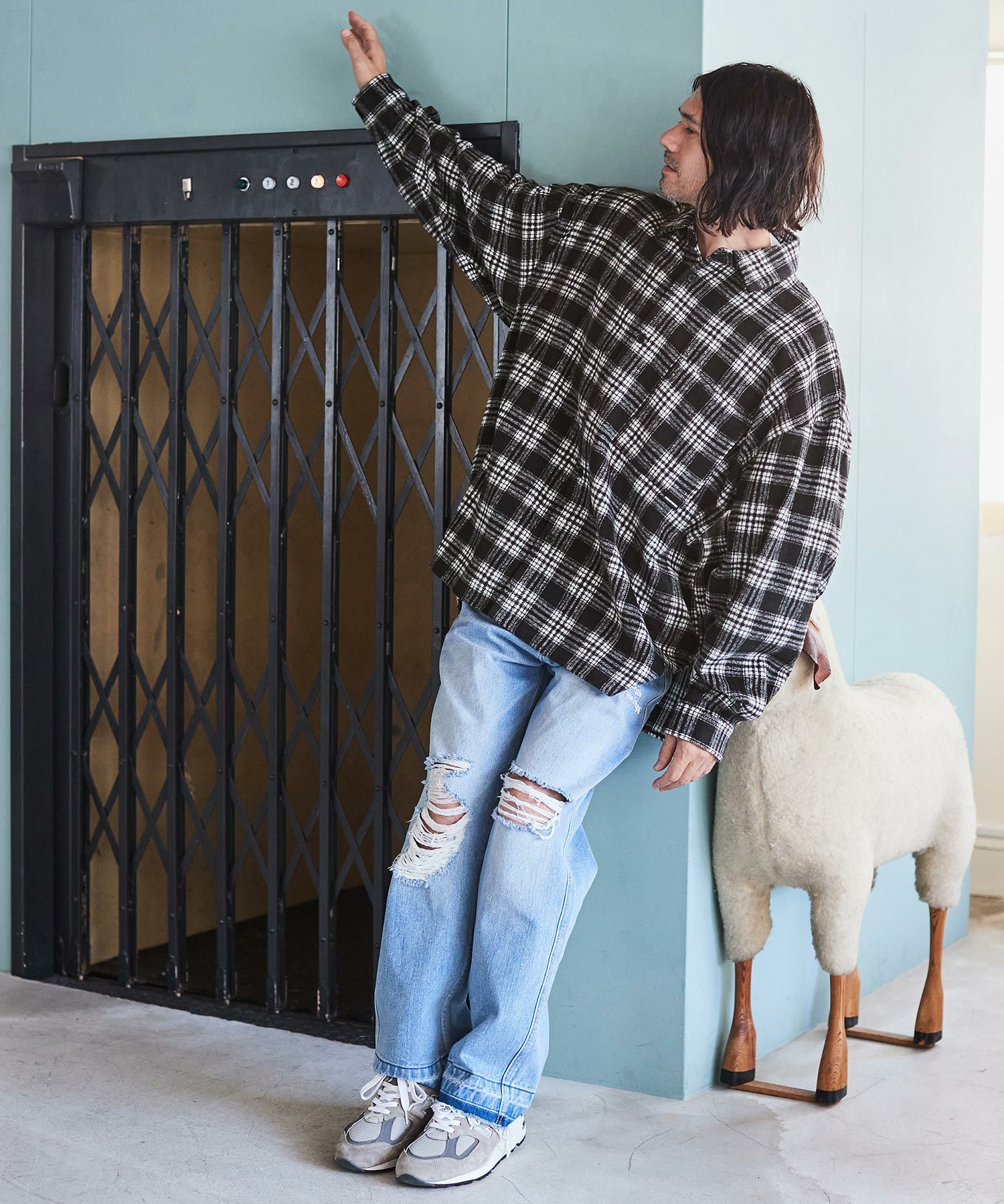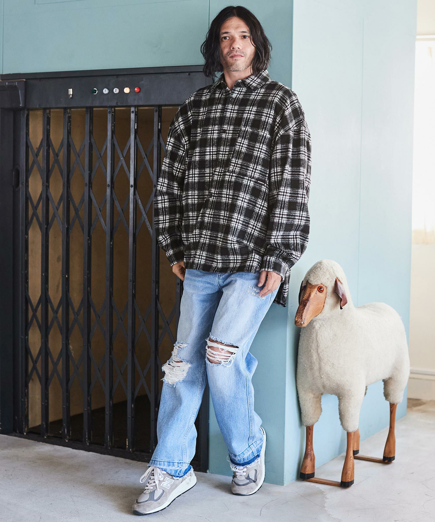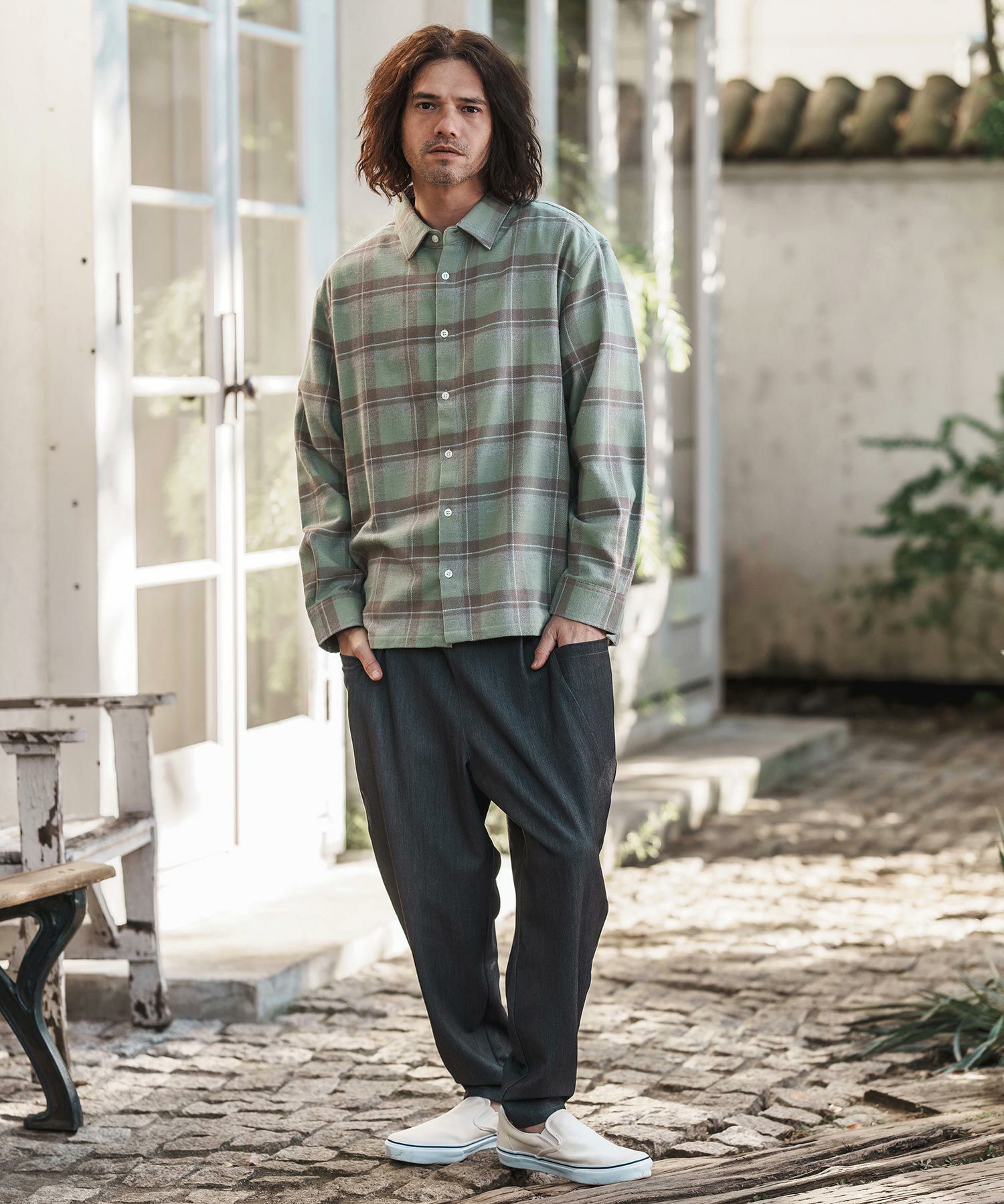 ADAM PATEK 30%OFF【ADAM PATEK(アダムパテック)】brushed check looose shirt シャツ(AP2325013)
