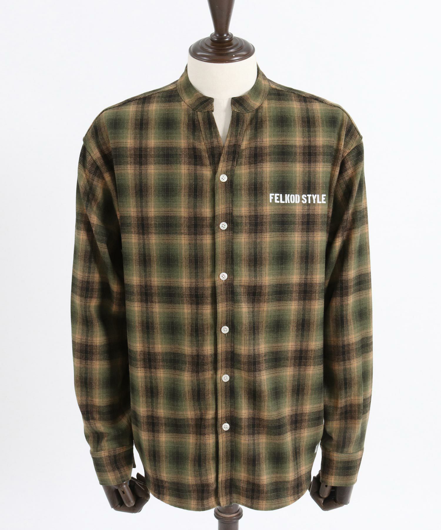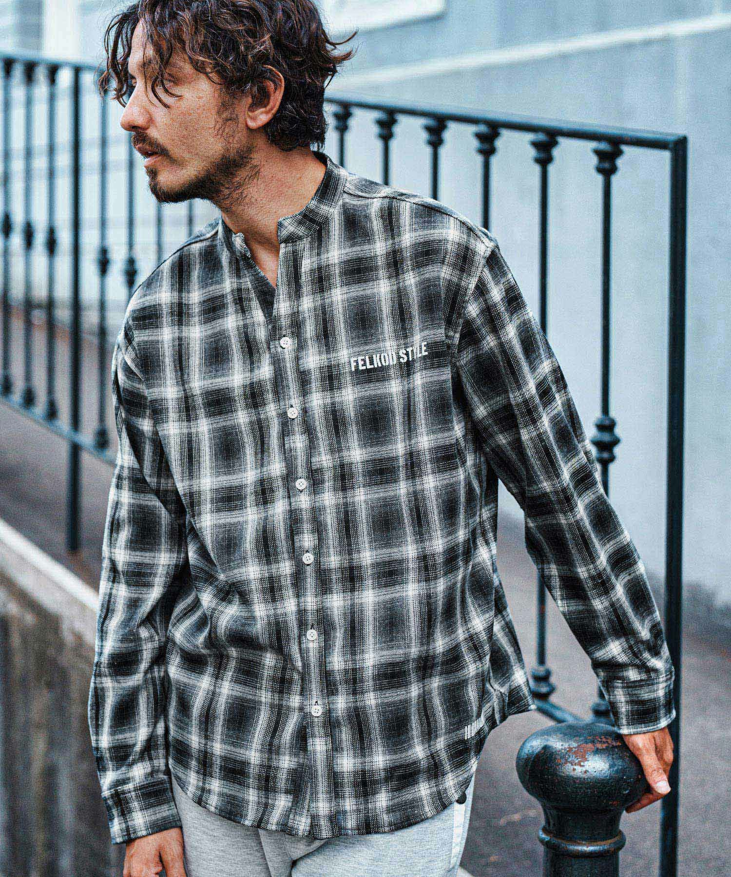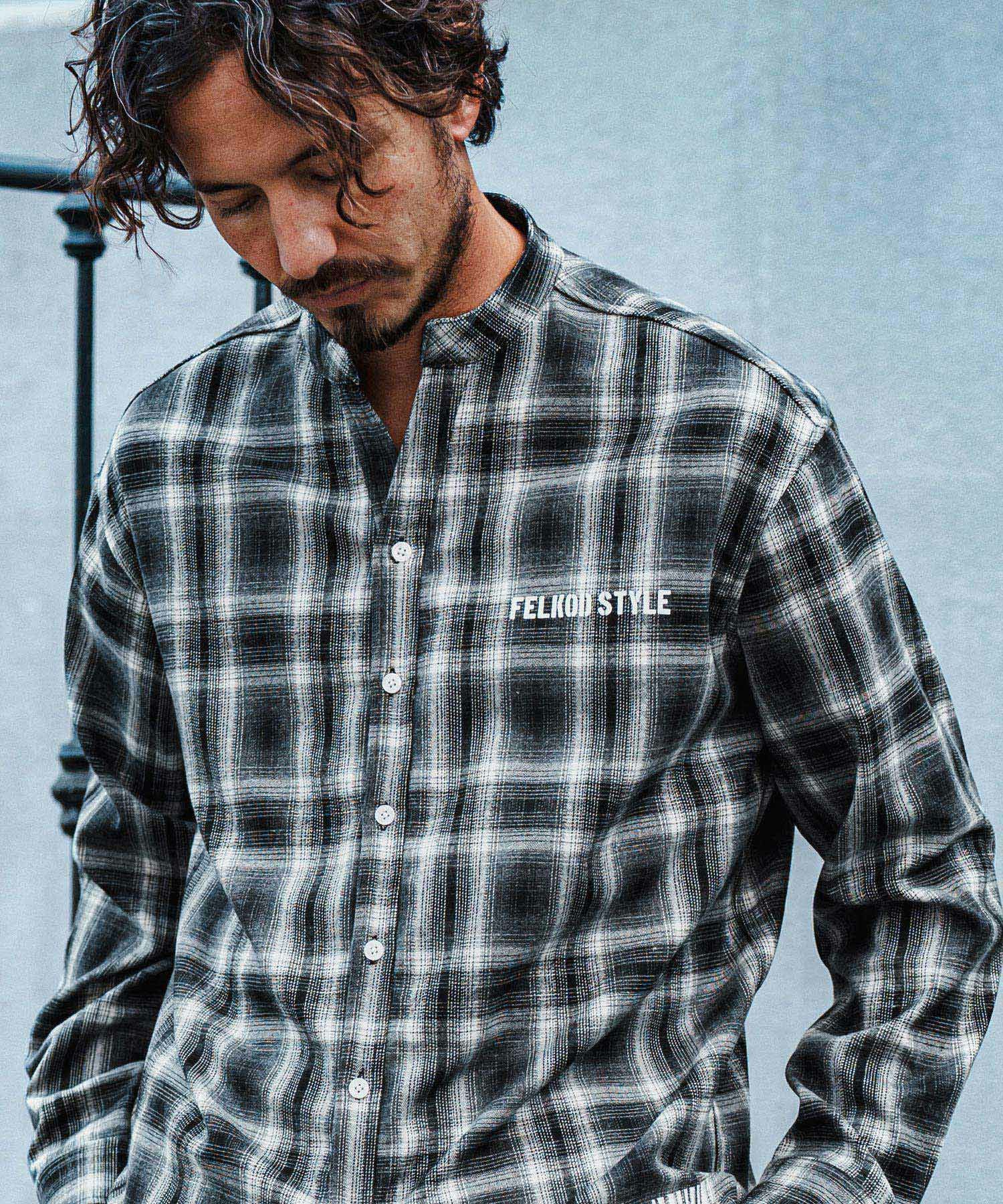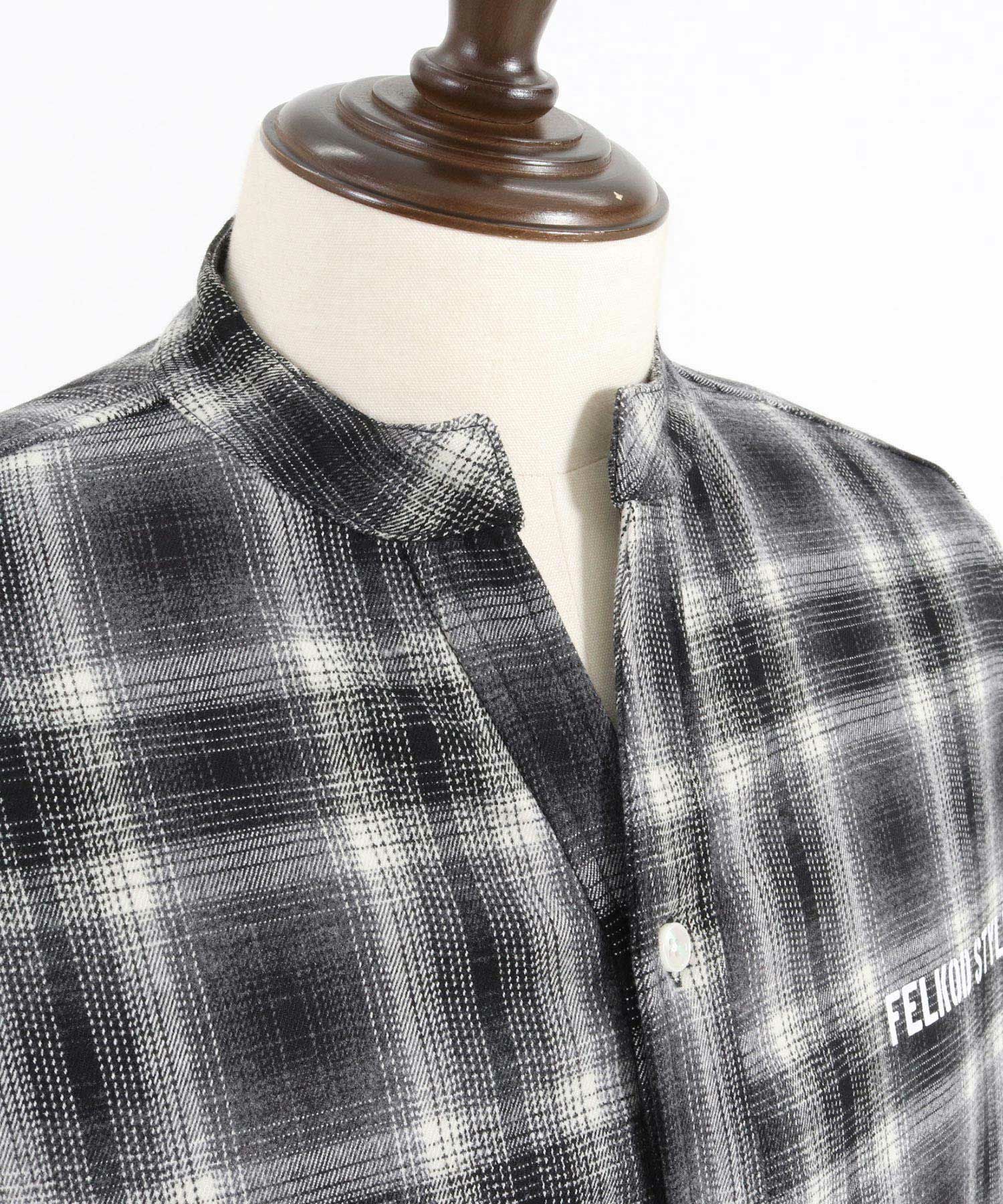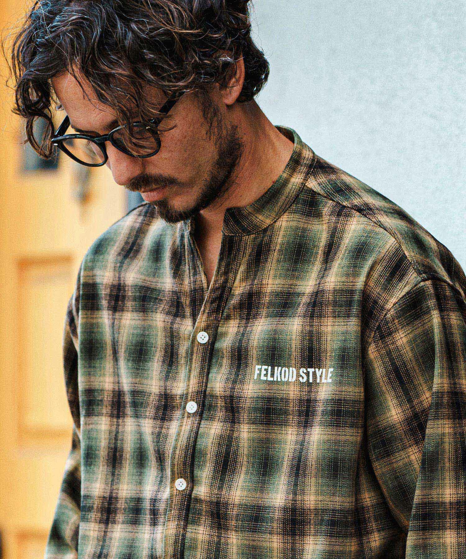 felkod 30%OFF【felkod(フィルコッド)】Flannel Check Band Collar Shirts ネルシャツ(F24F030)