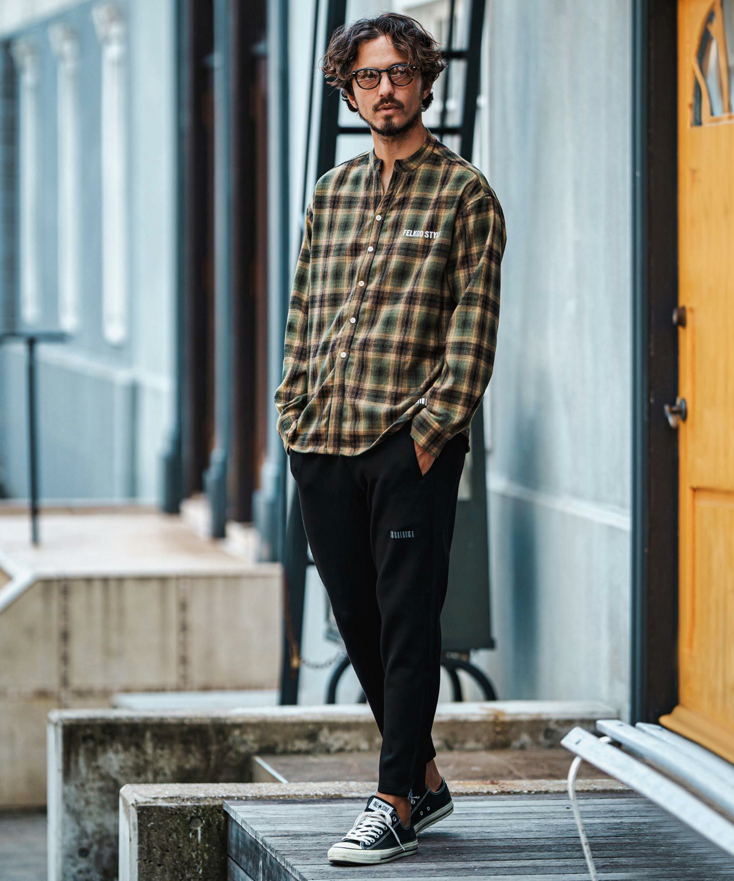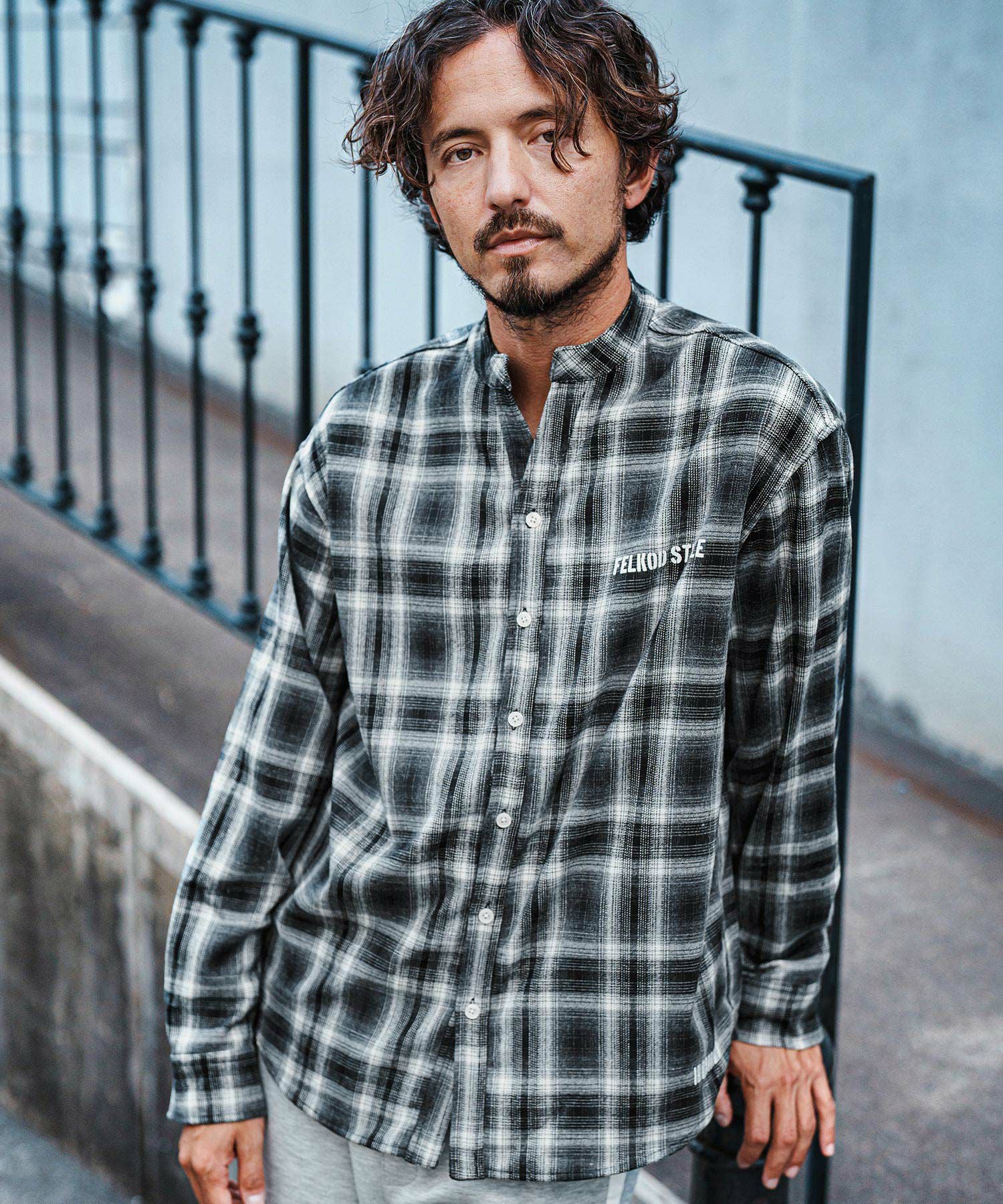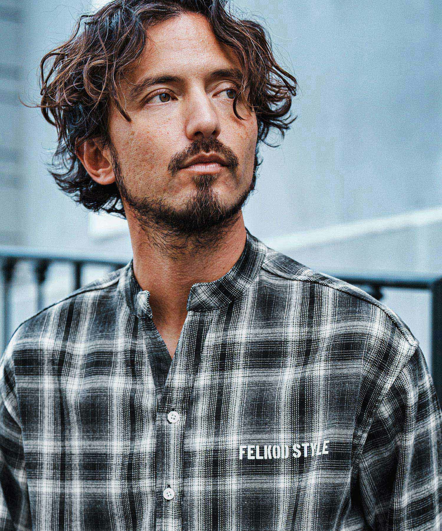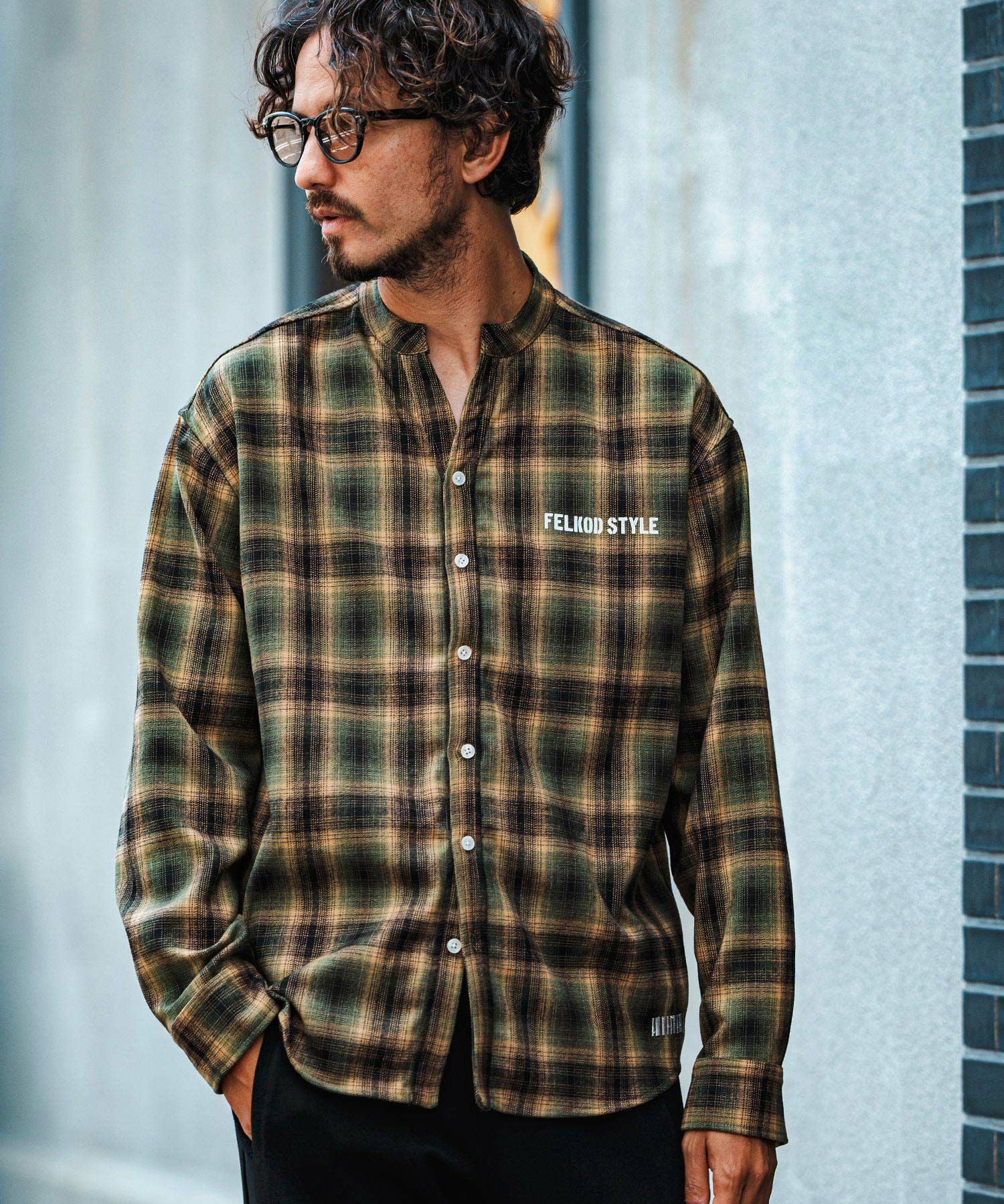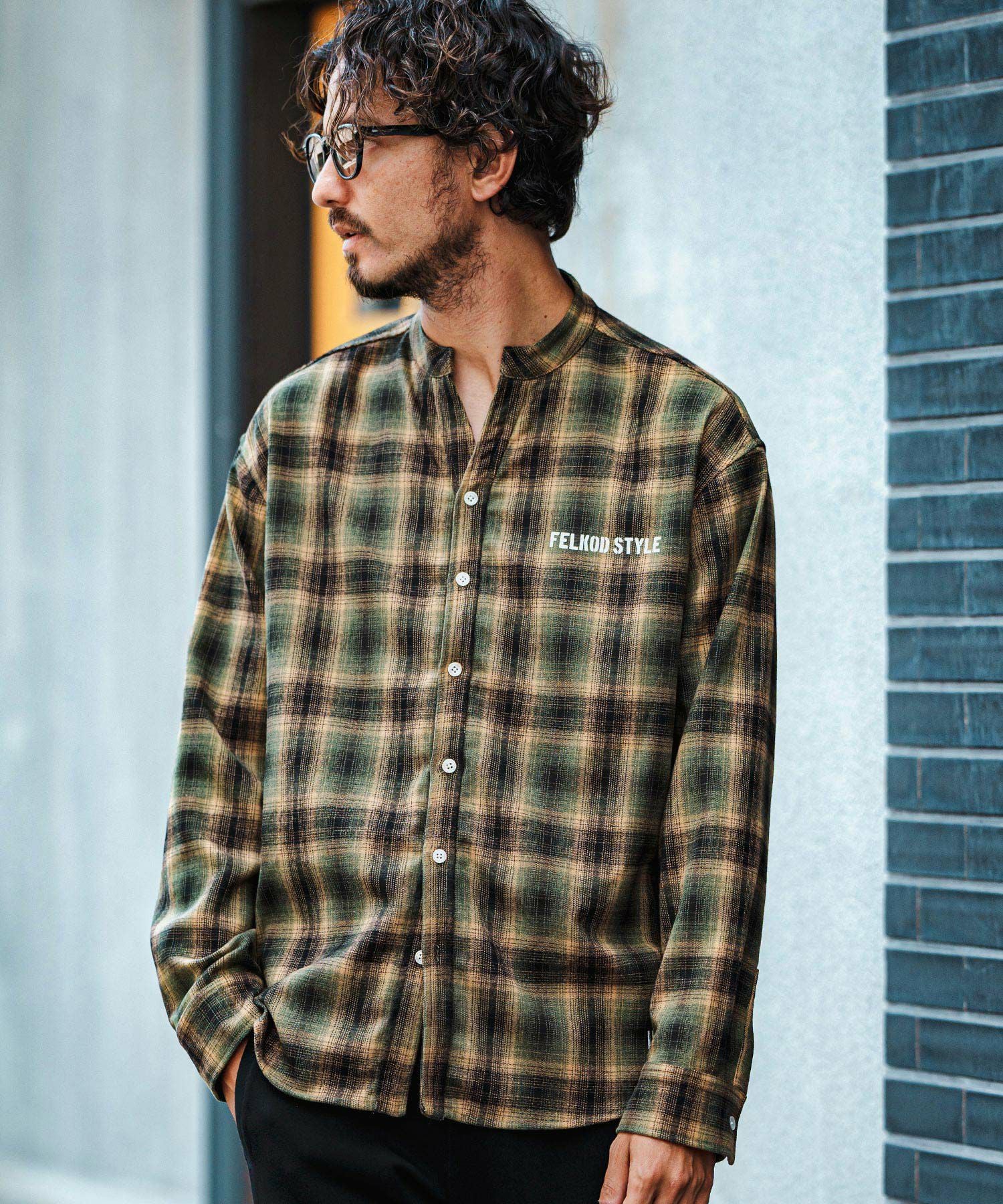 felkod 30%OFF【felkod(フィルコッド)】Flannel Check Band Collar Shirts ネルシャツ(F24F030)