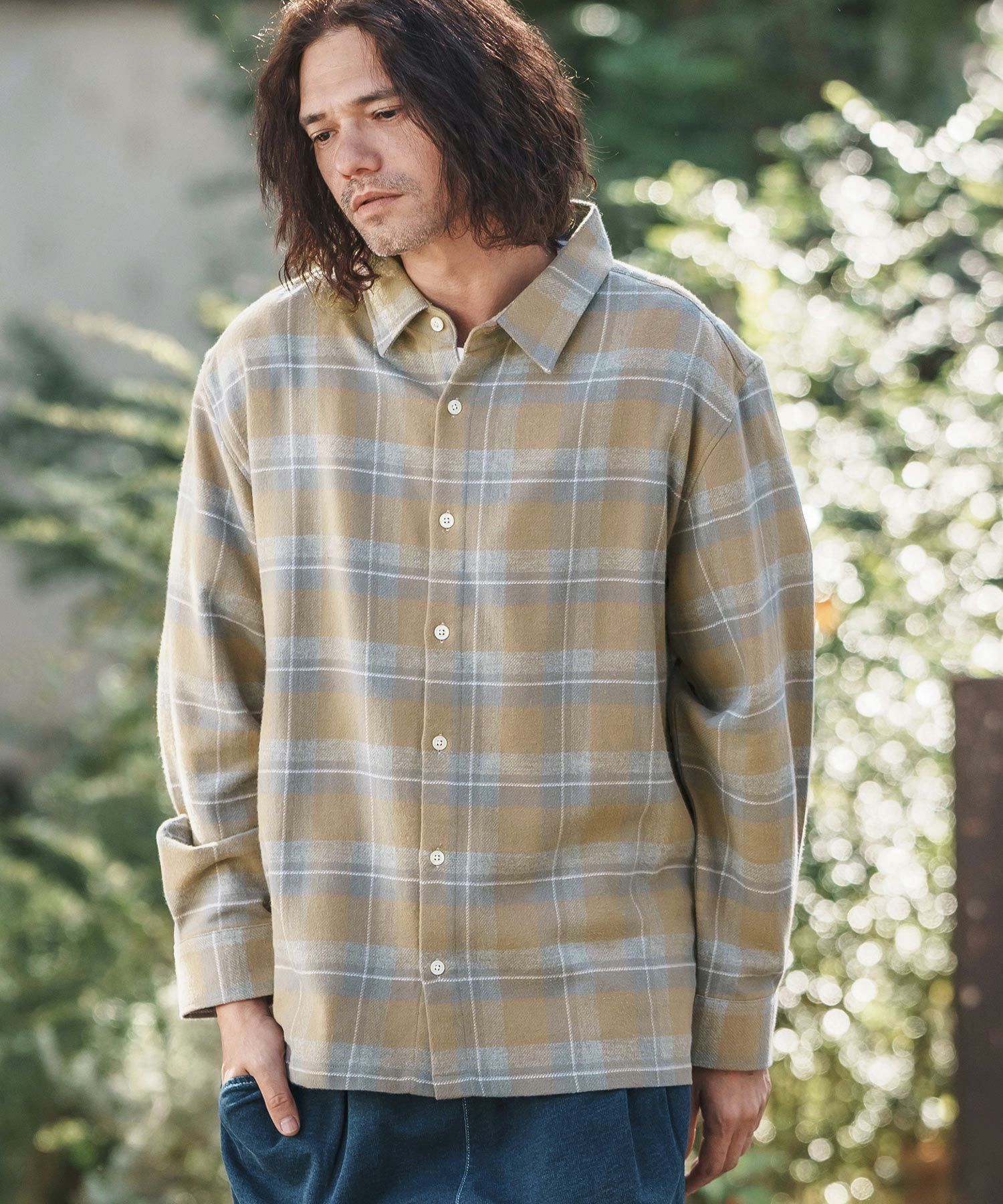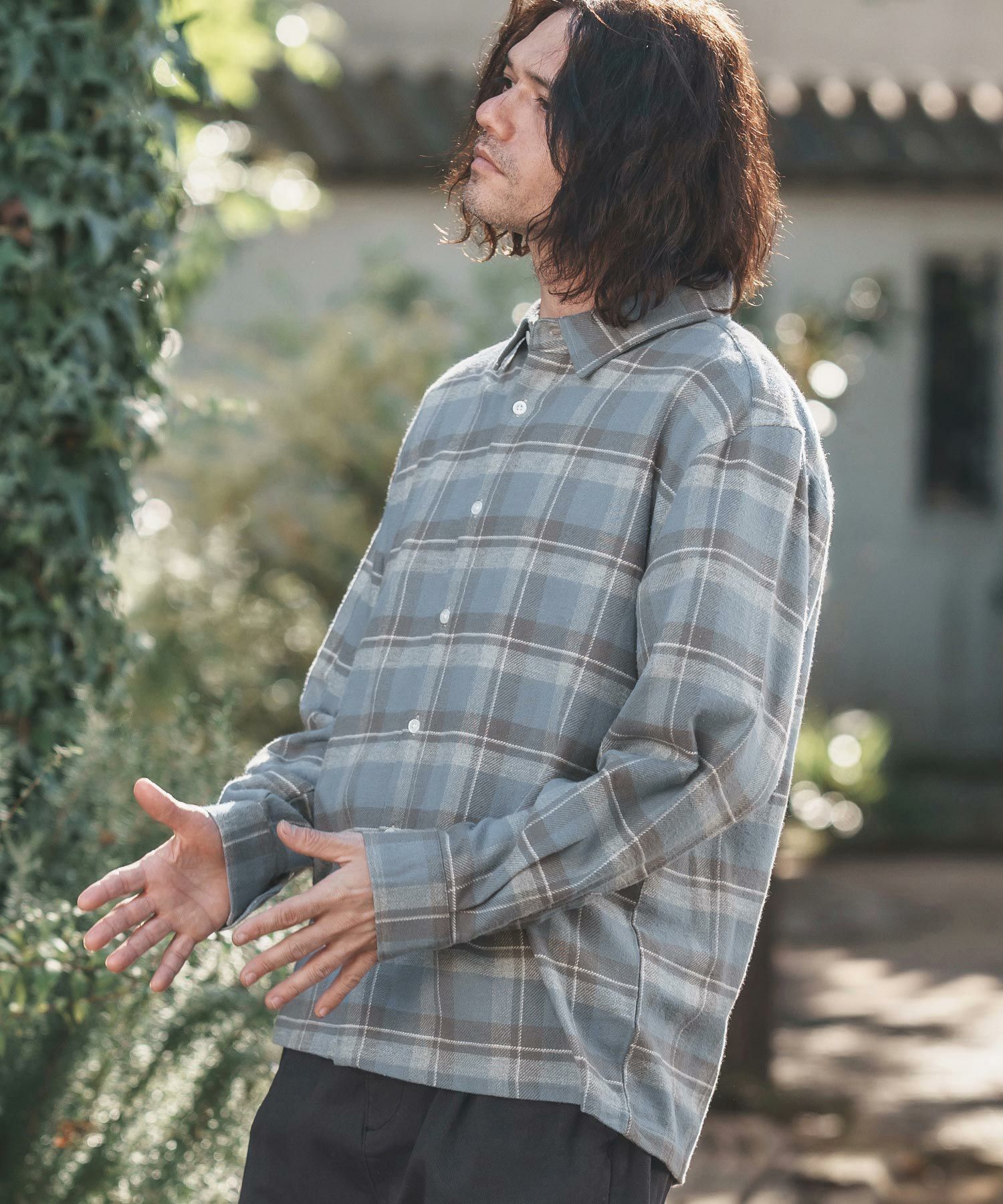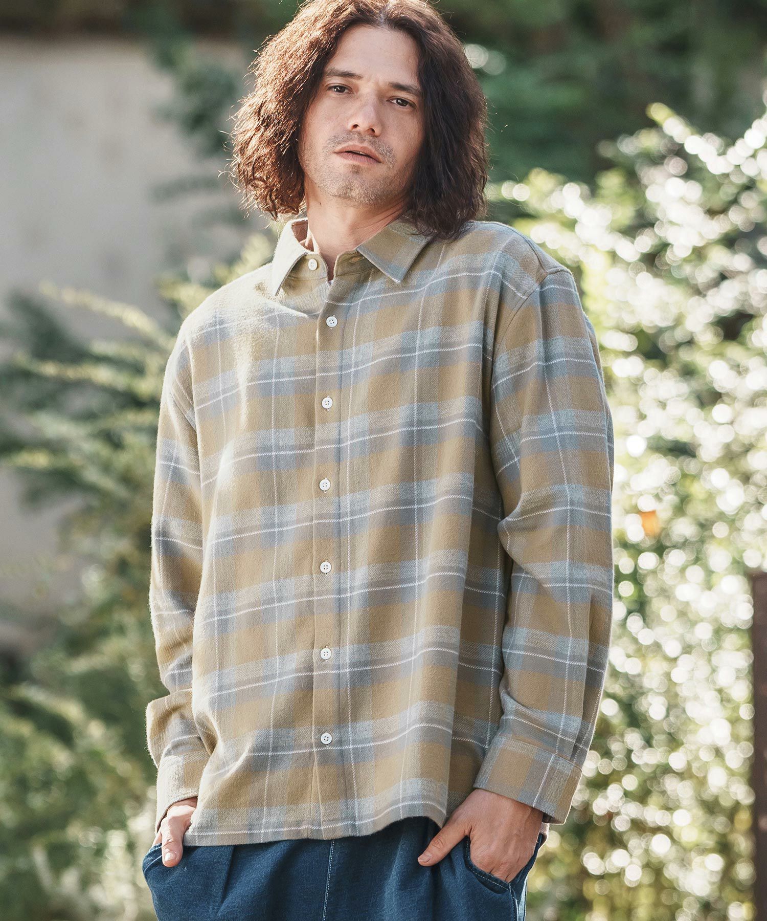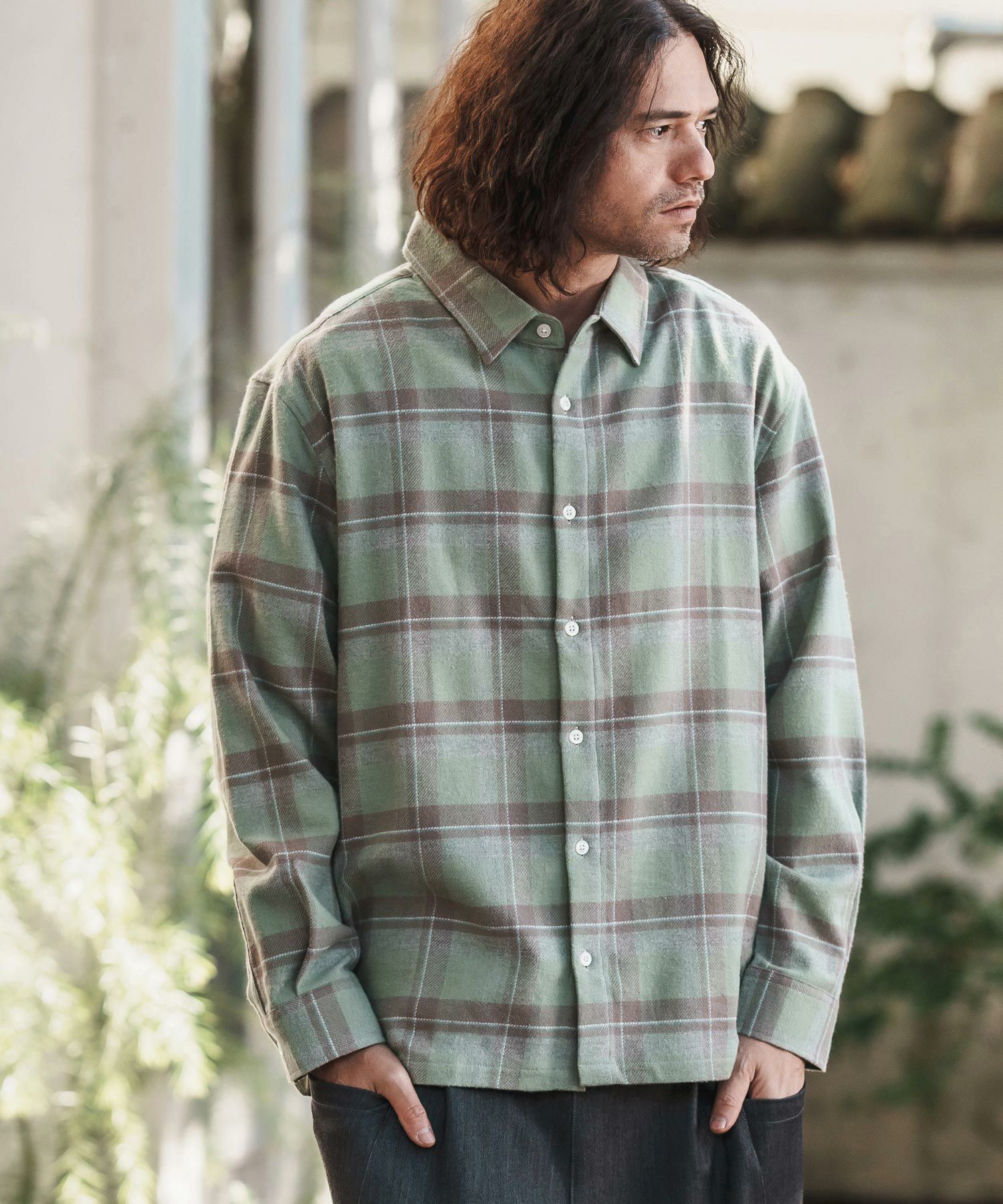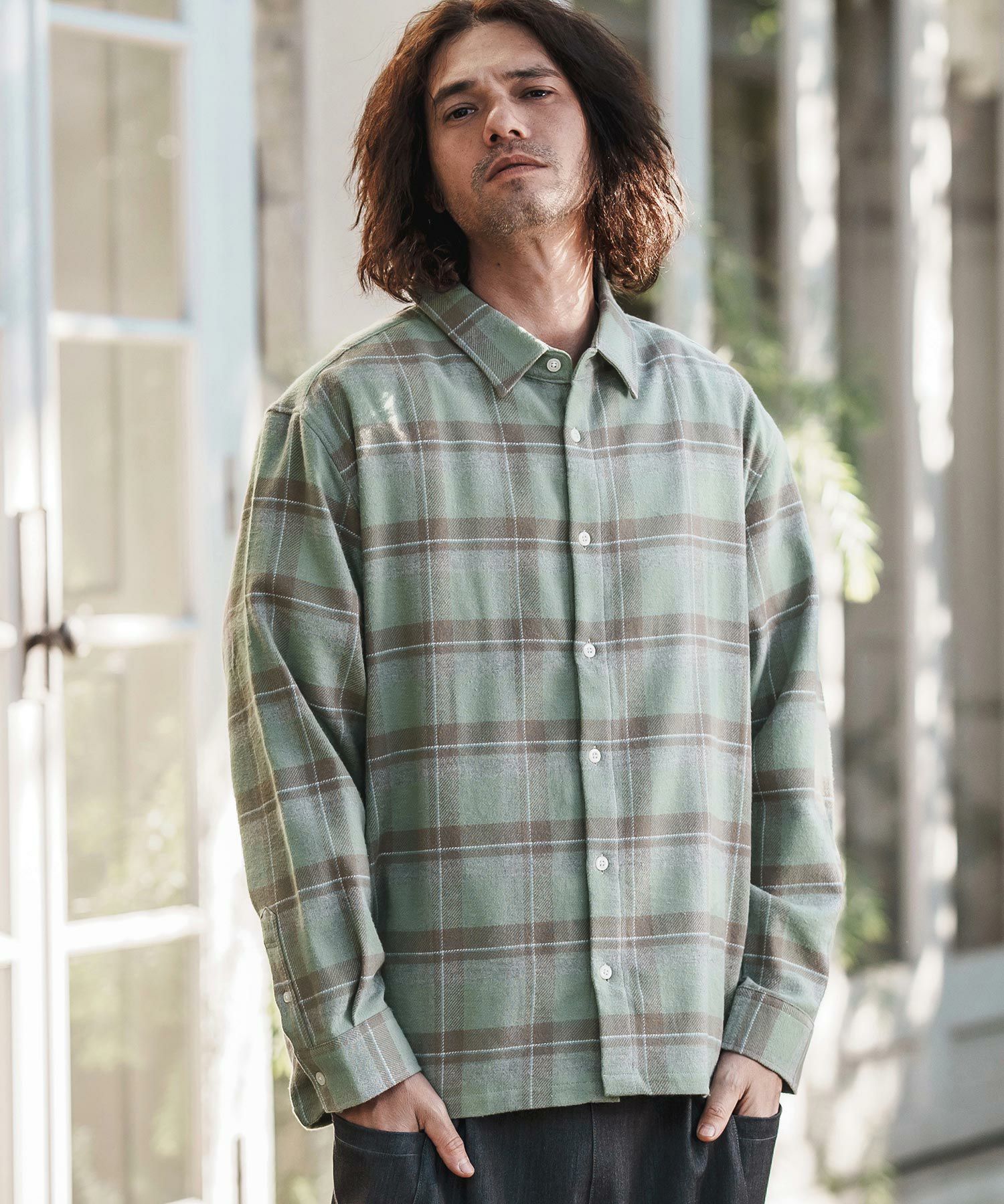 felkod 30%OFF【felkod(フィルコッド)】Flannel Check Band Collar Shirts ネルシャツ(F24F030)