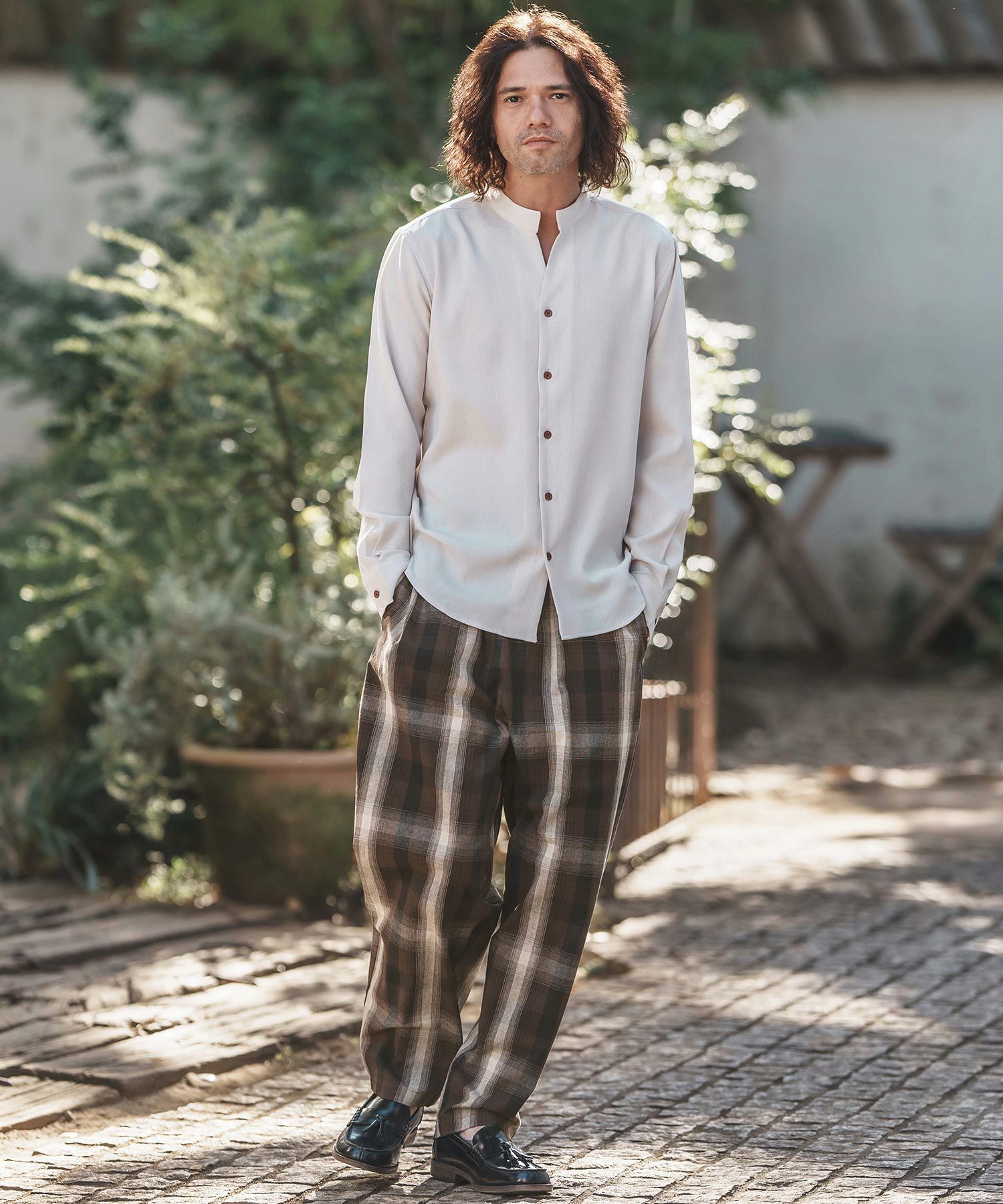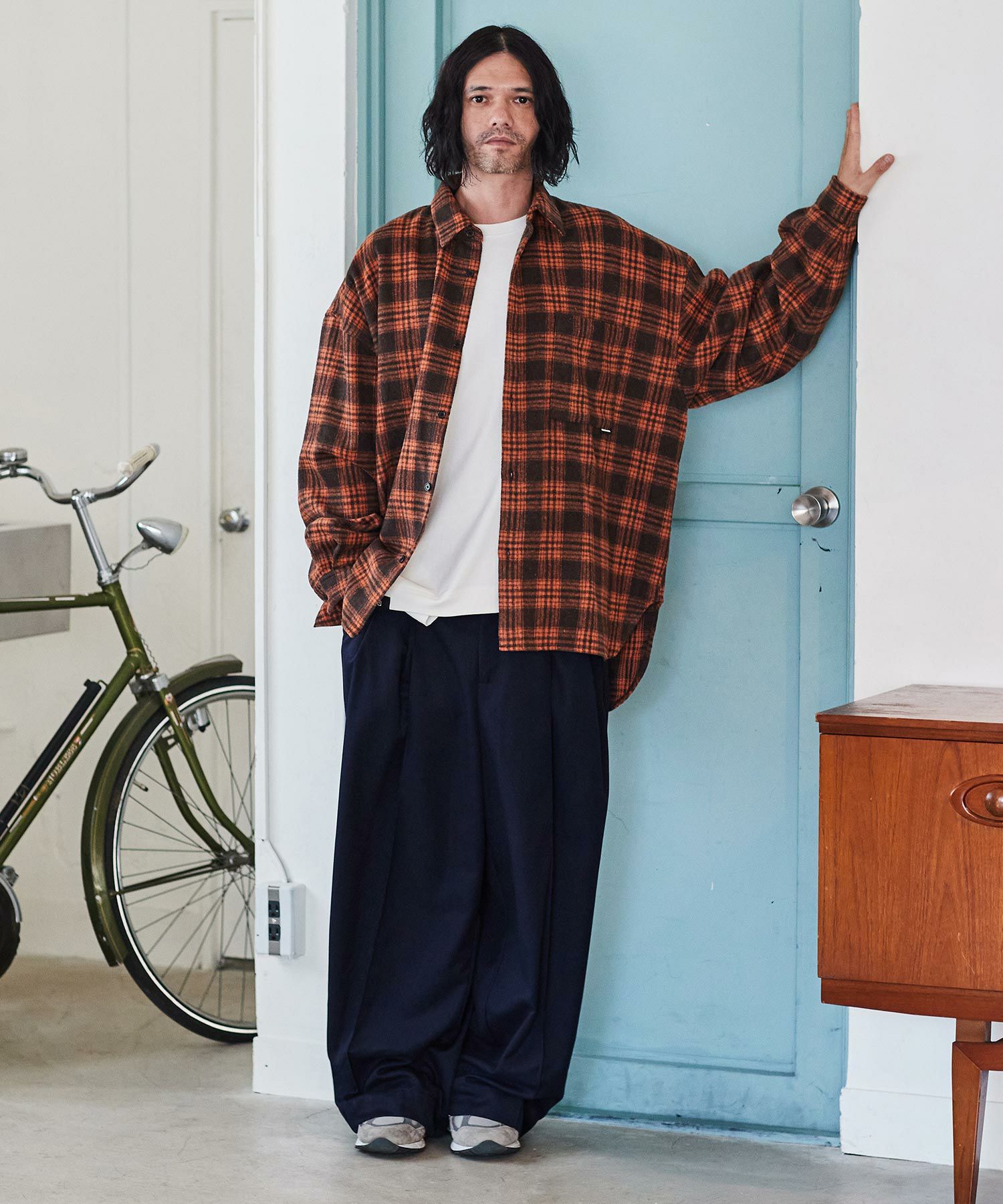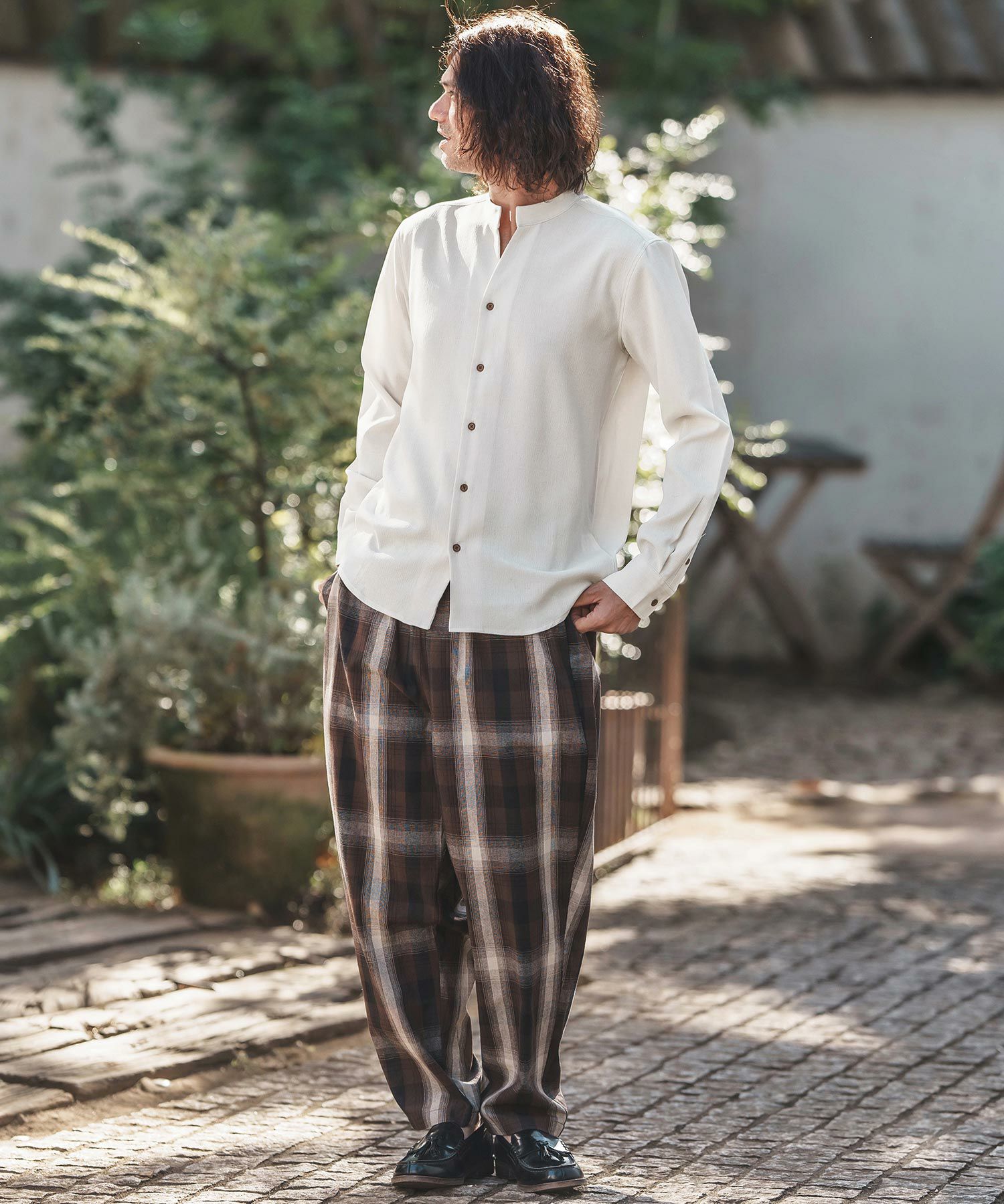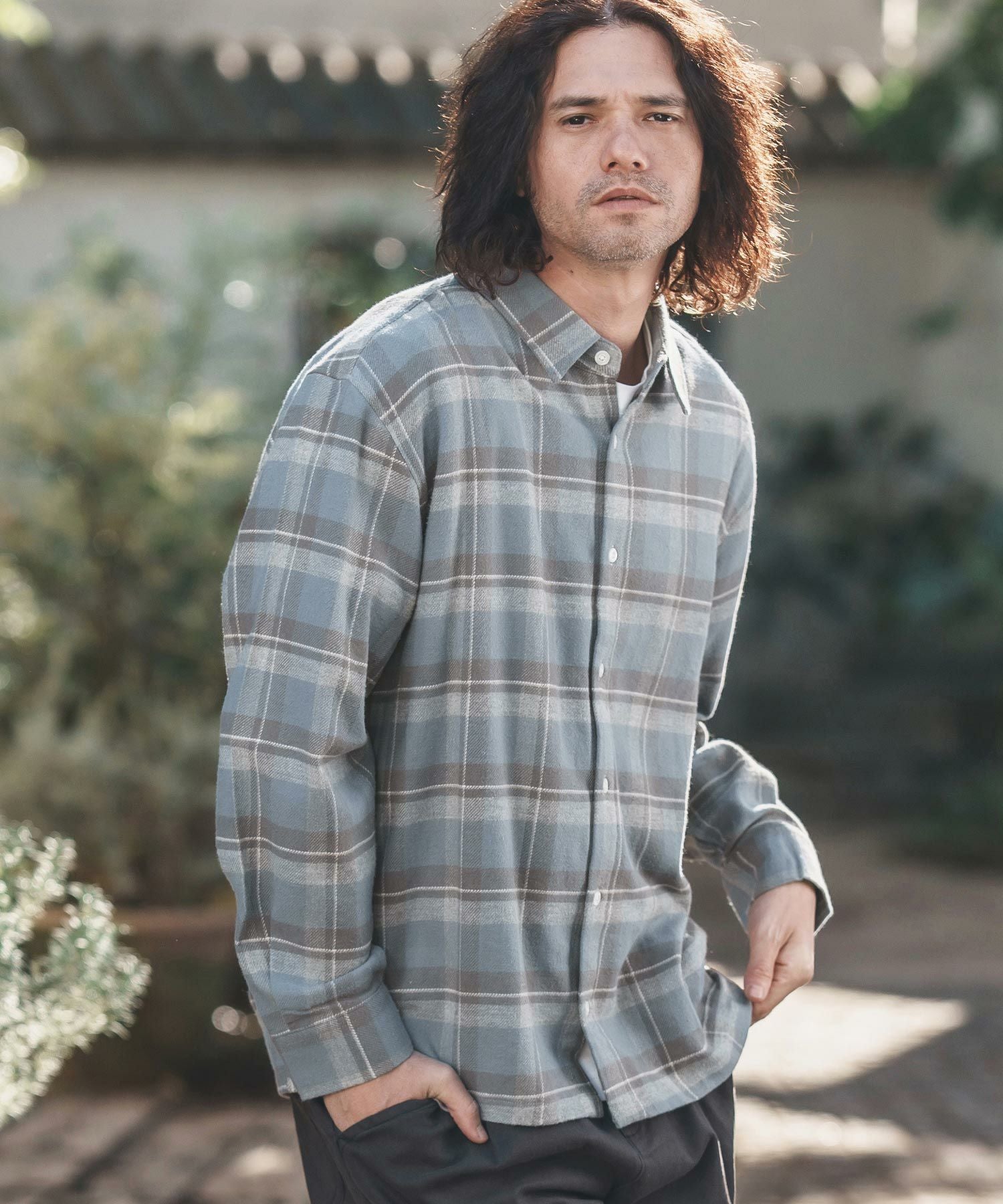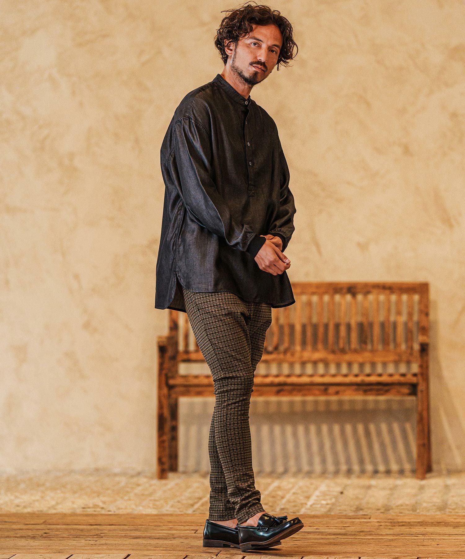 felkod 30%OFF【felkod(フィルコッド)】Flannel Check Band Collar Shirts ネルシャツ(F24F030)