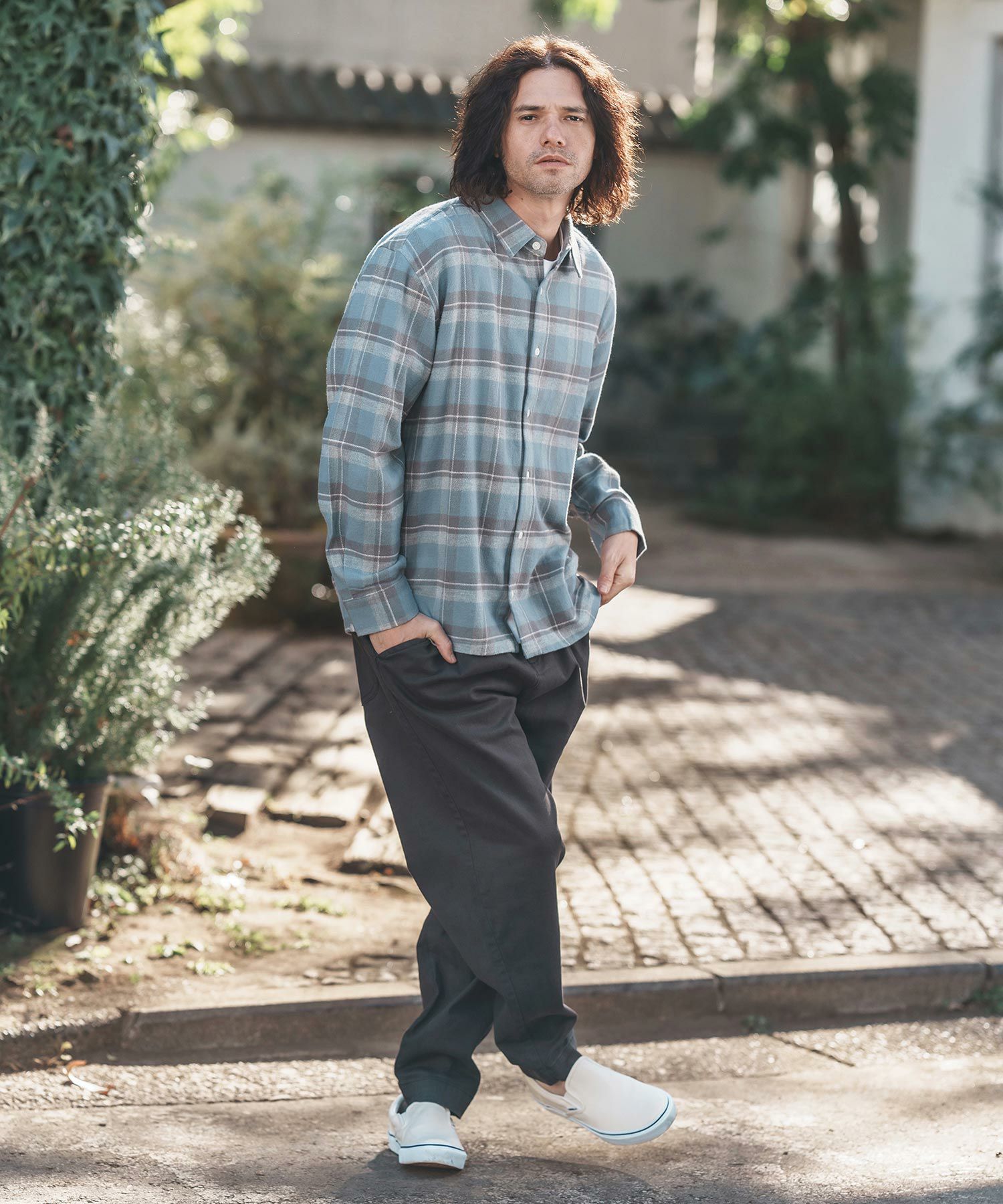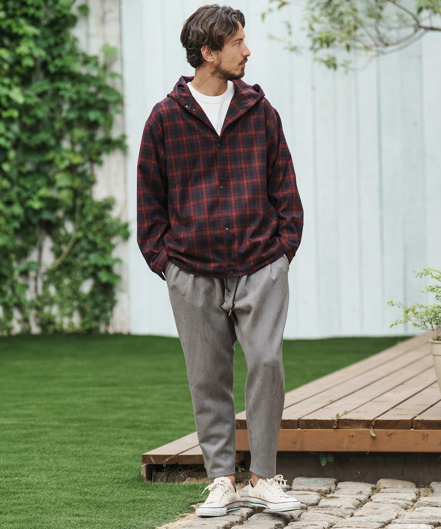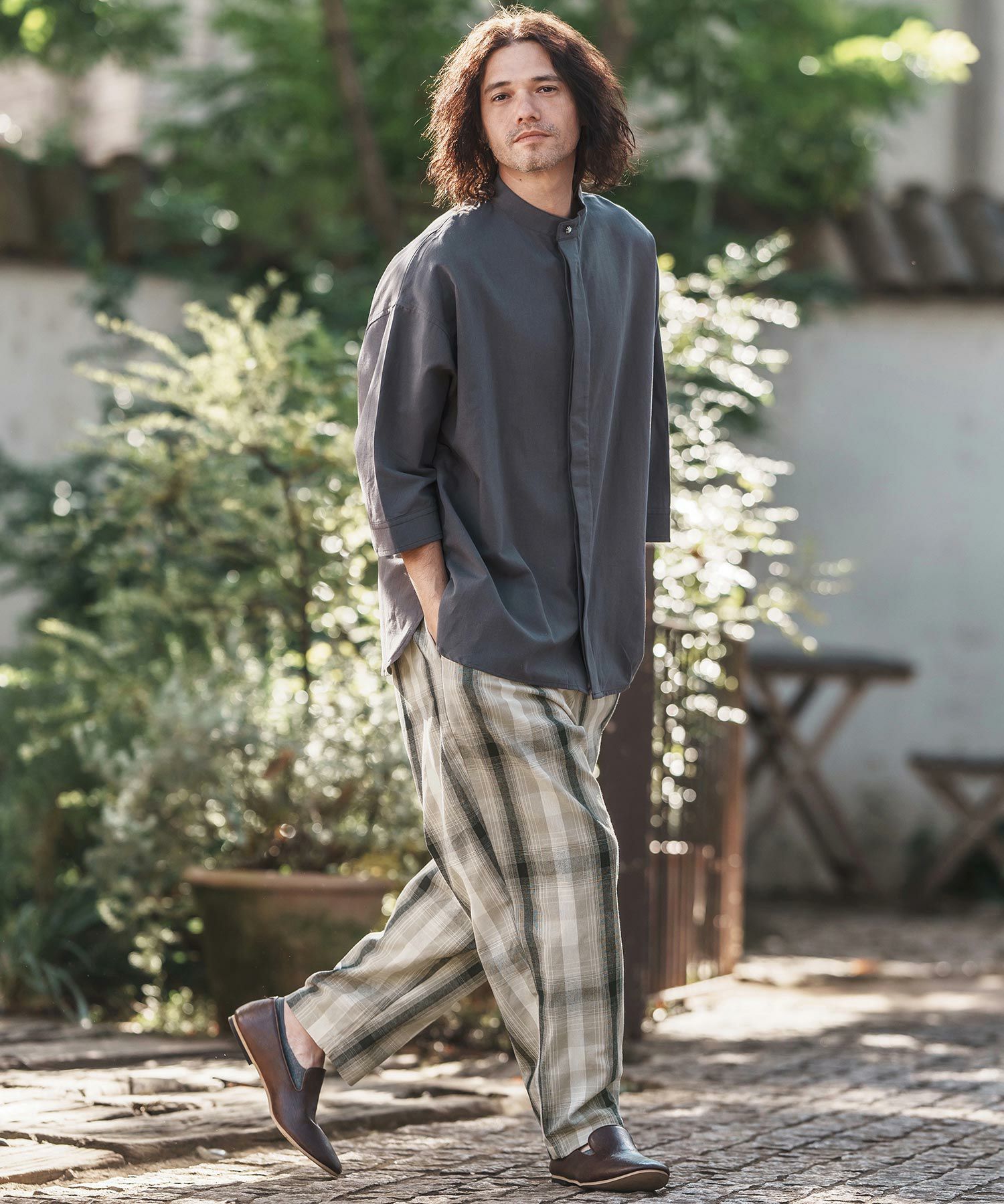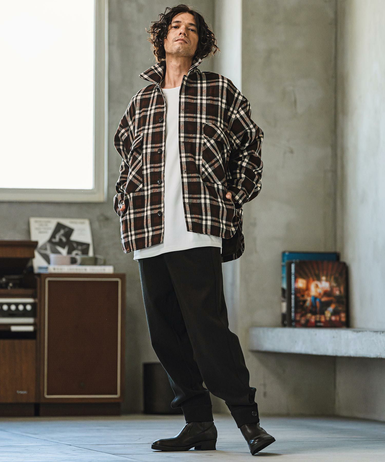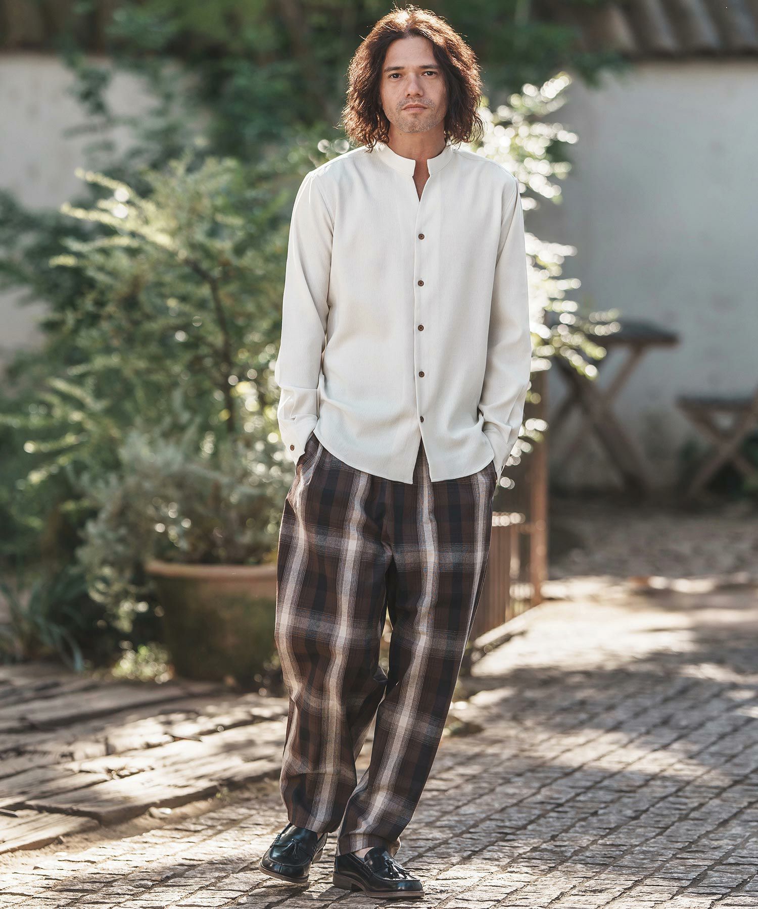 felkod 30%OFF【felkod(フィルコッド)】Flannel Check Band Collar Shirts ネルシャツ(F24F030)