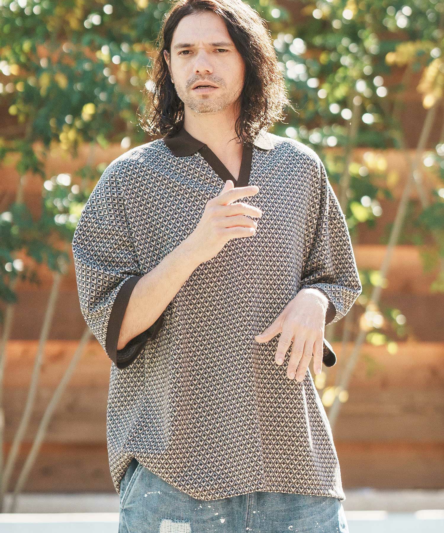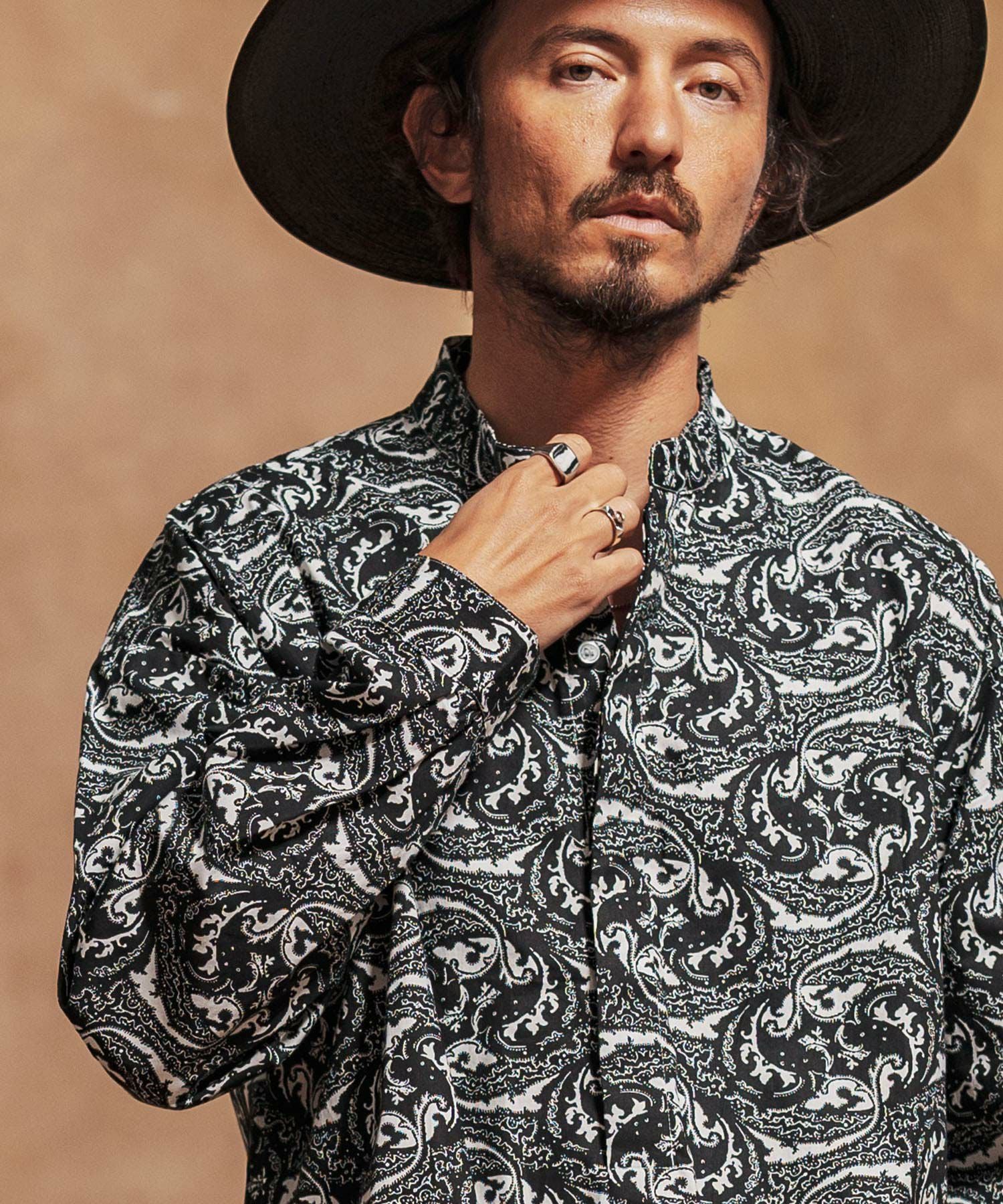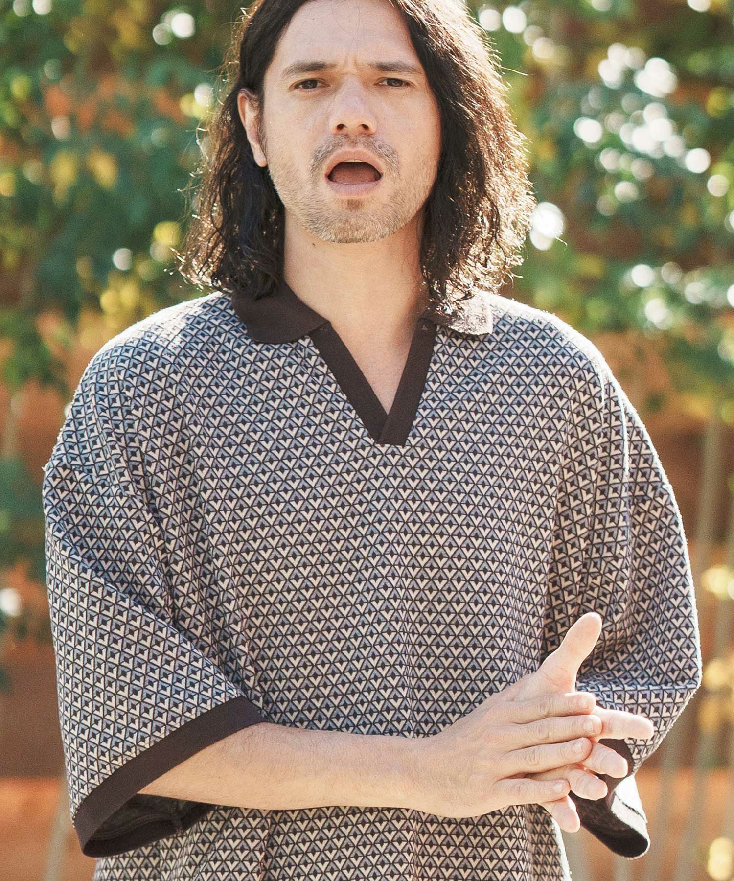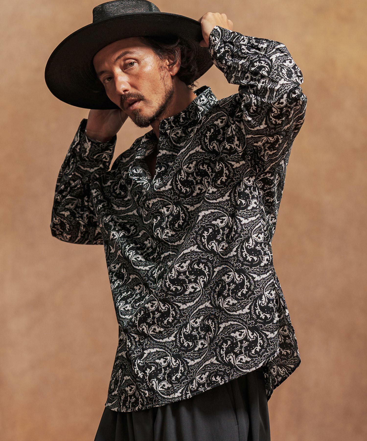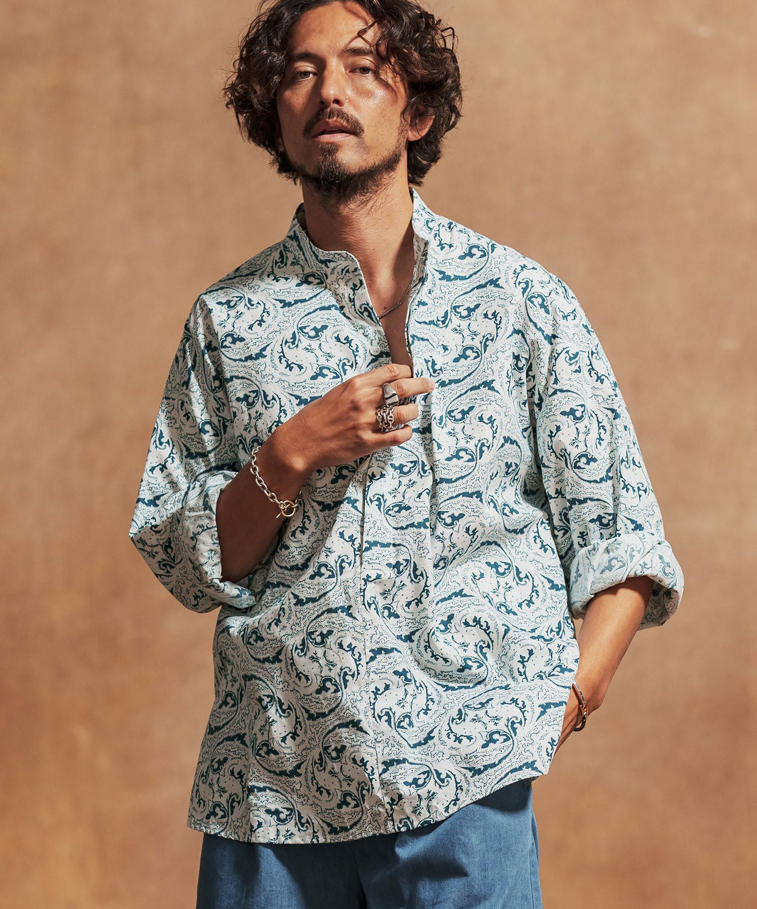 Jih Nunc 【Jih Nunc(ジーヌンク)】総柄バンドカラープルオーバーシャツ(JIH-R1092)