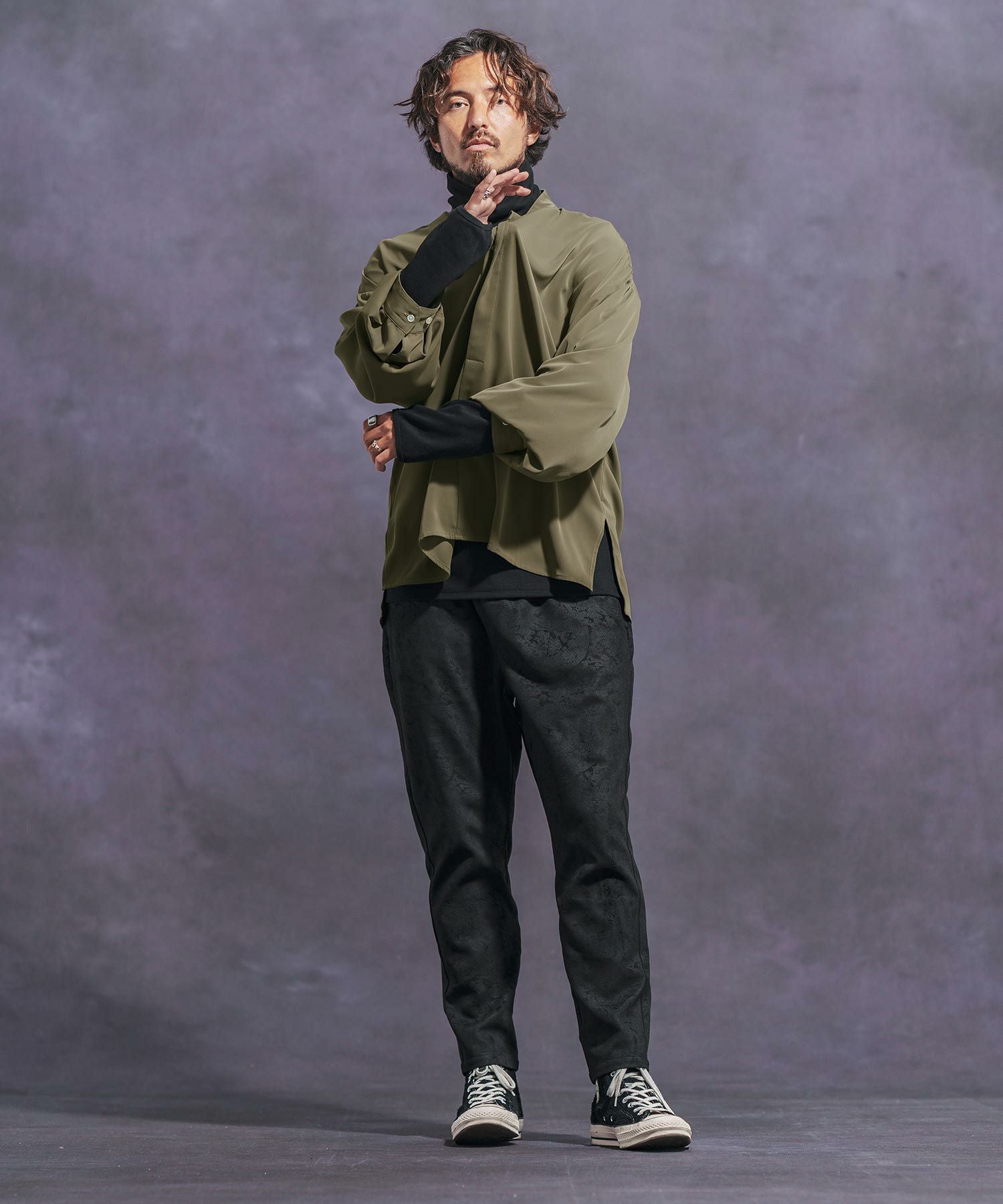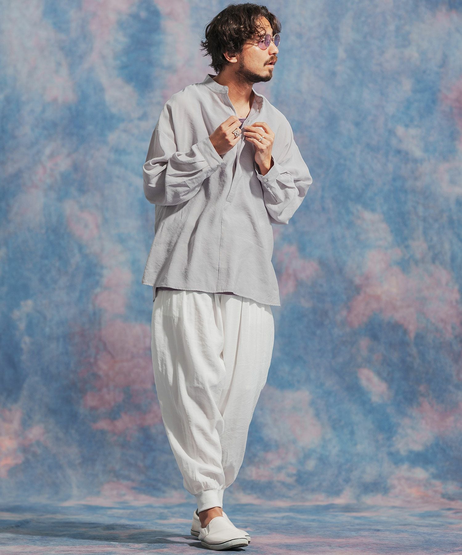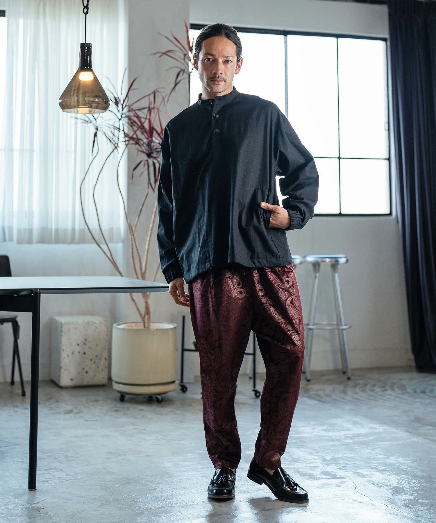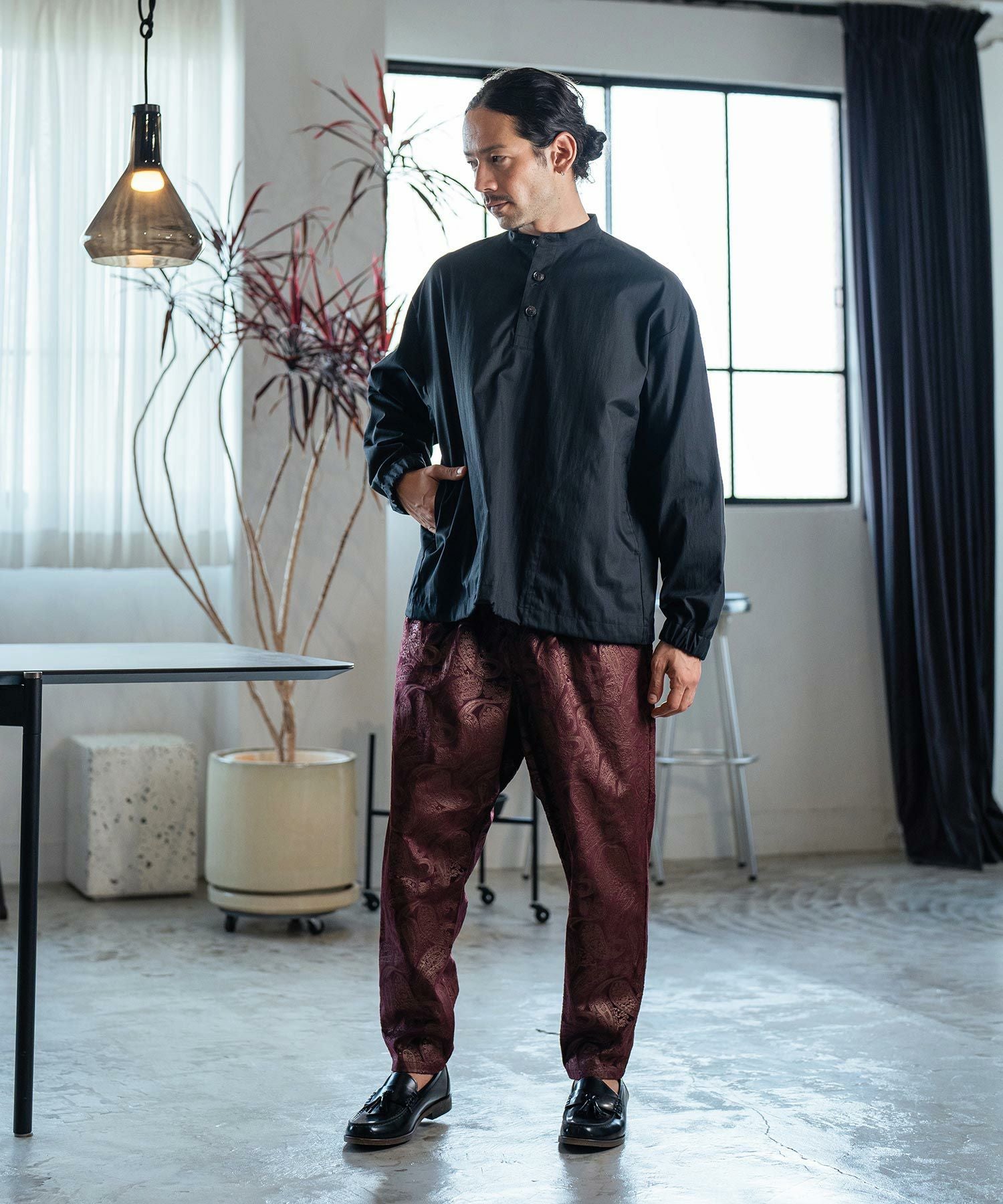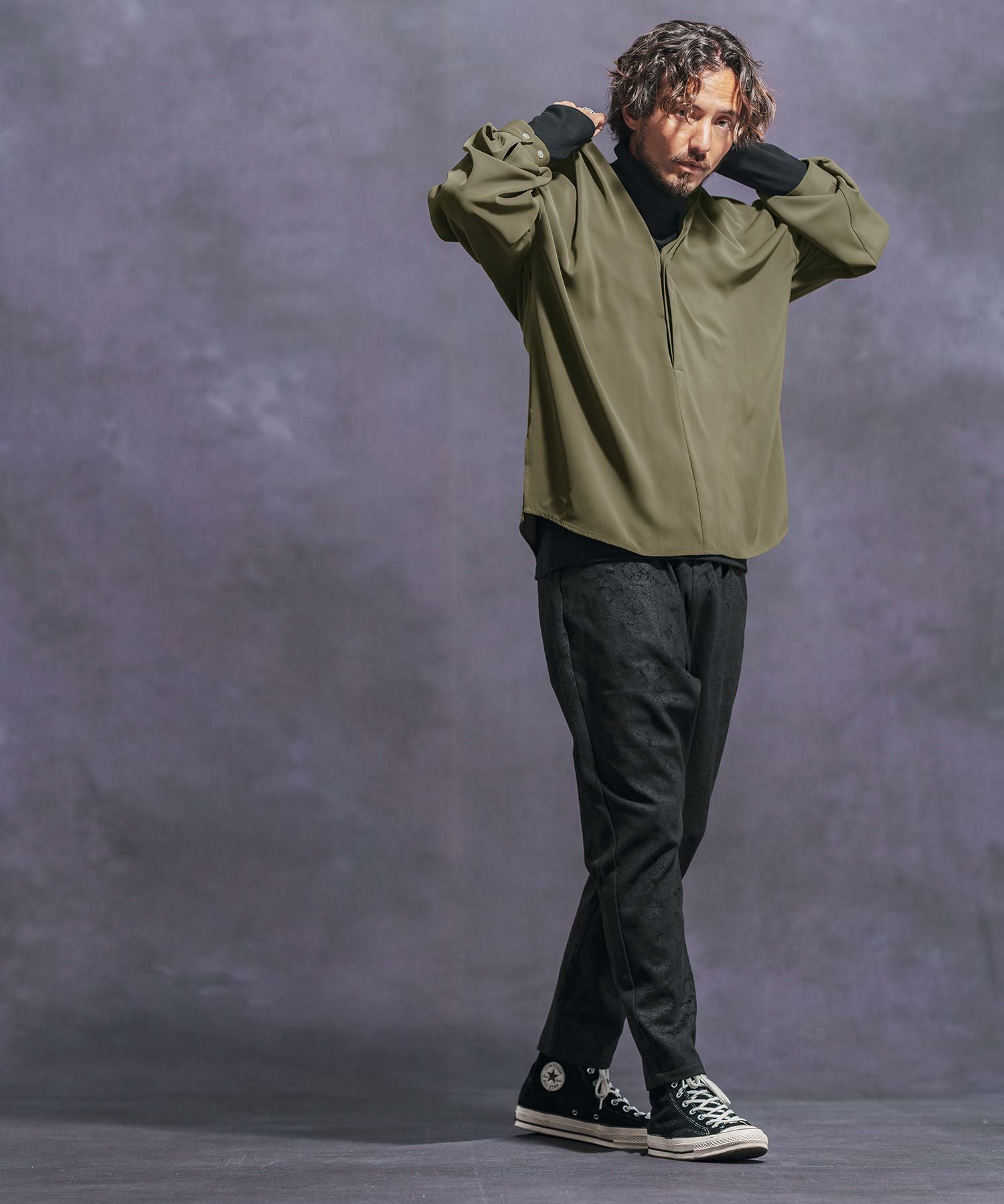 Jih Nunc 【Jih Nunc(ジーヌンク)】総柄バンドカラープルオーバーシャツ(JIH-R1092)