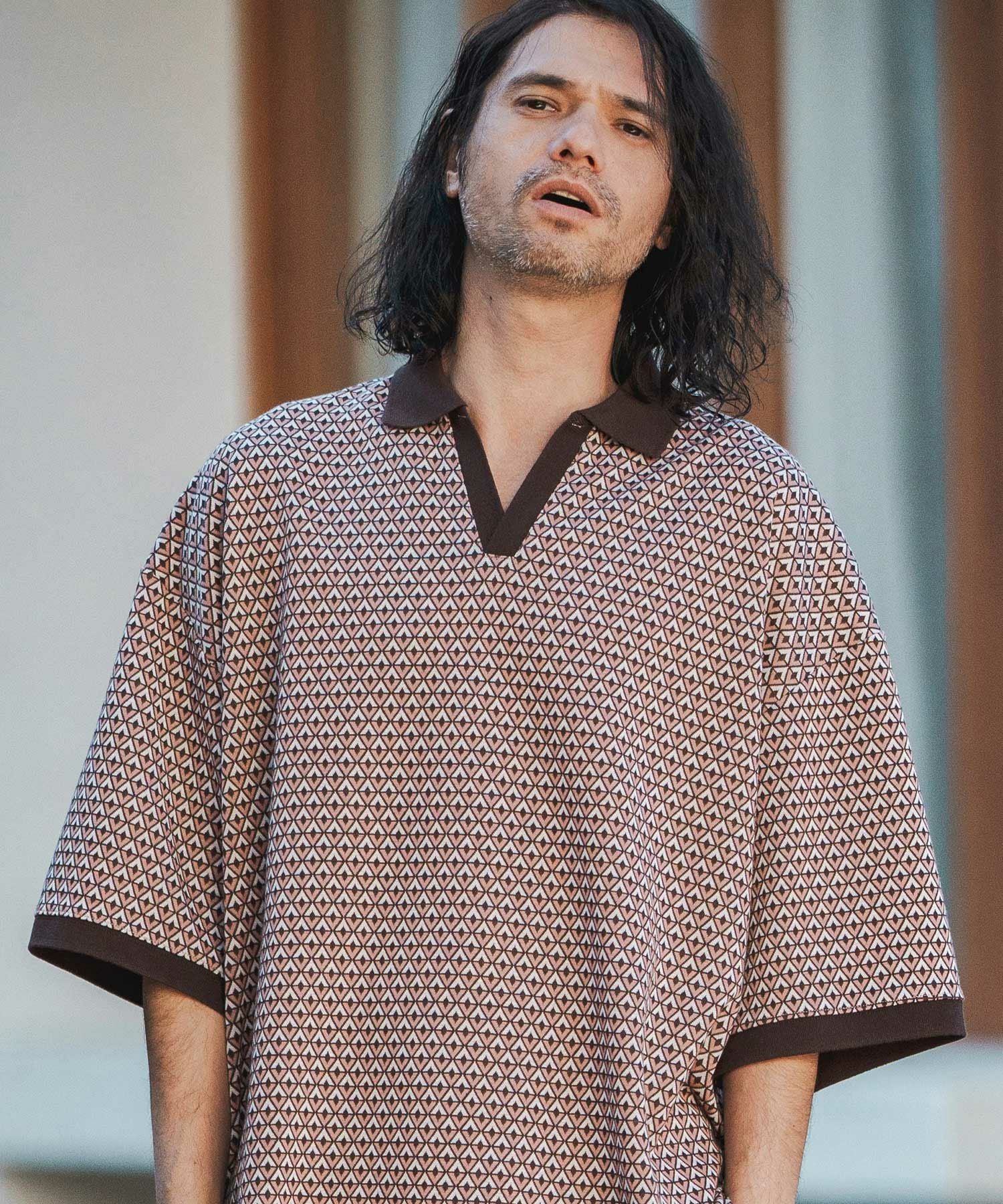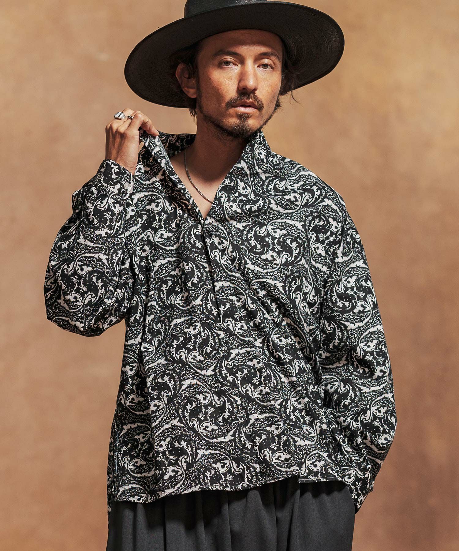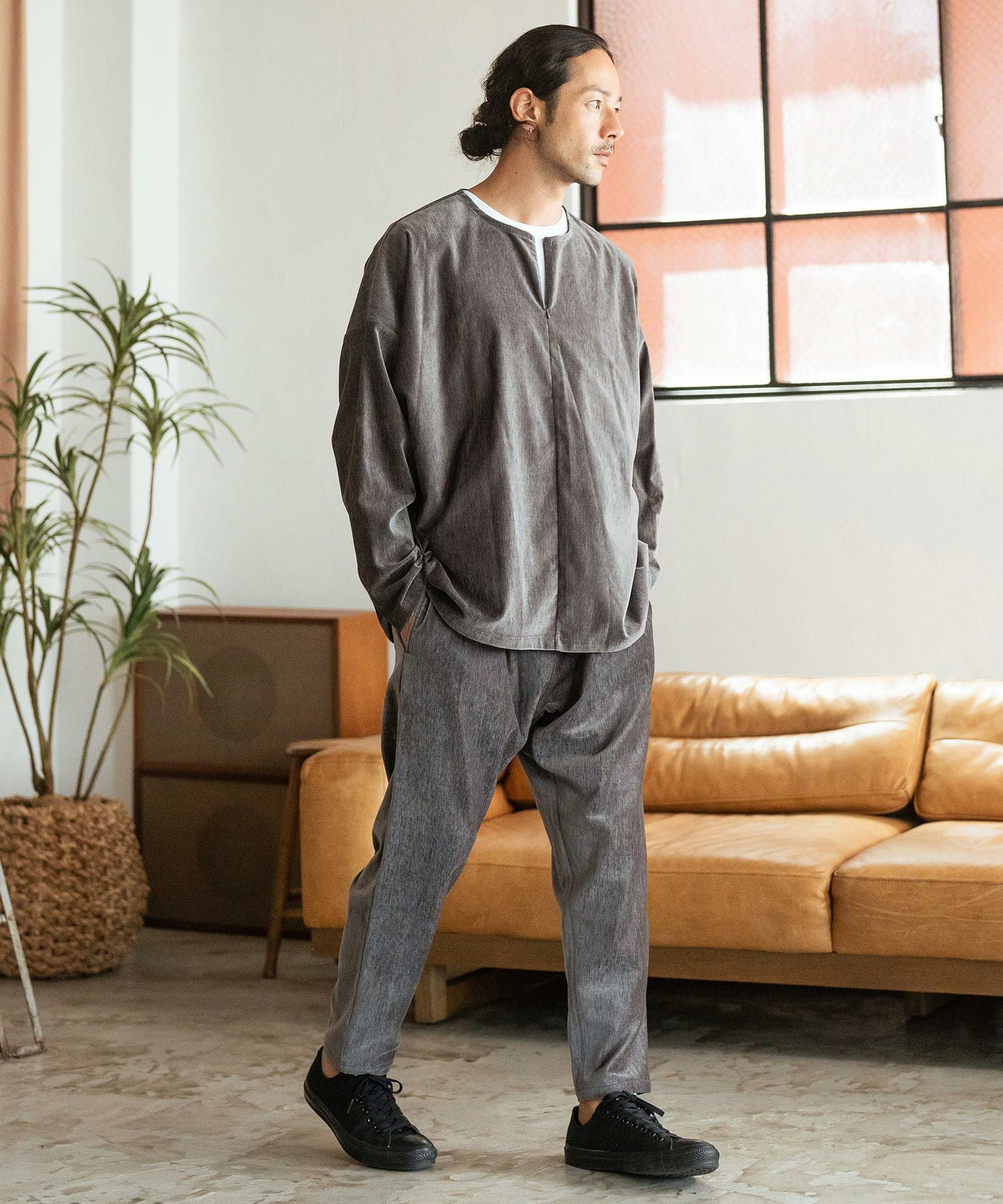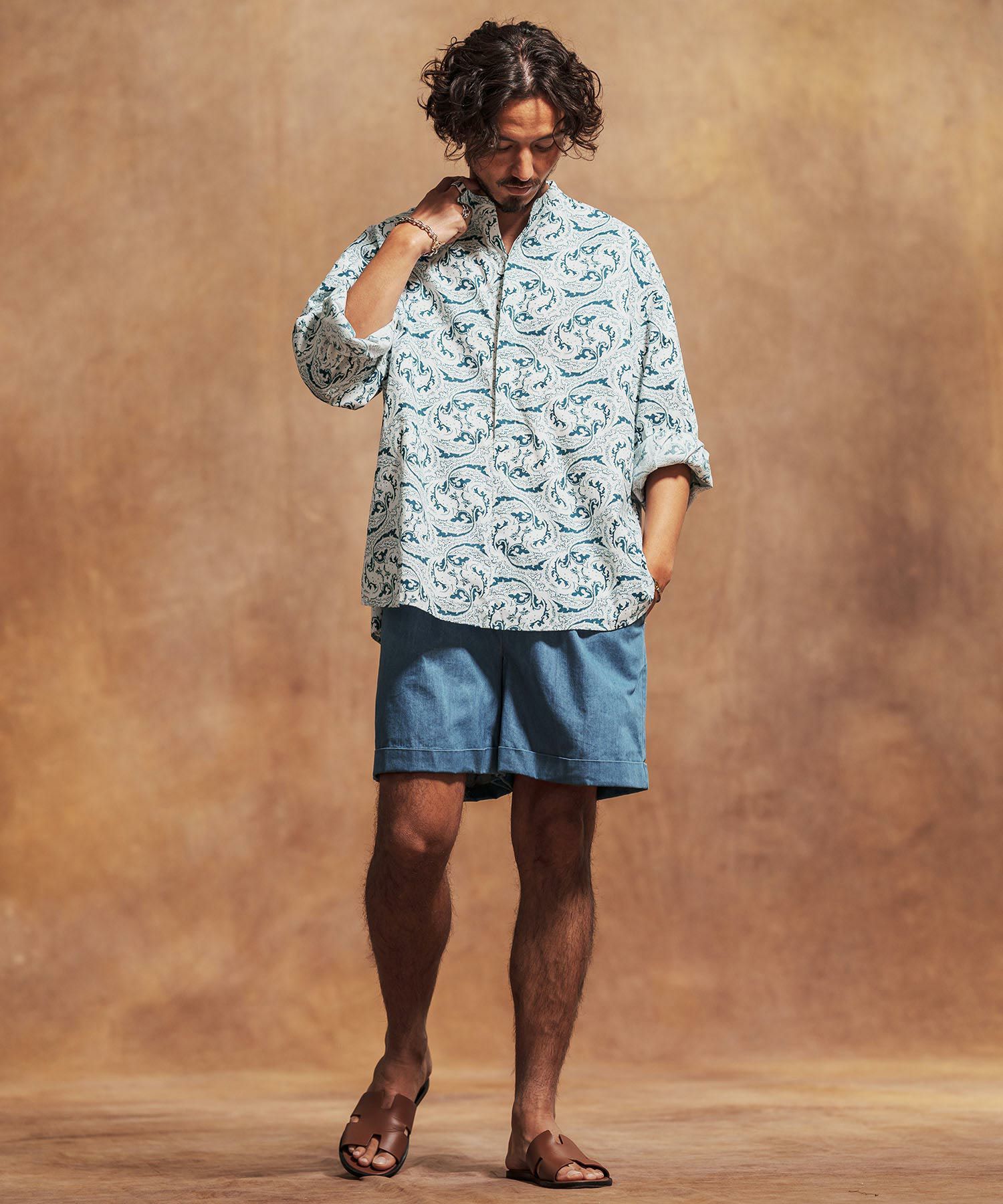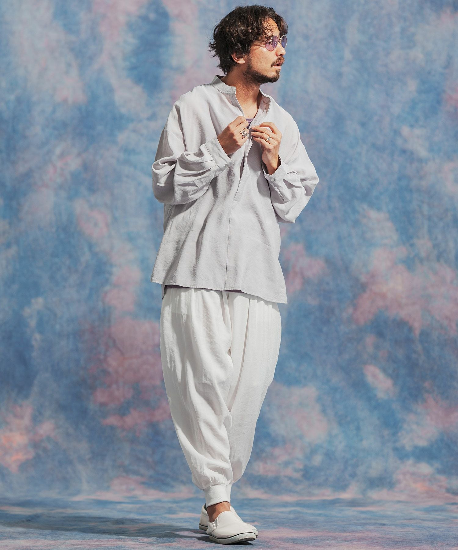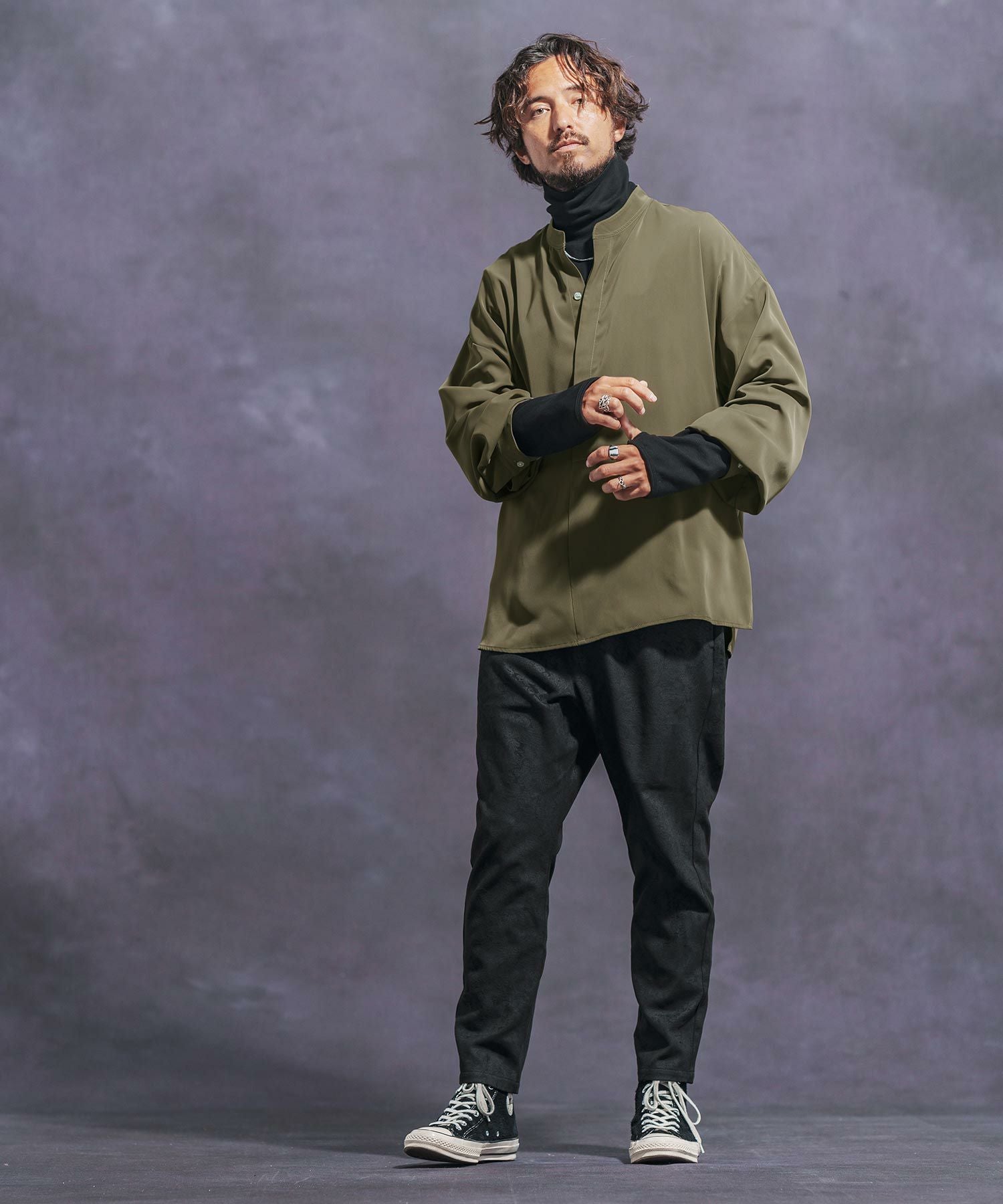 Jih Nunc 【Jih Nunc(ジーヌンク)】総柄バンドカラープルオーバーシャツ(JIH-R1092)