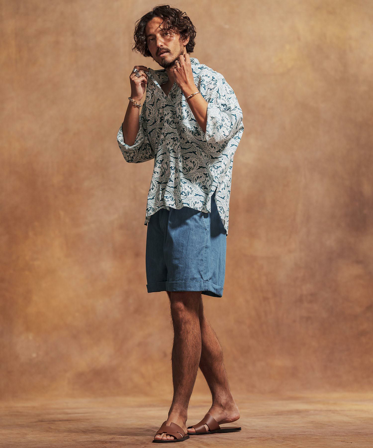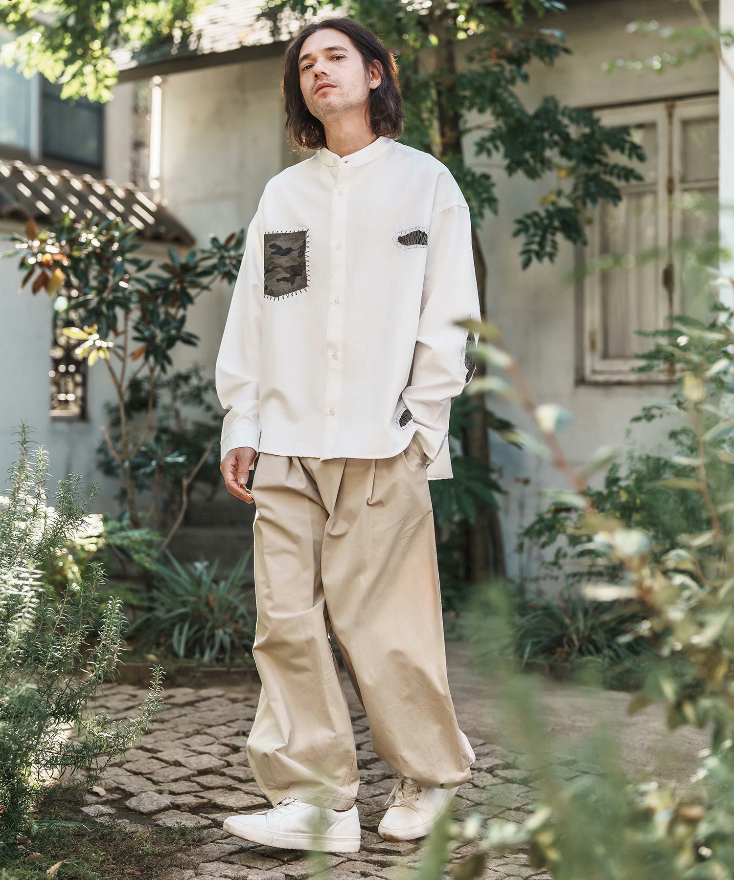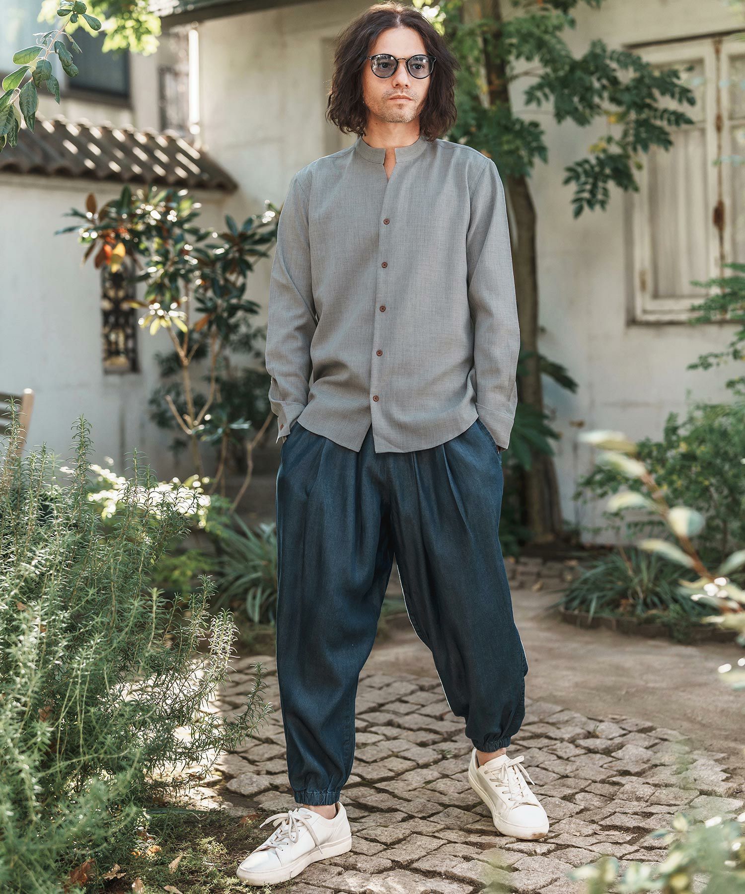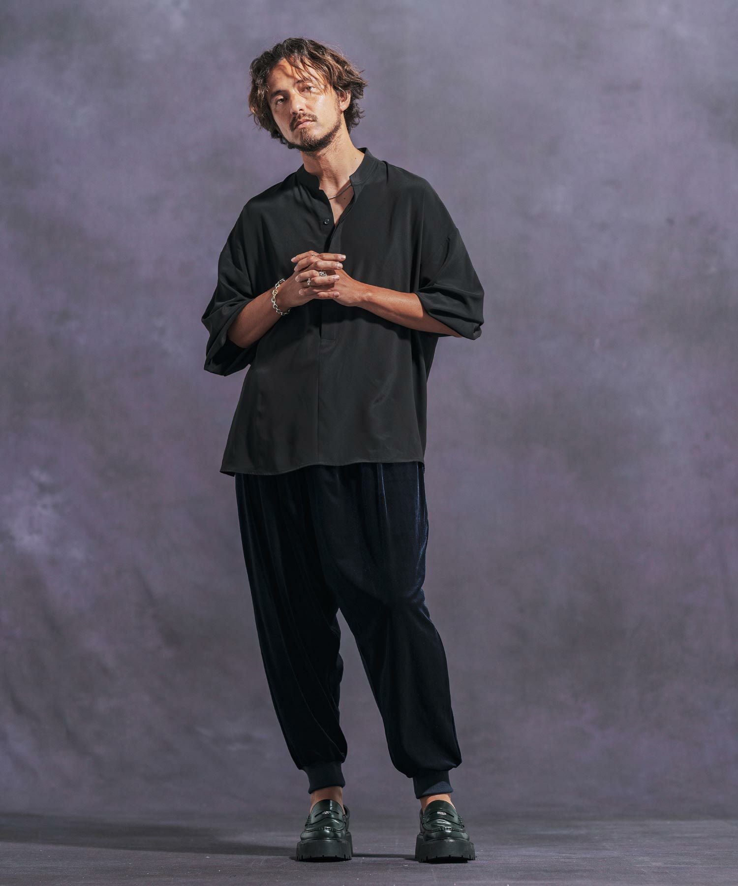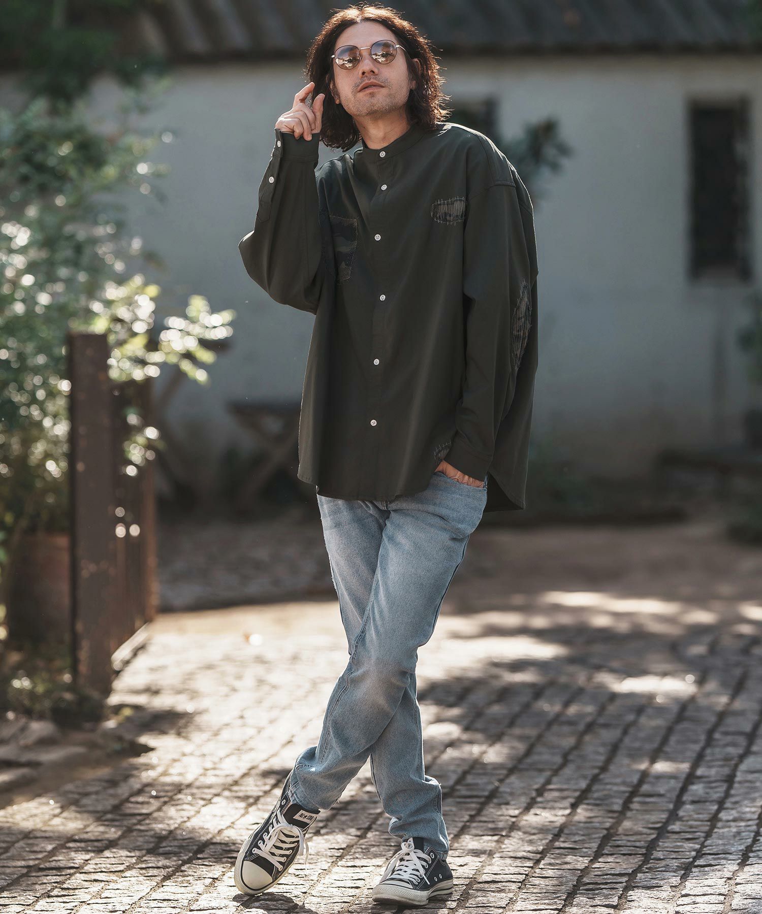 Jih Nunc 【Jih Nunc(ジーヌンク)】総柄バンドカラープルオーバーシャツ(JIH-R1092)