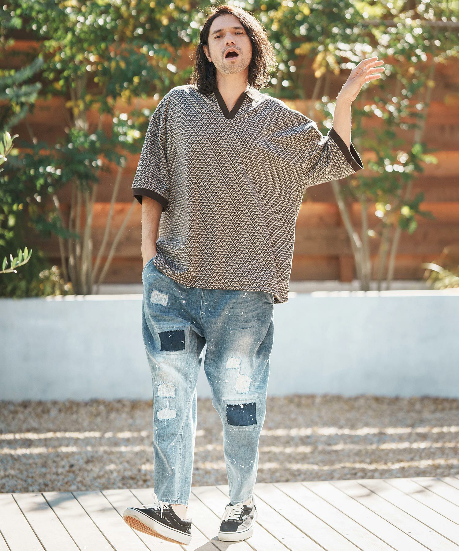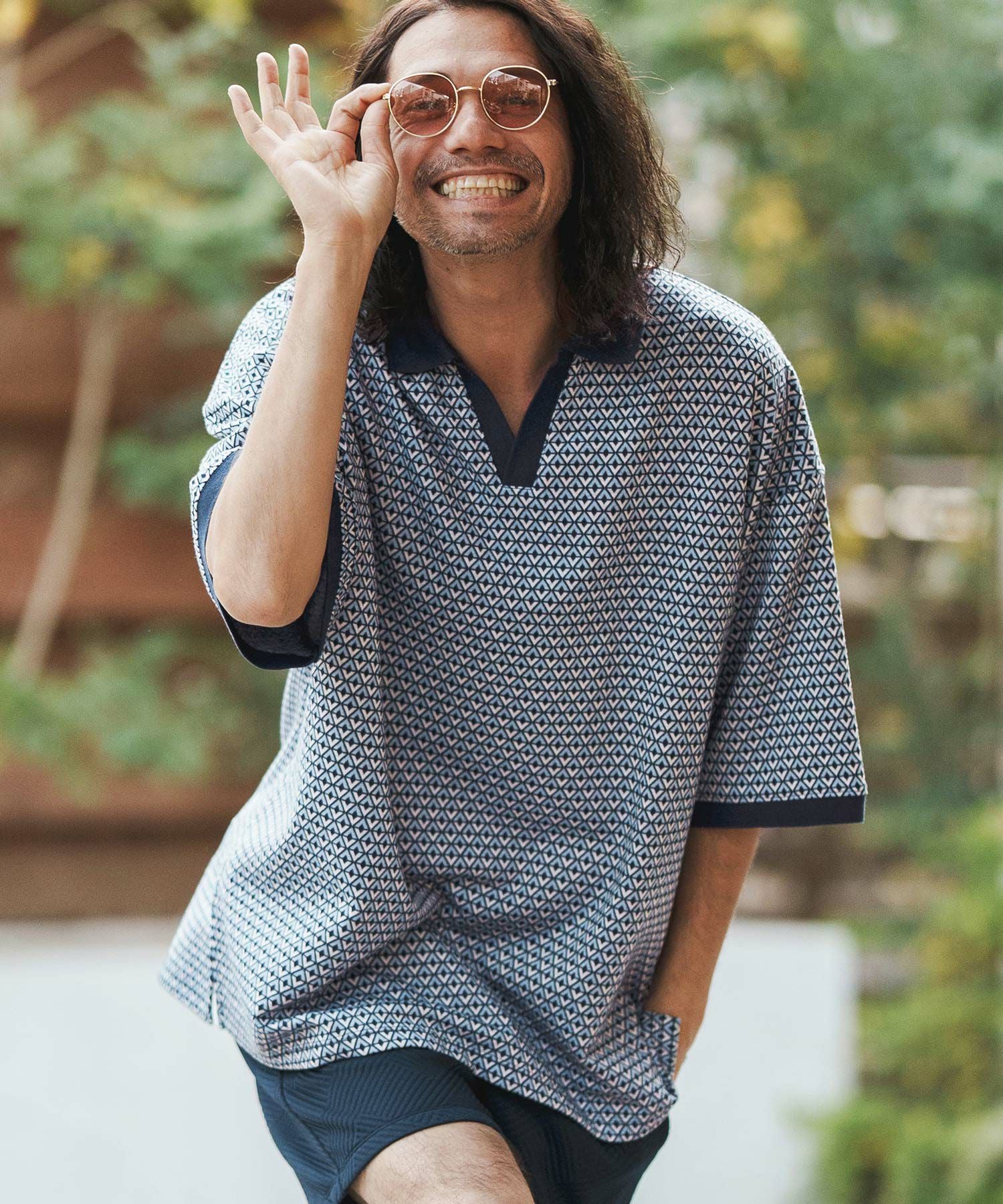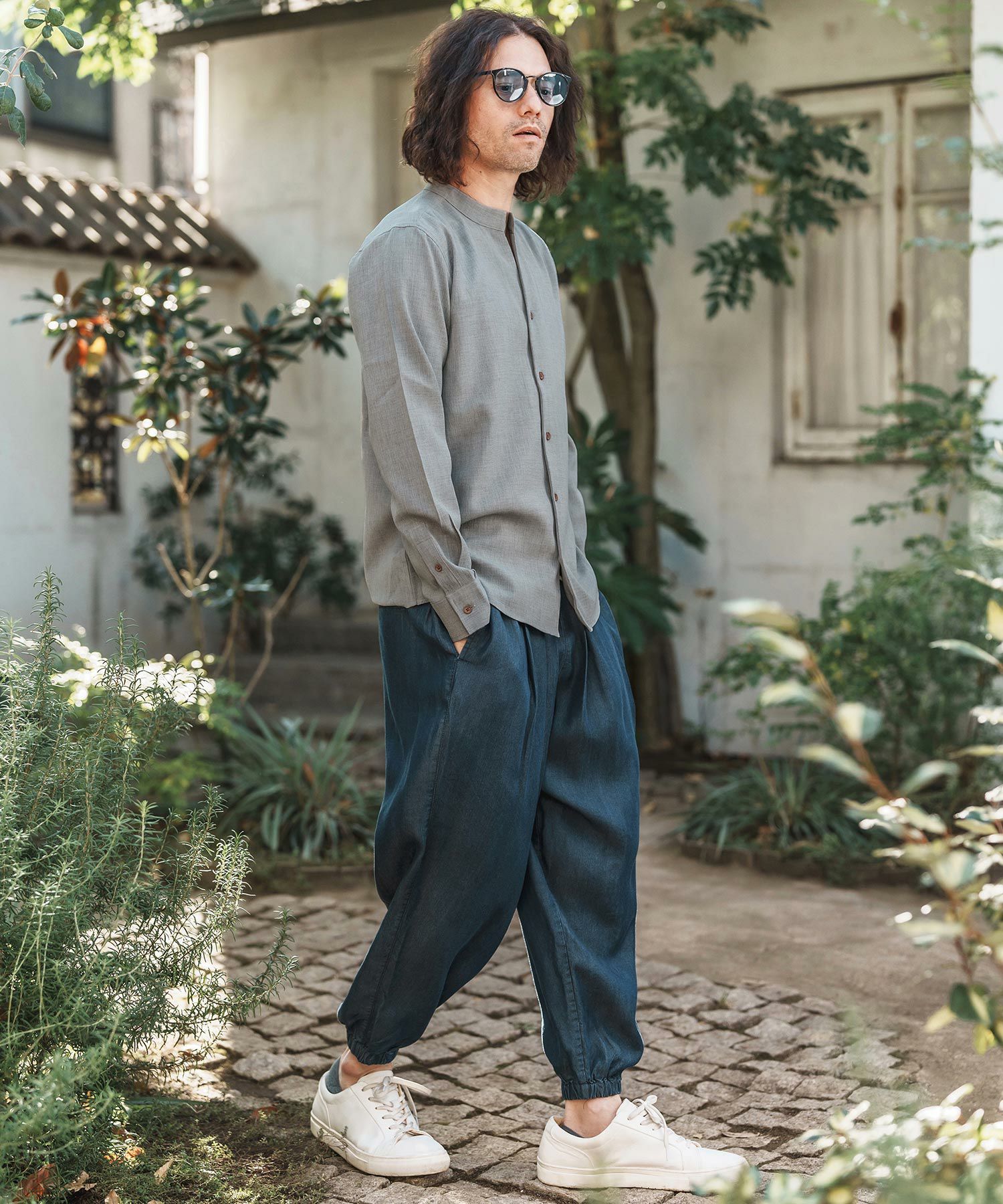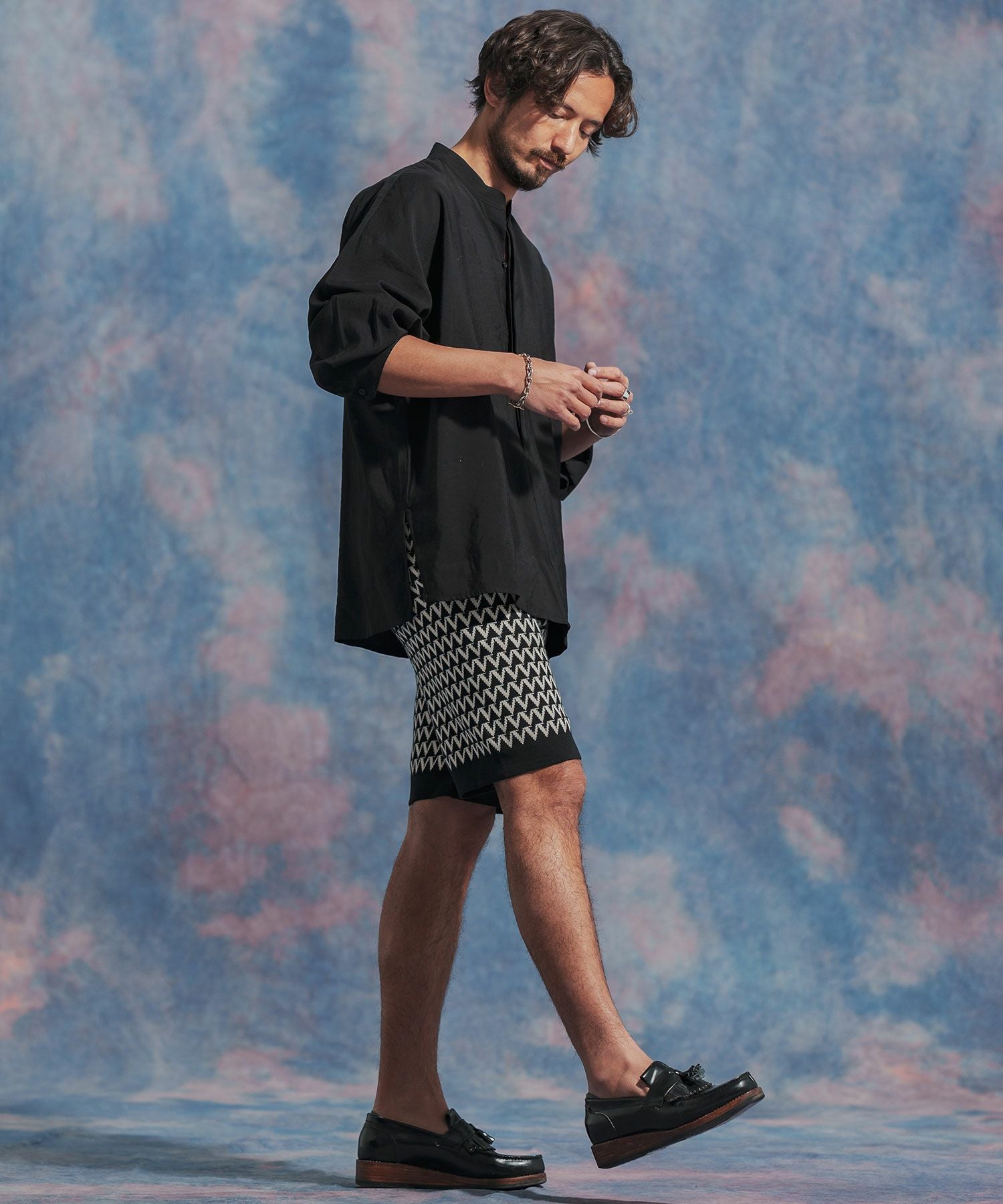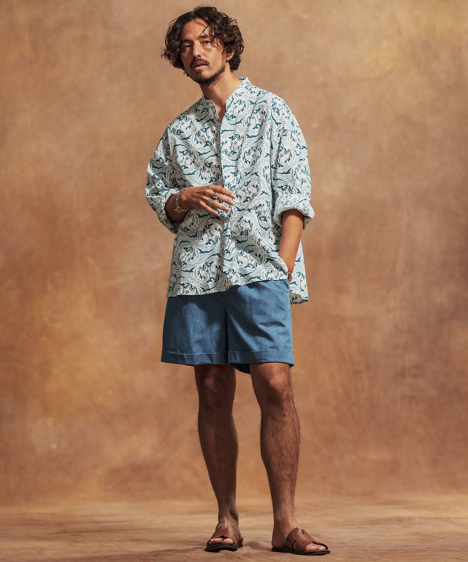 Jih Nunc 【Jih Nunc(ジーヌンク)】総柄バンドカラープルオーバーシャツ(JIH-R1092)