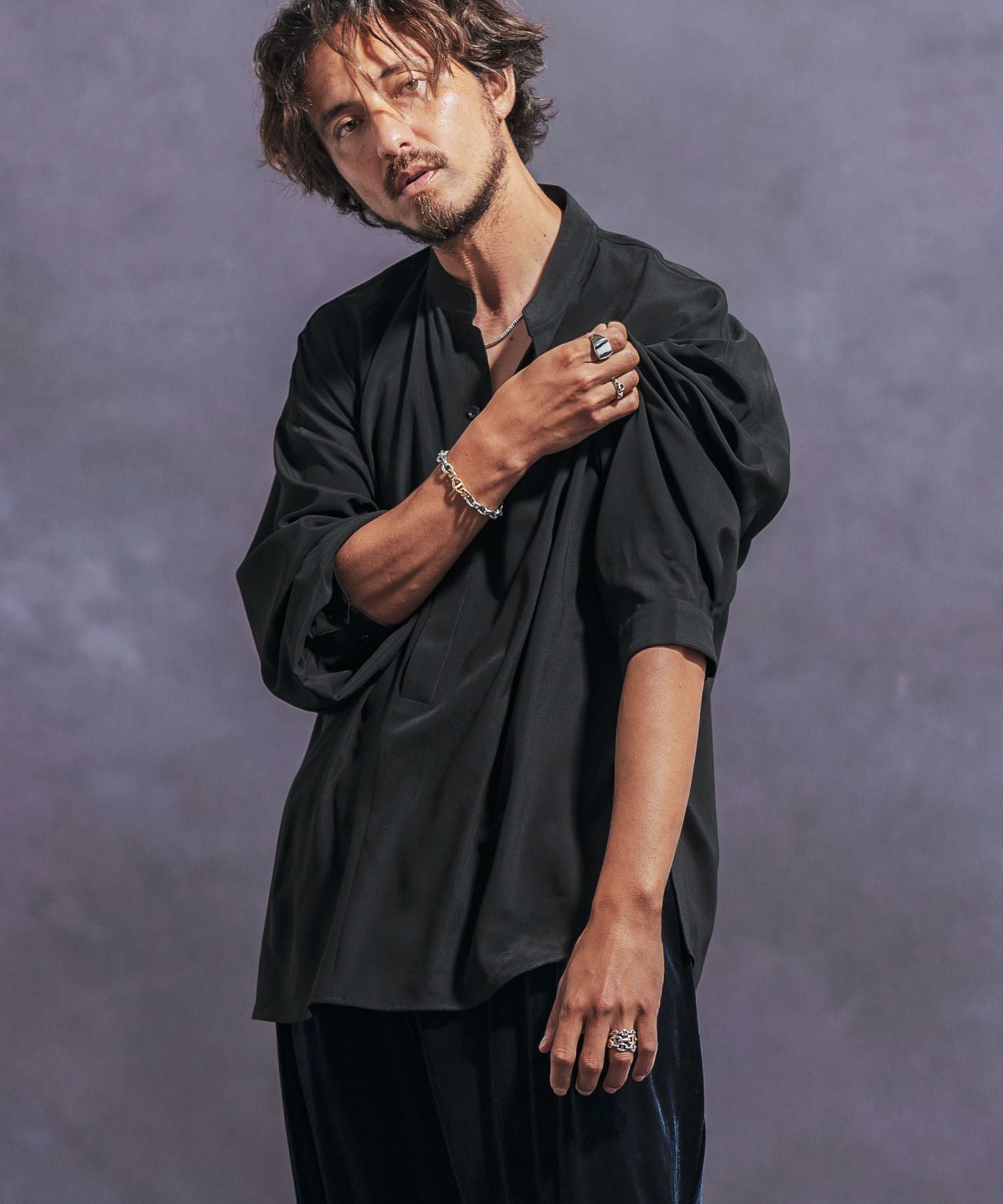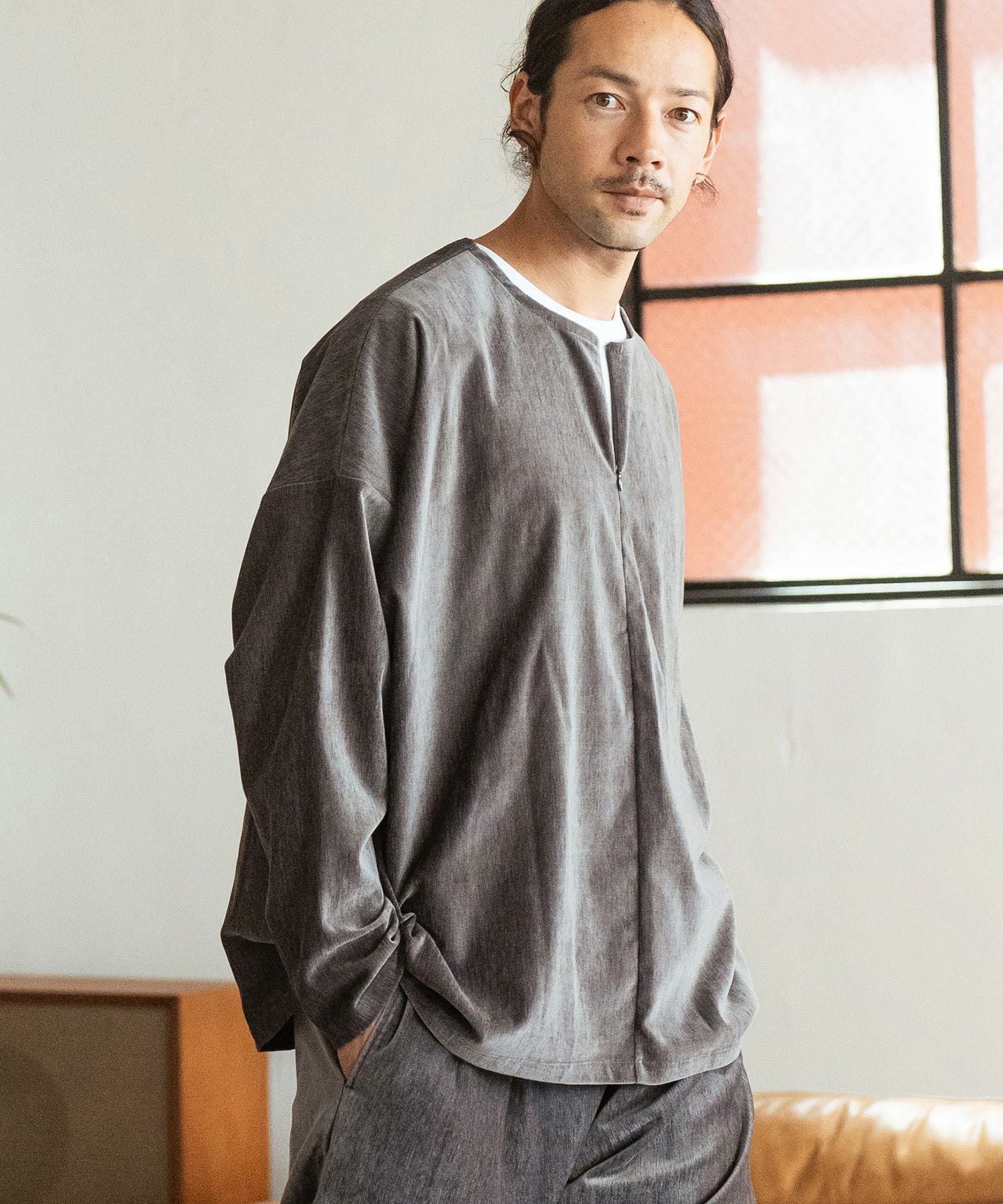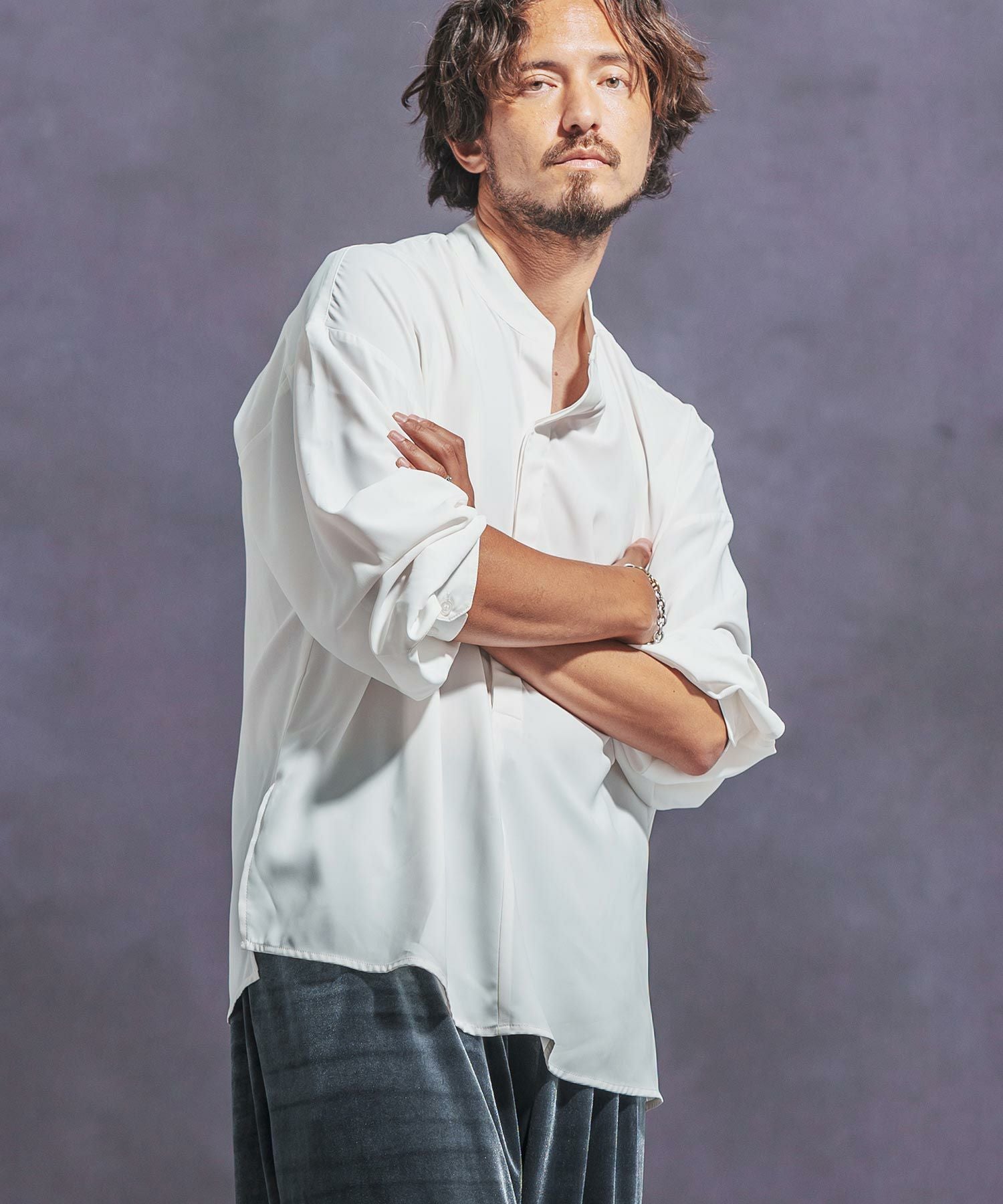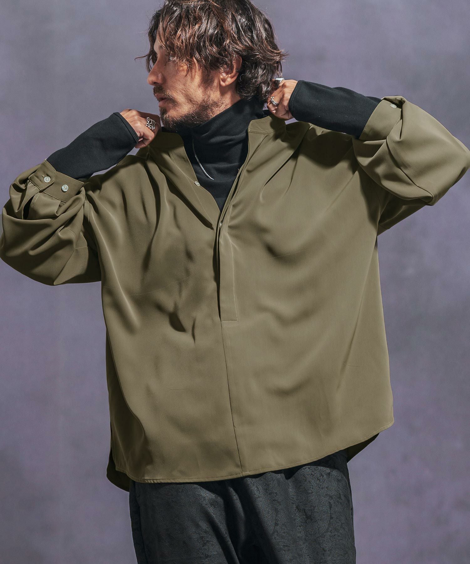 Jih Nunc 【Jih Nunc(ジーヌンク)】スタンドカラー比翼プルオーバーシャツ(JIH-R1063)