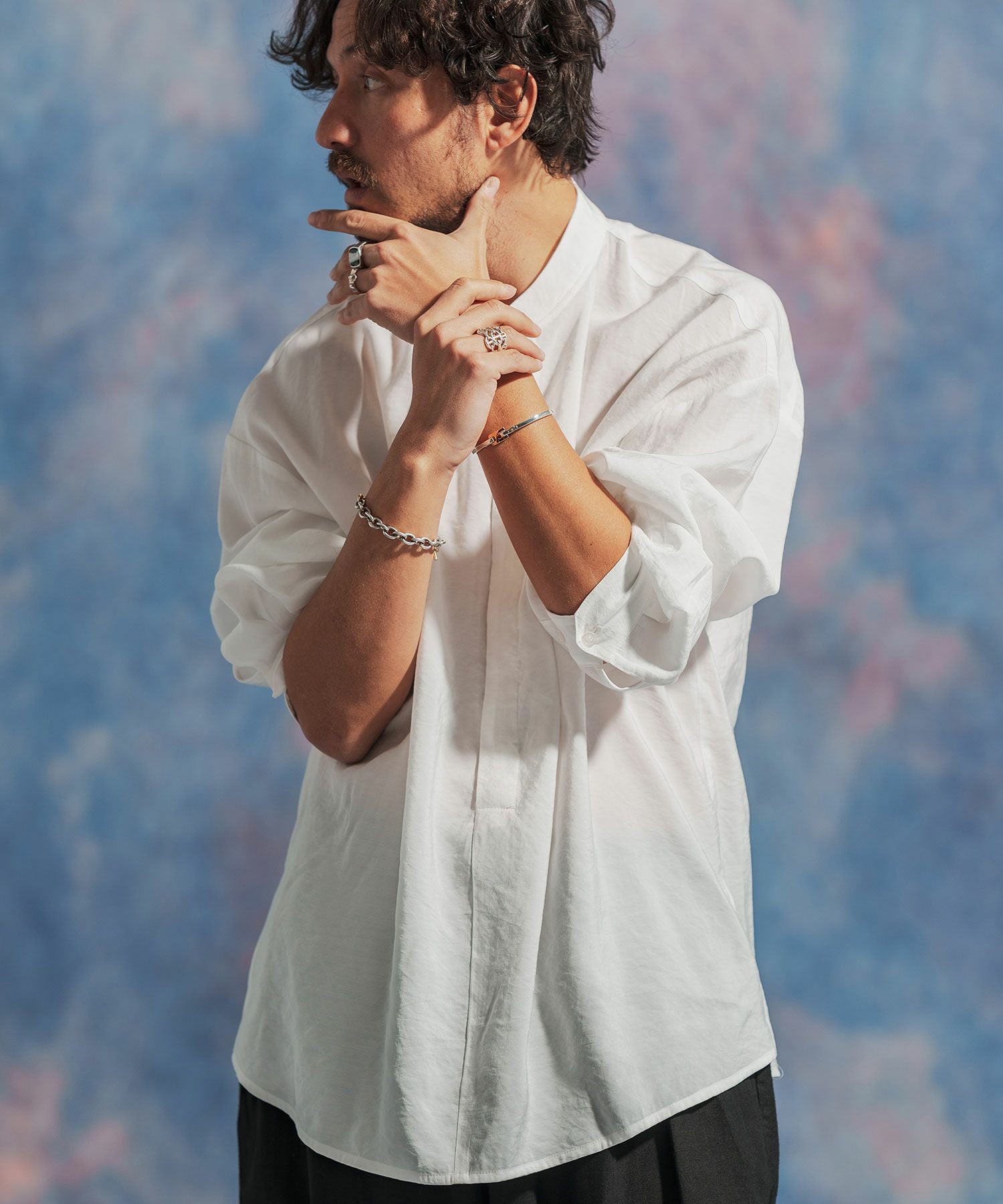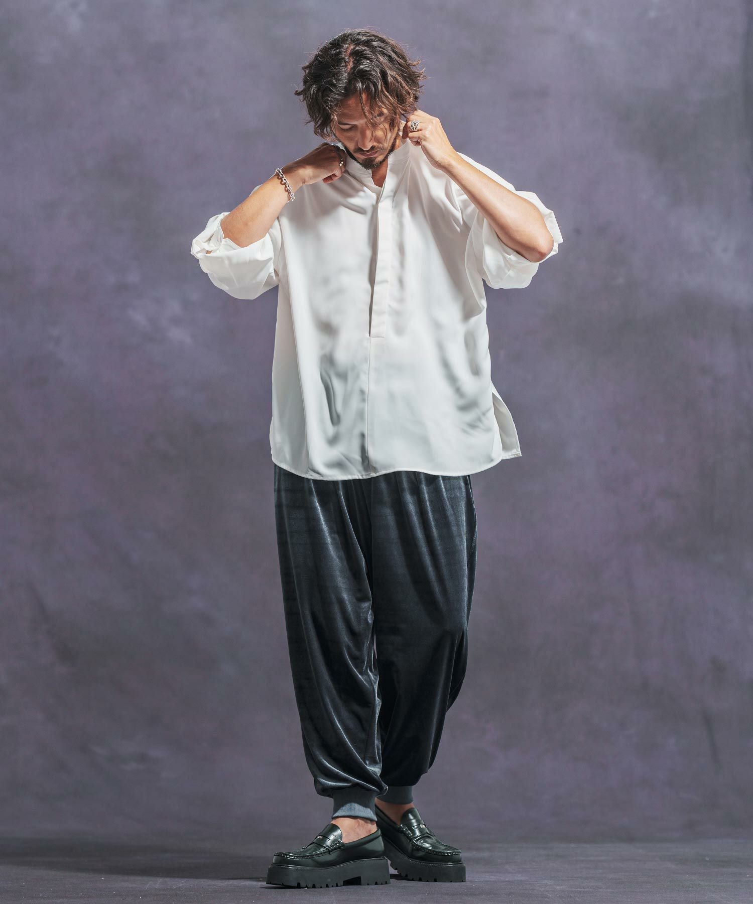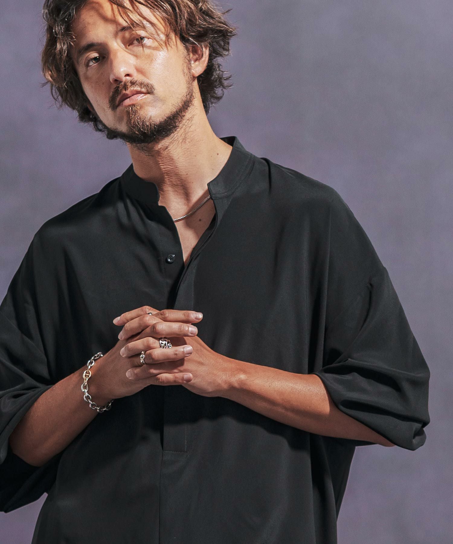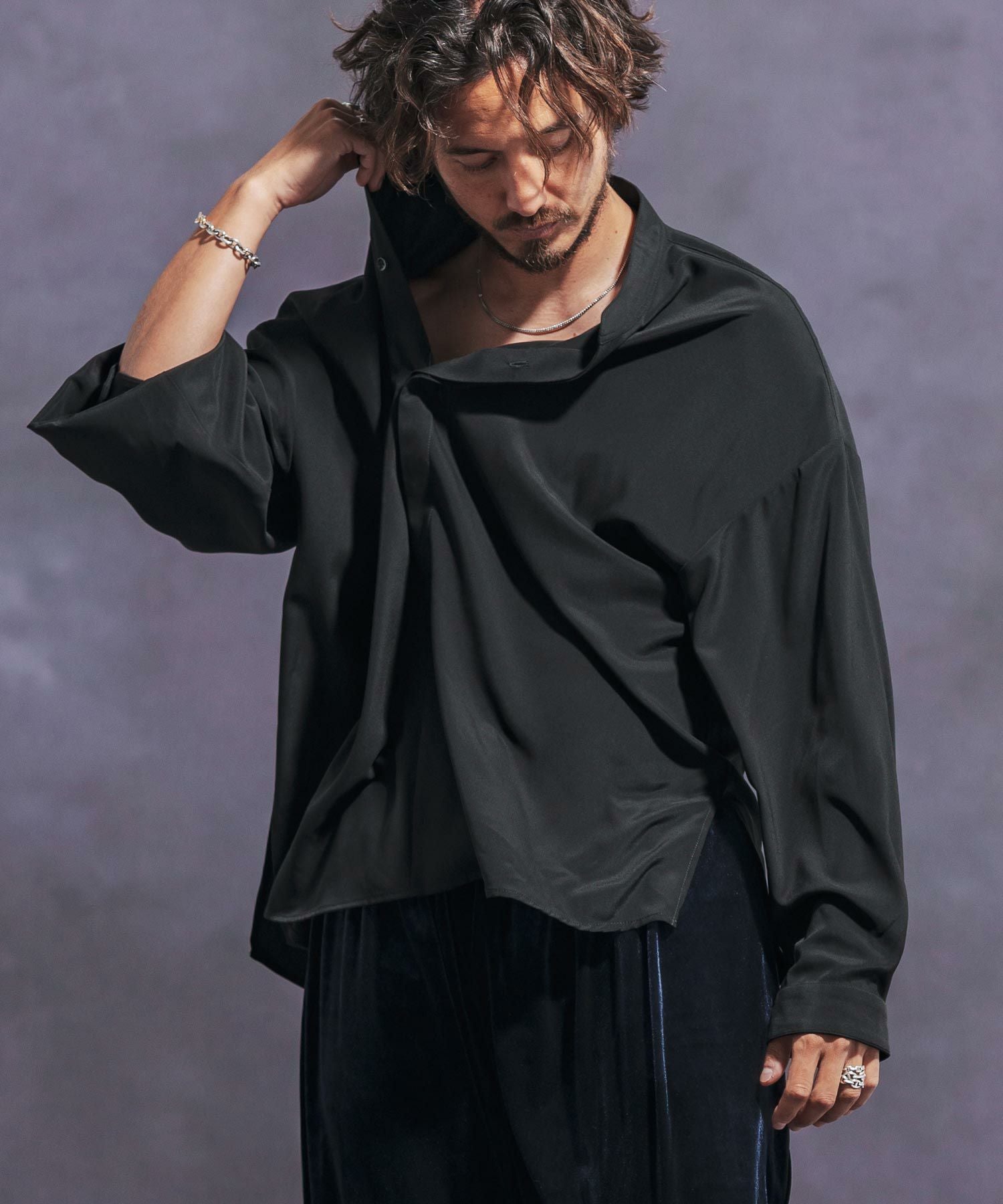 Jih Nunc 【Jih Nunc(ジーヌンク)】スタンドカラー比翼プルオーバーシャツ(JIH-R1063)
