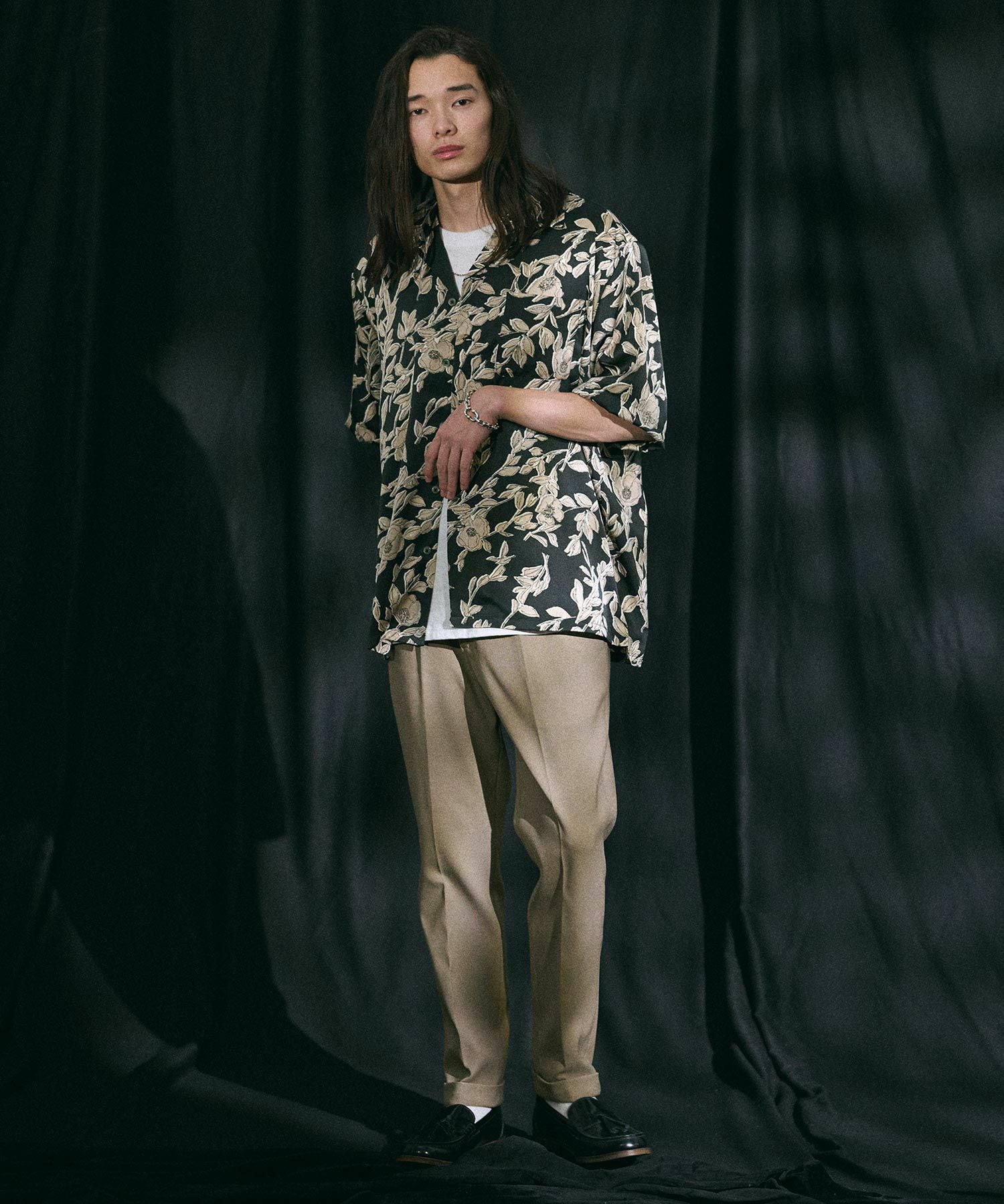 Jih Nunc 【Jih Nunc(ジーヌンク)】バンドカラープルオーバートロピカルシャツ(JIH-R1034)