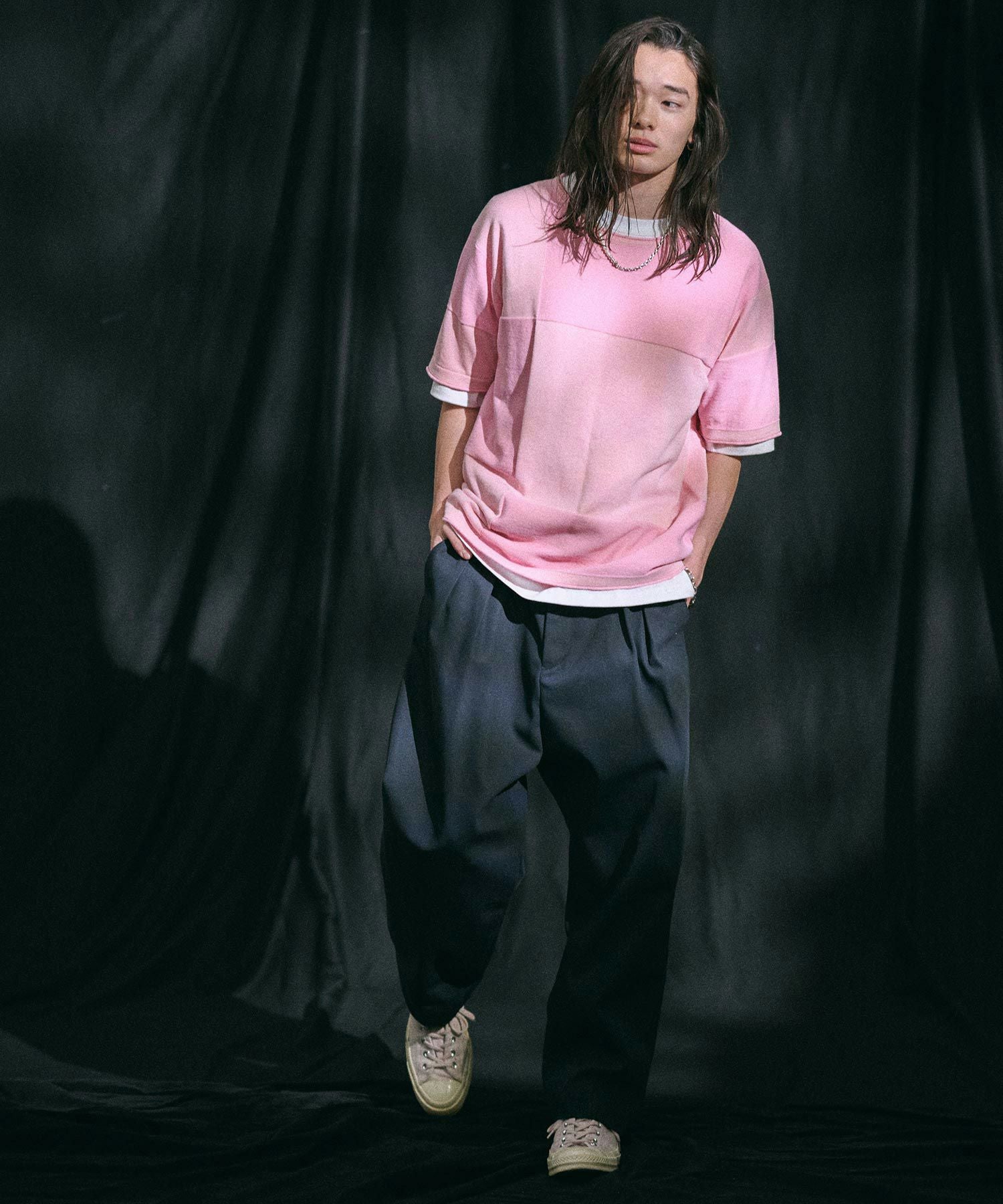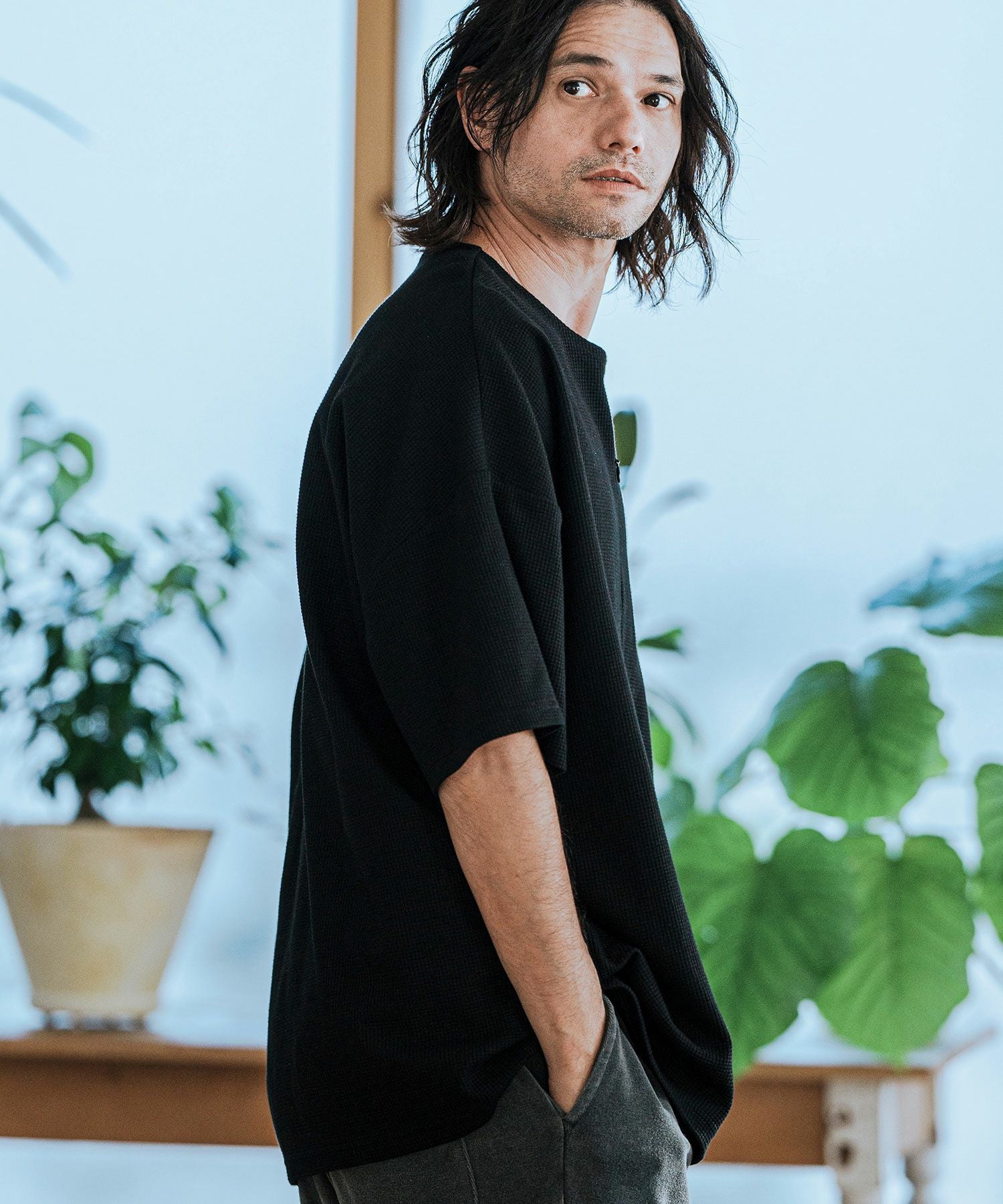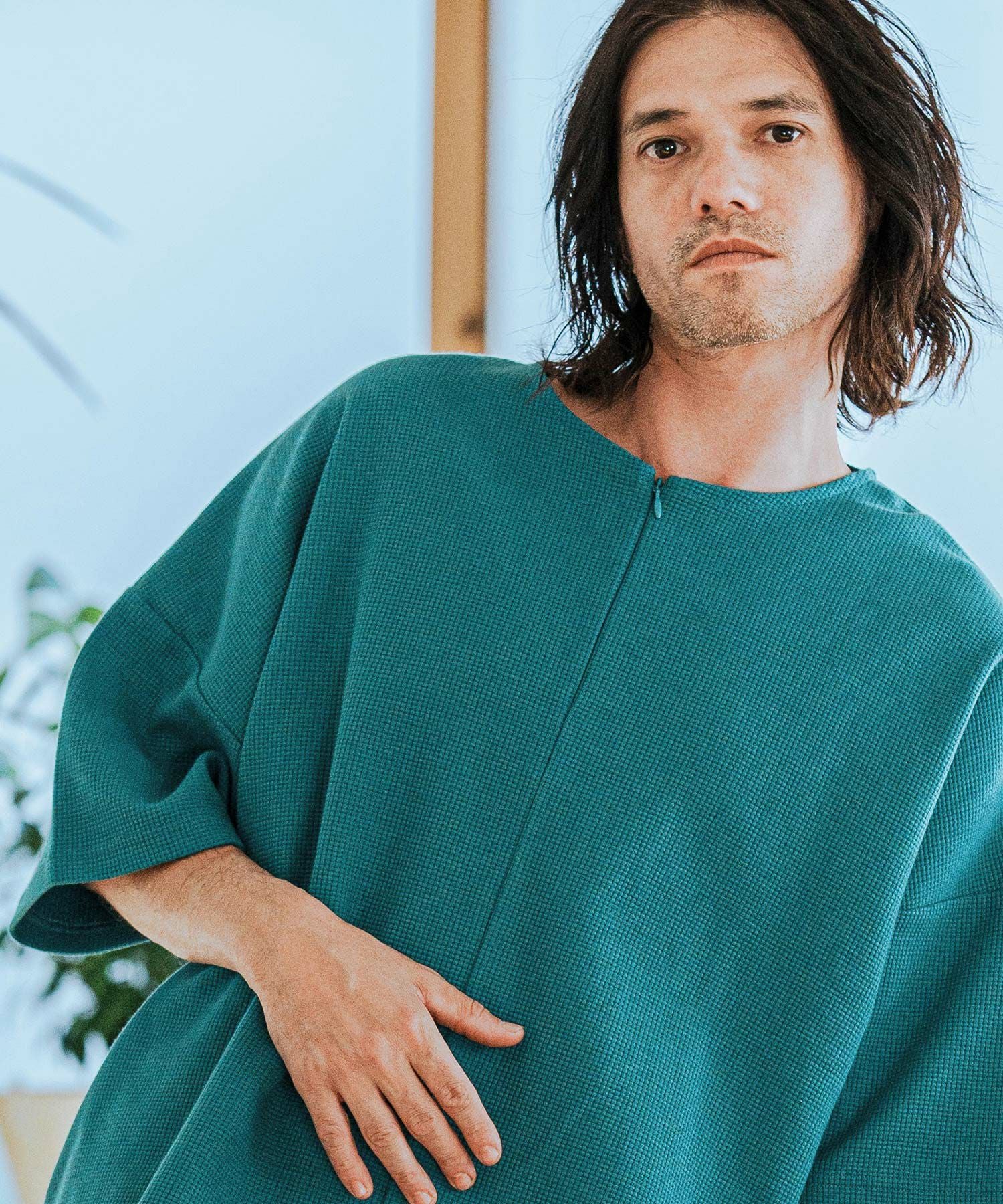 CAMBIO 【CAMBIO(カンビオ)】Tricot Waffle Key Neck Dolman Sleeve Cut sew Tシャツ(S43525cmb)