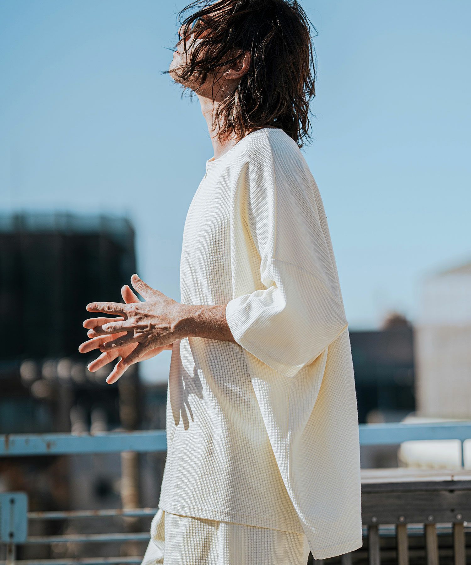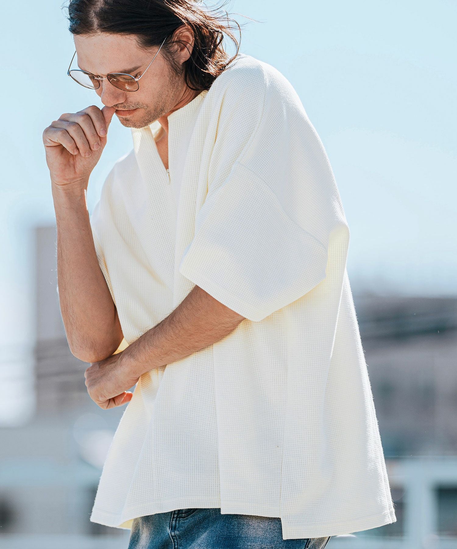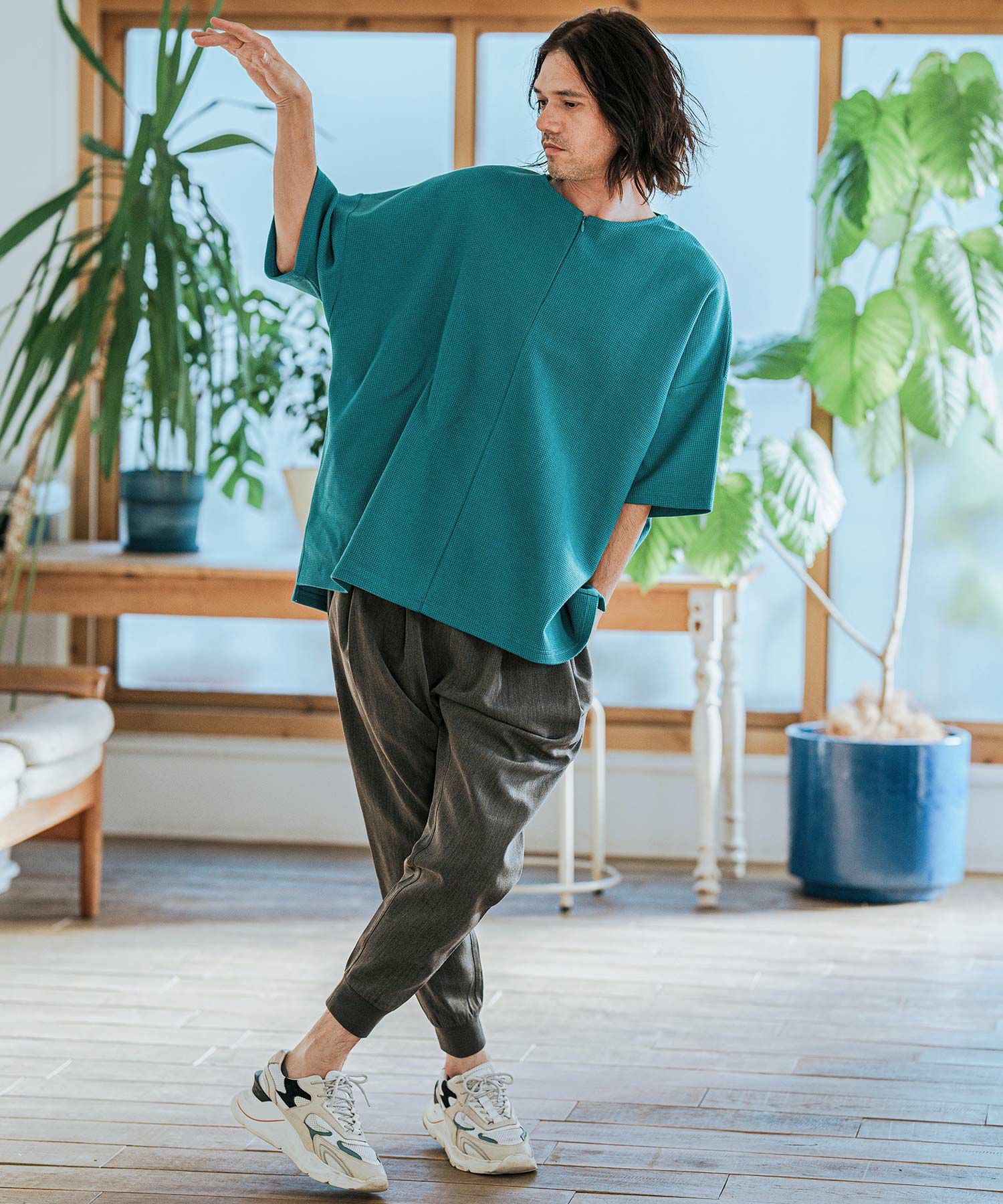 CAMBIO 【CAMBIO(カンビオ)】Tricot Waffle Key Neck Dolman Sleeve Cut sew Tシャツ(S43525cmb)