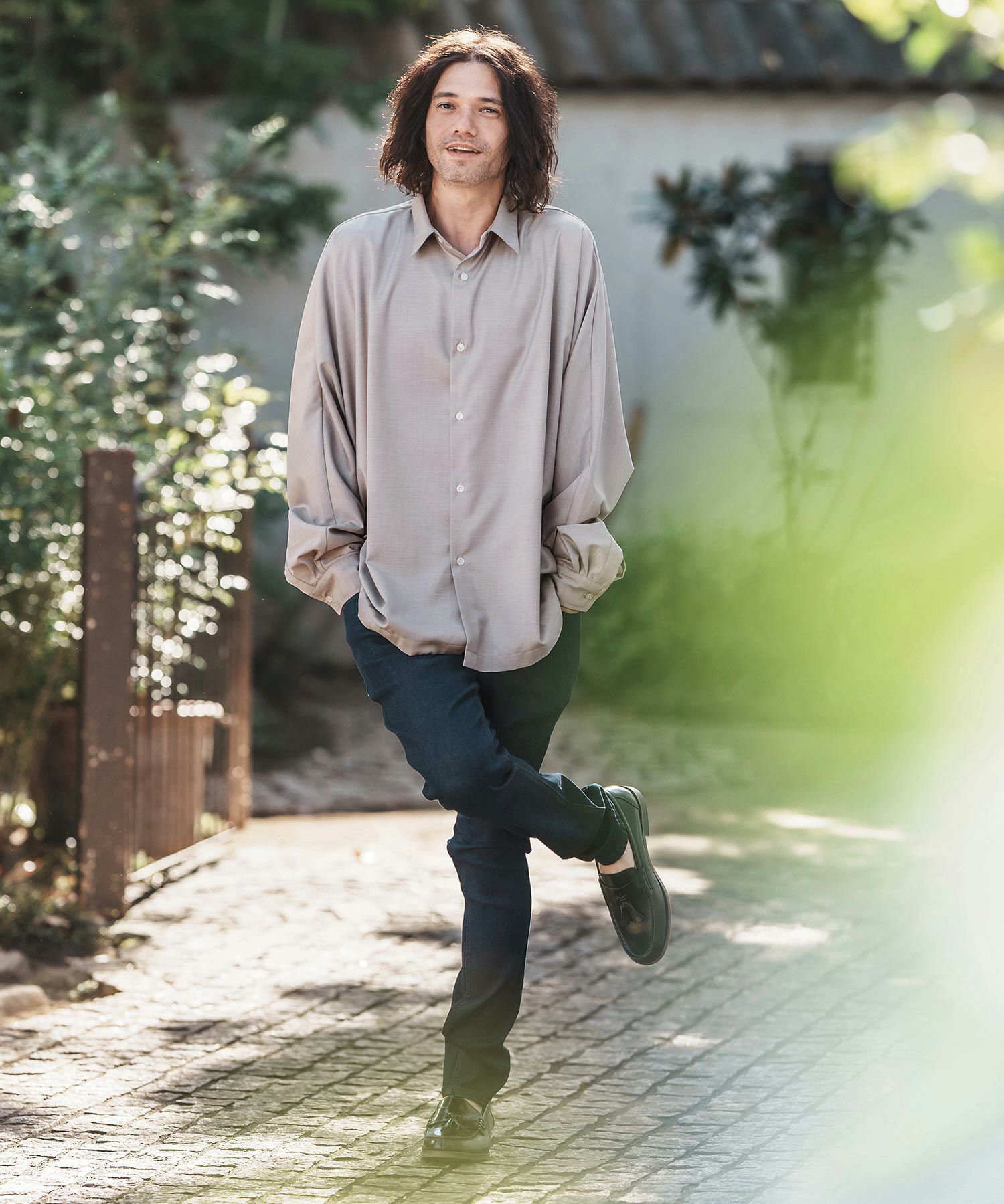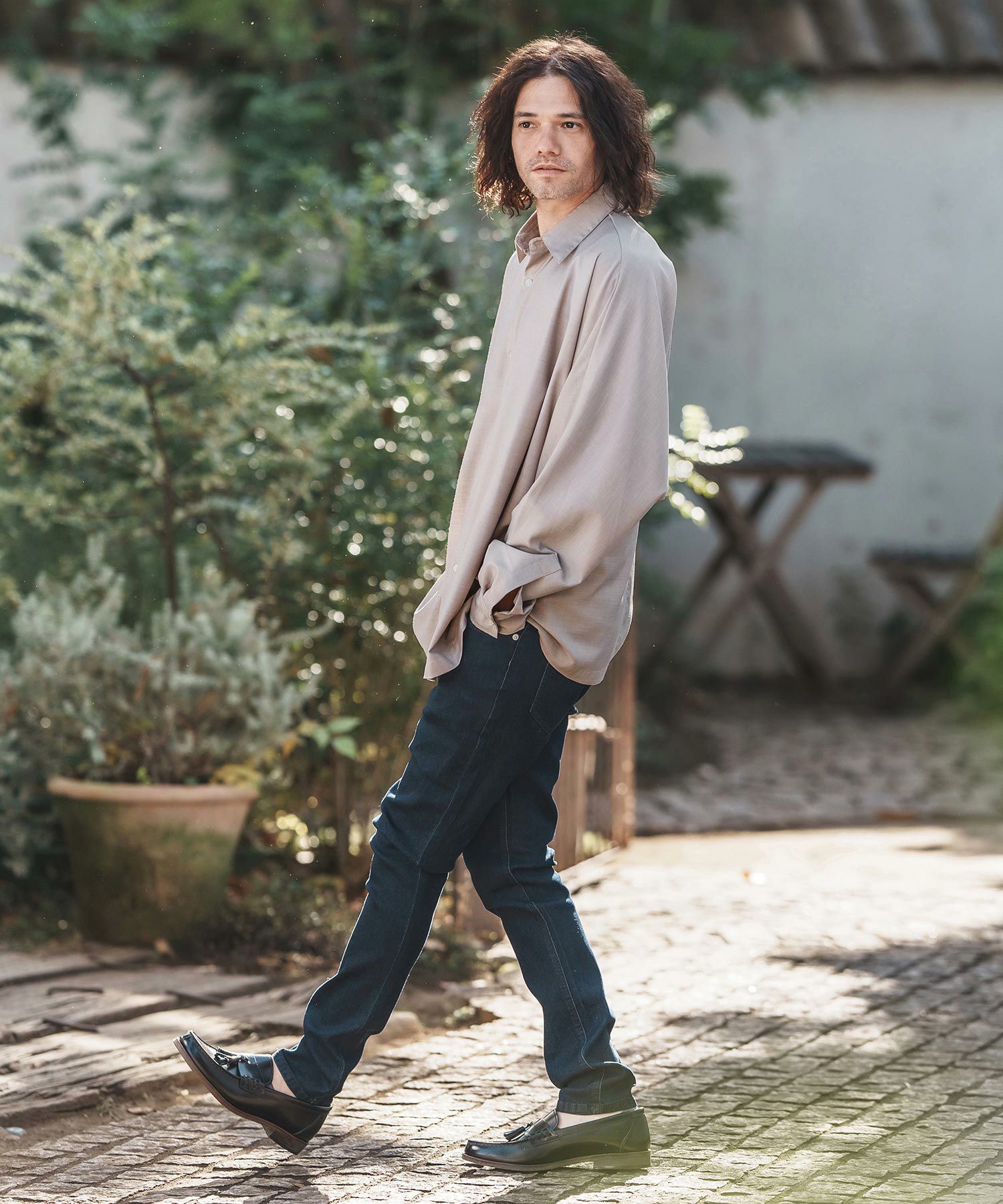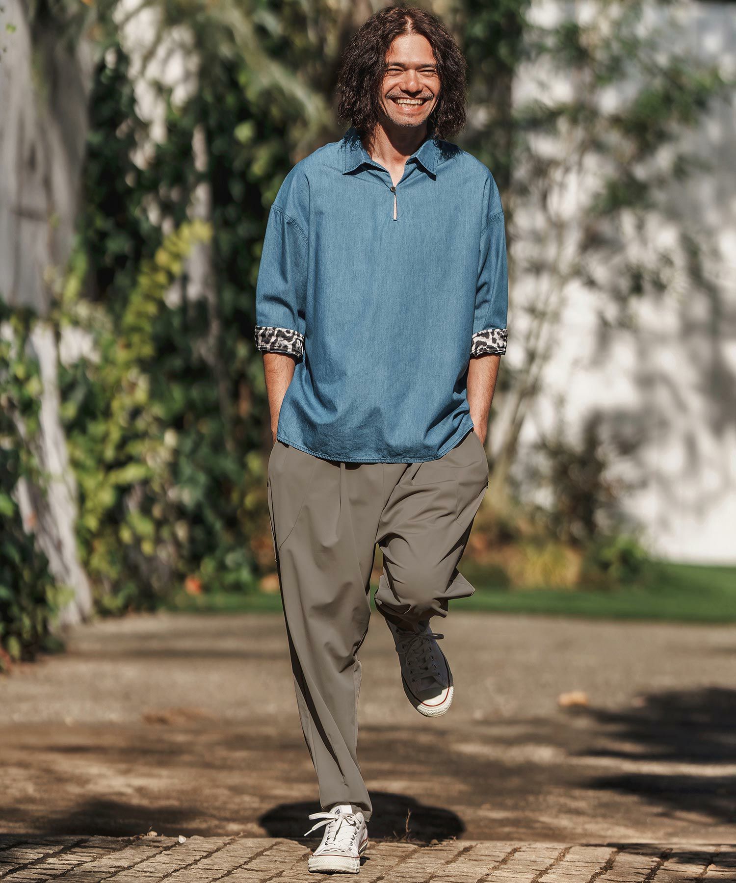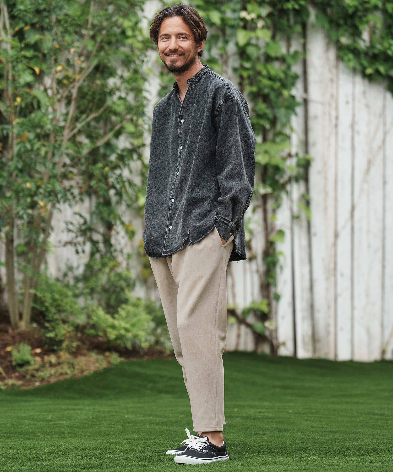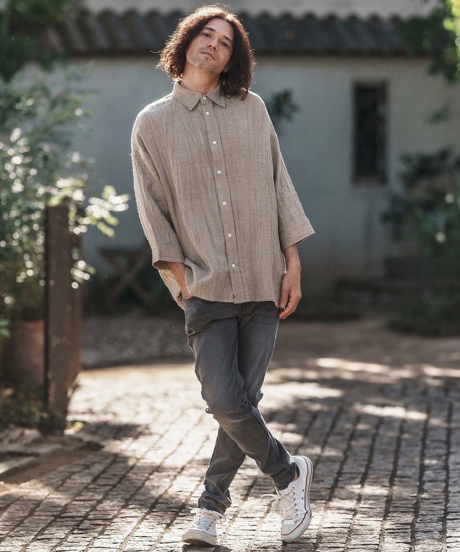 CAMBIO 【CAMBIO(カンビオ)】リネンライクシャンブレーストレッチスキッパーシャツ(CMB1239)